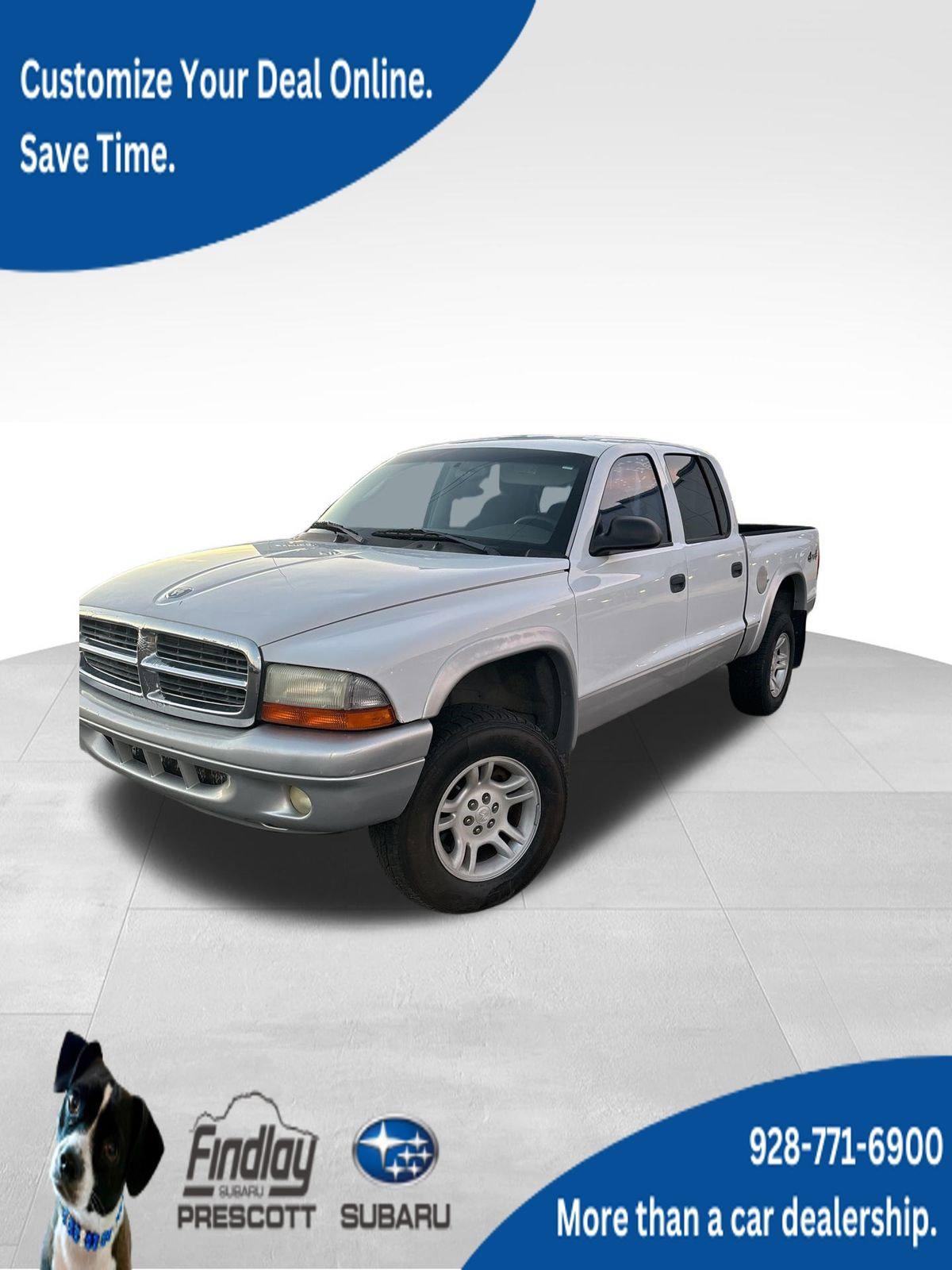 Dakota SLT, 4D Crew Cab, Next Generation Magnum 4.7L V8, 5-Speed Automatic, 4WD, Bright White Clearcoat, Taupe Cloth.Visit with our NON-Commission team, for a hassle free experience! Save more with Findlay Subaru Prescott, with our competitive, market based pricing! This Dodge Dakota is equipped with the following features: Deluxe Convenience Group (Speed Control and Tilt Steering Column), Heavy Duty Service Group (750 Amp Maintenance Free Battery and Power Steering Cooler), Power Convenience Group (Keyless Entry, Power Locks, Power Mirrors, and Power Windows w/Driver One-Touch), Skid Plate Group (Fuel Tank Skid Plate Shield), SLT Plus Decor Group (Fog Lamps and Front Floor Mats), Trailer Tow Group (7 Pin Wiring Harness, 7 to 4 Pin Wiring Adapter, and Class IV Receiver Hitch), Dakota SLT, 4D Crew Cab, Next Generation Magnum 4.7L V8, 5-Speed Automatic, 4WD, Bright White Clearcoat, Taupe Cloth, 16 x 7 Cast Aluminum Wheels, 3.55 Axle Ratio, 4 Speakers, 4-Wheel Disc Brakes, 6-Way Power Driver Seat, ABS brakes, Air Conditioning, Alloy wheels, AM/FM Cassette w/Changer Control, AM/FM radio, Anti-Spin Differential Axle, Auto-Dimming Rear-View Mirror, Cassette, Cloth High-Back Bucket Seats, Delay-off headlights, Driver door bin, Dual front impact airbags, Front anti-roll bar, Front Bucket Seats, Front Center Armrest, Front reading lights, Front wheel independent suspension, Heavy-Duty Engine Cooling, HomeLink Wireless Control System, Leather Wrapped Steering Wheel, Overhead Console, Passenger door bin, Passenger vanity mirror, Power Overhead Convenience Group, Power steering, Rear step bumper, Split folding rear seat, Tachometer, Variably intermittent wipers, and Voltmeter.We use Market Based Pricing to give you the best price, upfront, without games. We do the shopping, so you get the deals!2004 Dodge Dakota SLT 14/18 City/Highway MPG