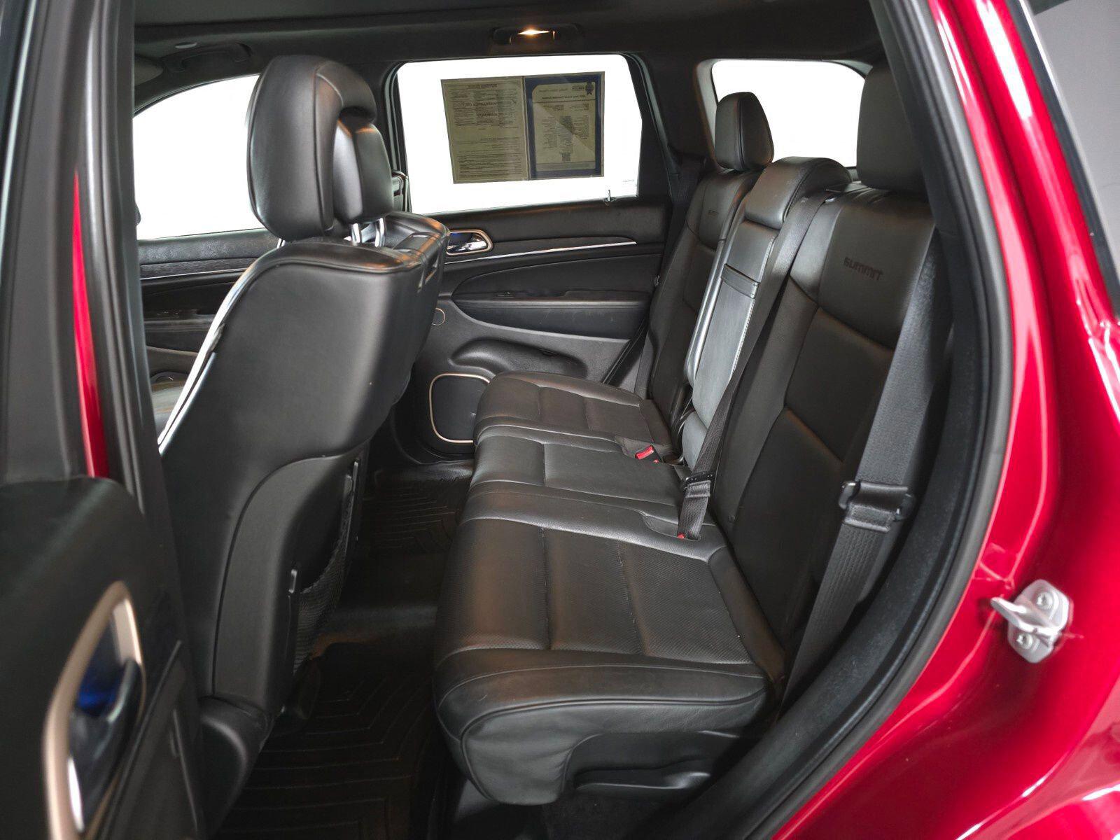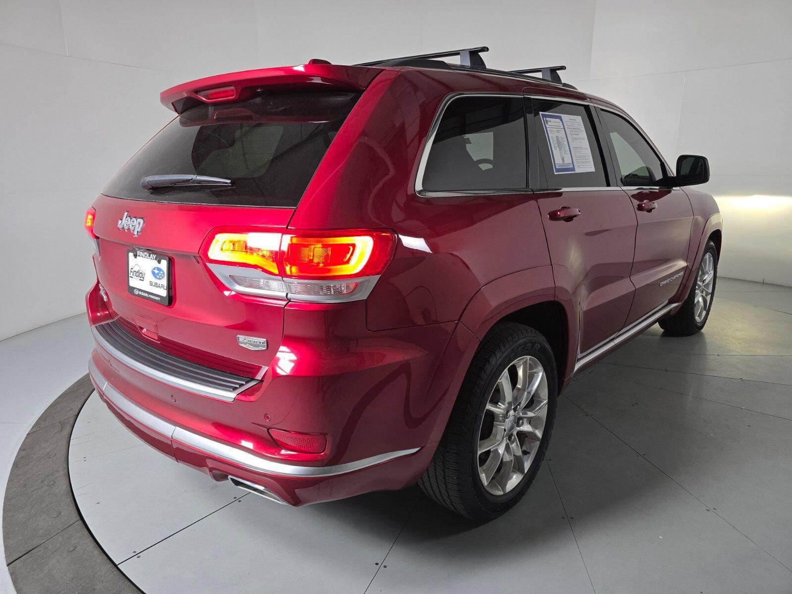 Grand Cherokee Summit, 4D Sport Utility, 3.0L V6 Turbodiesel, 8-Speed Automatic, 4WD, Deep Cherry Red Crystal Pearlcoat, Black Leather.Visit with our NON-Commission team, for a hassle free experience! Save more with Findlay Subaru Prescott, with our competitive, market based pricing! This Jeep Grand Cherokee is equipped with the following features: Platinum Series Group (Regional) (Body Color Door Handles, Body Color Exterior Mirrors, Body Color Sills w/Platinum, Body Color/Platinum Front Fascia, Body Color/Platinum Rear Fascia, Gloss Black Grille-Platinum Chrome, Platinum Badge, Platinum Strip Tail Lamp, and Wheels: 20 x 8.0 Satin Carbon), Quick Order Package 22R, Grand Cherokee Summit, 4D Sport Utility, 3.0L V6 Turbodiesel, 8-Speed Automatic, 4WD, Deep Cherry Red Crystal Pearlcoat, Black Leather, 19 Speakers, 20 x 8.0 Polished Aluminum Wheels, 3.45 Rear Axle Ratio, 4-Wheel Disc Brakes, 8.4 Touchscreen Display, ABS brakes, Air Conditioning, Alloy wheels, AM/FM radio: SiriusXM, Anti-whiplash front head restraints, Audio memory, Auto High-beam Headlights, Auto-dimming door mirrors, Auto-dimming Rear-View mirror, Auto-leveling suspension, Automatic temperature control, Blu-Ray Compatible Dual Screen Video, Brake assist, Bumpers: body-color, Compass, Delay-off headlights, Driver door bin, Driver vanity mirror, Dual front impact airbags, Dual front side impact airbags, Electronic Stability Control, Emergency communication system: Uconnect guardian, Engine Block Heater, Exterior Parking Camera Rear, Four wheel independent suspension, Front anti-roll bar, Front Bucket Seats, Front Center Armrest w/Storage, Front dual zone A/C, Front fog lights, Front reading lights, Fully automatic headlights, Garage door transmitter, Genuine wood dashboard insert, GPS Antenna Input, Headlight cleaning, Heated door mirrors, Heated front seats, Heated rear seats, Heated steering wheel, High intensity discharge headlights: Bi-Xenon, Illuminated entry, Knee airbag, Leather Shift Knob, Leather steering wheel, Leather Trimmed Bucket Seats, Low tire pressure warning, Memory seat, Navigation System, Normal Duty Suspension, Occupant sensing airbag, Outside temperature display, Overhead airbag, Overhead console, Panic alarm, Passenger door bin, Passenger vanity mirror, Power door mirrors, Power driver seat, Power Liftgate, Power moonroof, Power passenger seat, Power steering, Power windows, Radio data system, Radio: Uconnect 8.4 NAV, Rain sensing wipers, Rear anti-roll bar, Rear DVD Entertainment Center, Rear reading lights, Rear seat center armrest, Rear window defroster, Rear window wiper, Rear-Seat Video System, Remote keyless entry, Roof rack: rails only, Security system, Speed control, Speed-Sensitive Wipers, Split folding rear seat, Spoiler, Steering wheel mounted audio controls, Tachometer, Telescoping steering wheel, Tilt steering wheel, Traction control, Trip computer, Turn signal indicator mirrors, Variably intermittent wipers, and Ventilated front seats.We use Market Based Pricing to give you the best price, upfront, without games. We do the shopping, so you get the deals!2015 Jeep Grand Cherokee Summit 21/28 City/Highway MPGAwards:* Green Car Journal 2015 Green SUV of the YearBased on 2017 EPA mileage ratings. Use for comparison purposes only. Your mileage will vary depending on how you drive and maintain your vehicle, driving conditions and other factors.