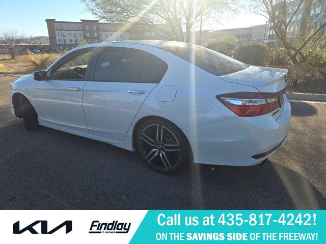 Welcome To Findlay Kia in St. George. All of our vehicles are hand picked and inspected for your peace of mind. Come see us (On the SAVINGS SIDE of the FREEWAY). This Honda Accord is equipped with the following options: Air Conditioning, Alloy wheels, AM/FM radio, Cloth Seat Trim, Delay-off headlights, Electronic Stability Control, Exterior Parking Camera Rear, Front Bucket Seats, Fully automatic headlights, Power door mirrors, Power driver seat, Power steering, Power windows, Radio data system, Remote keyless entry, Speed control, Steering wheel mounted audio controls, Tachometer, Telescoping steering wheel, Tilt steering wheel, Trip computer, Variably intermittent wipers, 160-Watt AM/FM/CD Audio System, 19"" Alloy Wheels, 4 Speakers, 4-Wheel Disc Brakes, ABS brakes, Automatic temperature control, Brake assist, Bumpers: body-color, CD player, Driver door bin, Driver vanity mirror, Dual front impact airbags, Dual front side impact airbags, Four wheel independent suspension, Front anti-roll bar, Front Center Armrest, Front dual zone A/C, Front fog lights, Front reading lights, Illuminated entry, Leather Shift Knob, Low tire pressure warning, Occupant sensing airbag, Outside temperature display, Overhead airbag, Overhead console, Panic alarm, Passenger door bin, Passenger vanity mirror, Rear anti-roll bar, Rear seat center armrest, Rear window defroster, Security system, Speed-sensing steering, Speed-Sensitive Wipers, Split folding rear seat, Spoiler, and Traction control.Air Conditioning, Alloy wheels, AM/FM radio, Cloth Seat Trim, Delay-off headlights, Electronic Stability Control, Exterior Parking Camera Rear, Front Bucket Seats, Fully automatic headlights, Power door mirrors, Power driver seat, Power steering, Power windows, Radio data system, Remote keyless entry, Speed control, Steering wheel mounted audio controls, Tachometer, Telescoping steering wheel, Tilt steering wheel, Trip computer, Variably intermittent wipers.4D Sedan FWD CVT 2.4L I4 DOHC i-VTEC 16VRecent Arrival! Odometer is 48504 miles below market average! 26/35 City/Highway MPGThank you again for your consideration. We have this Honda Accord and dozens more available at www.findlaykiastgeorge.com or call us at 435-817-4242.Awards: * 2016 KBB.com Brand Image AwardsKelley Blue Book Brand Image Awards are based on the Brand Watch(tm) study from Kelley Blue Book Market Intelligence. Award calculated among non-luxury shoppers. For more information, visit www.kbb.com. Kelley Blue Book is a registered trademark of Kelley Blue Book Co., Inc.