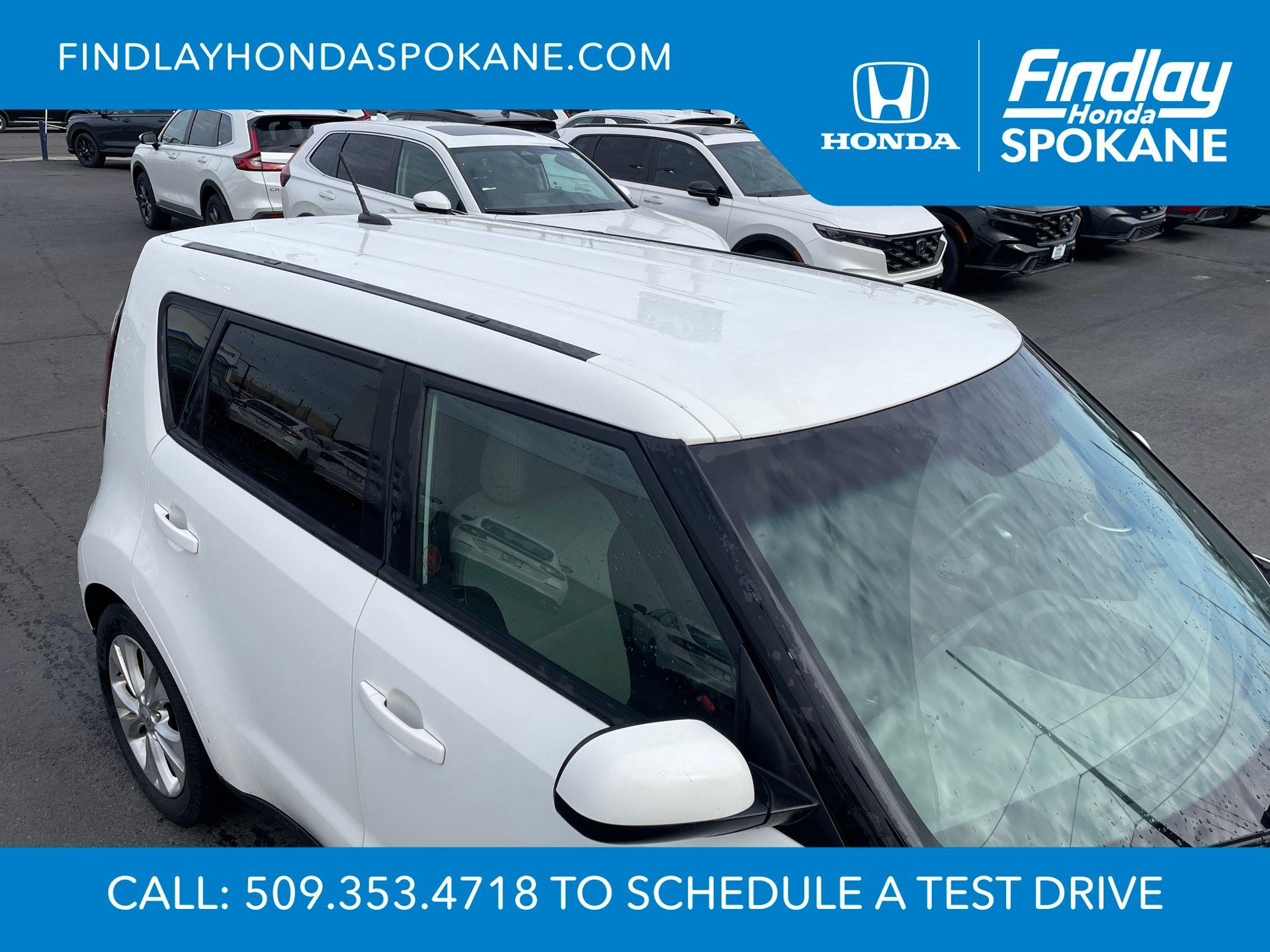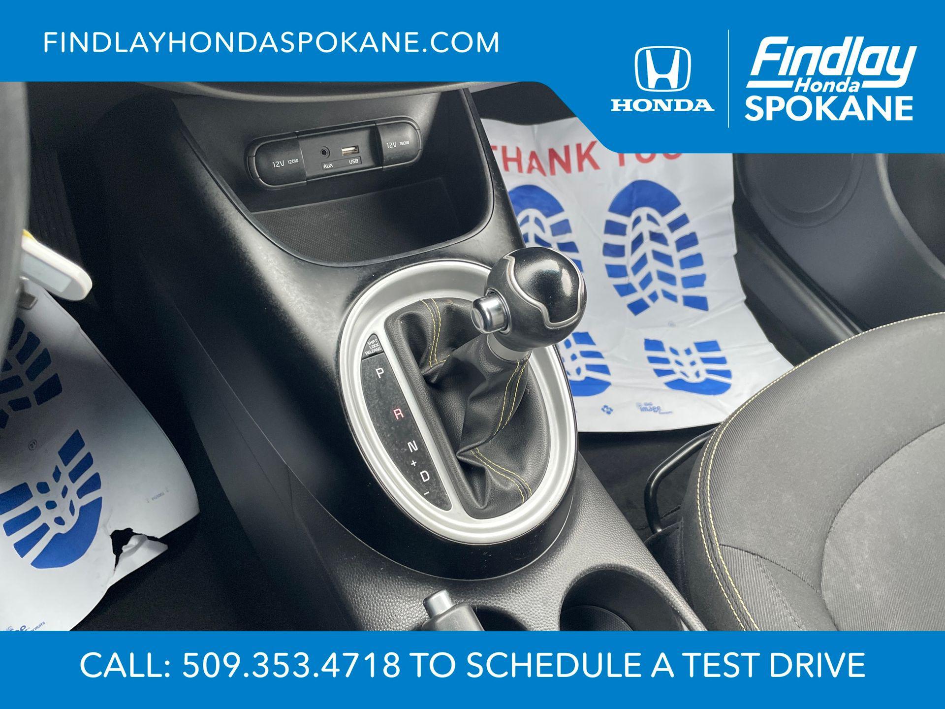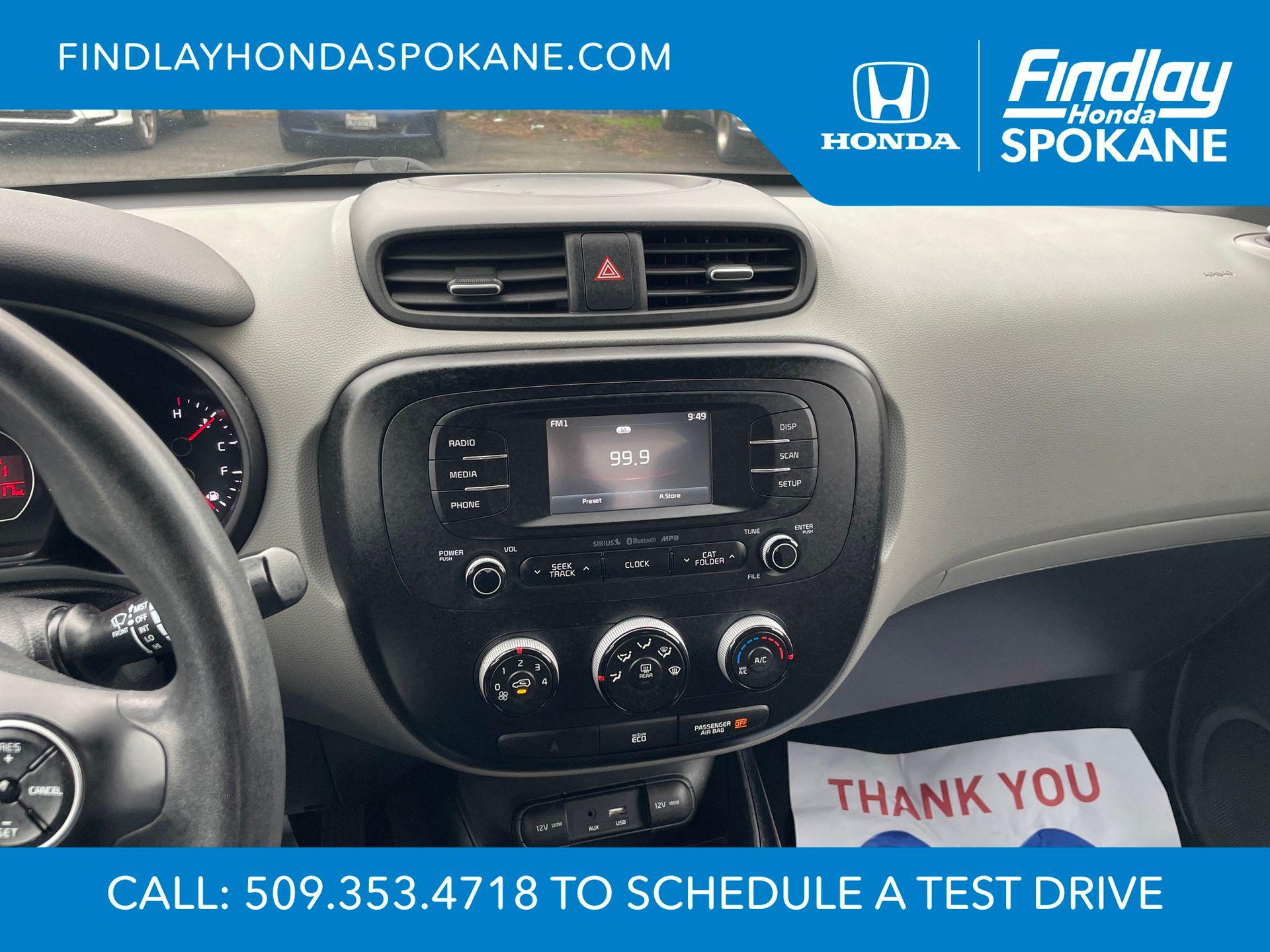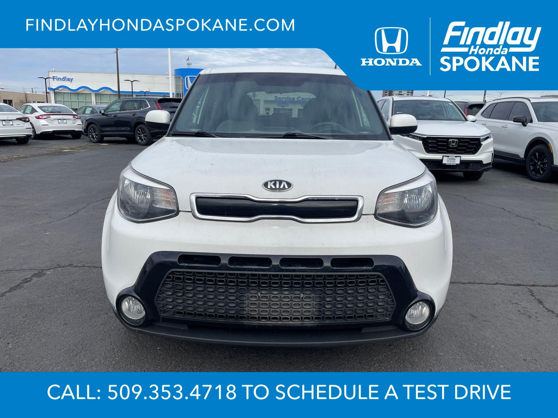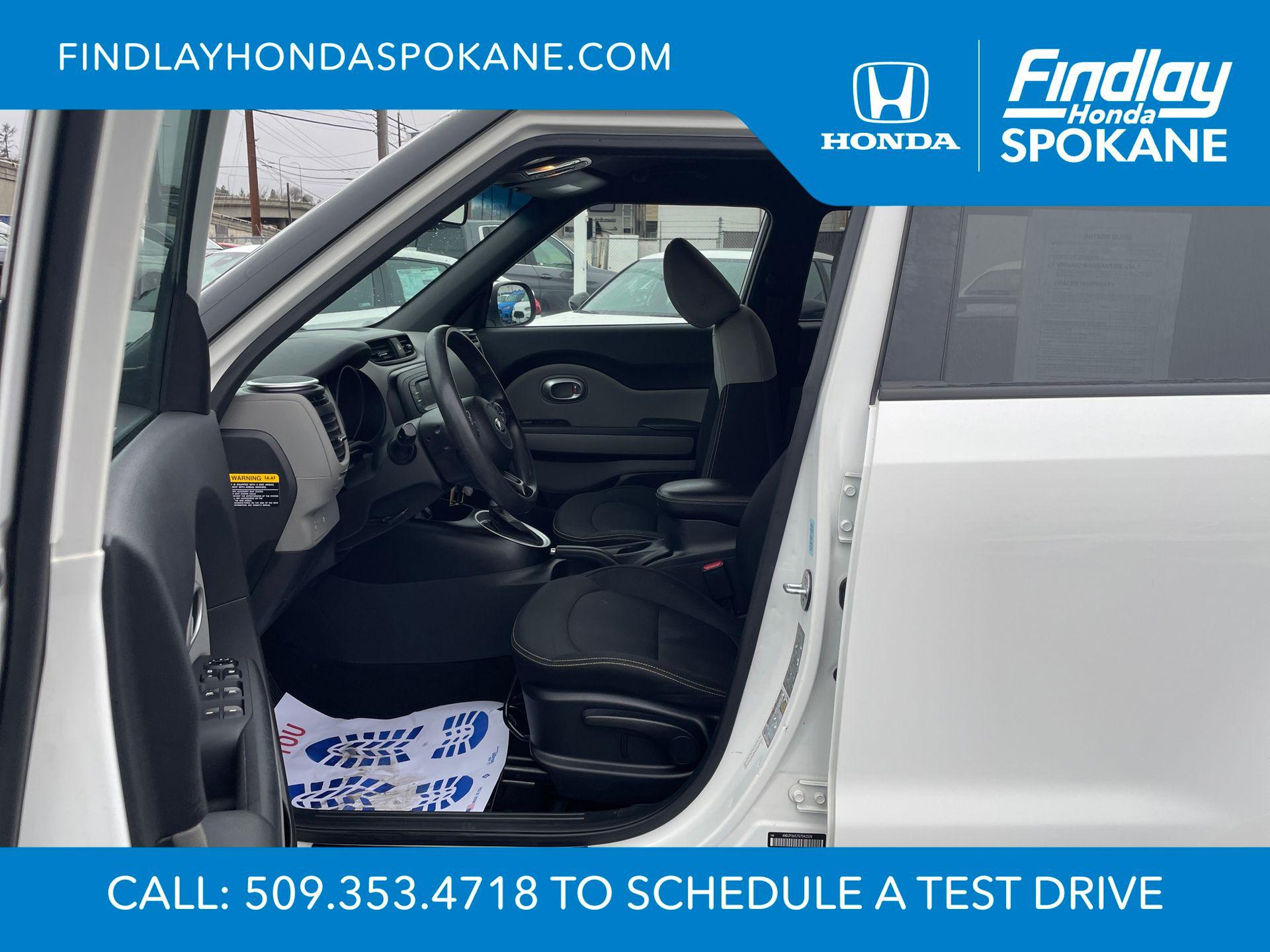 Clear White 2016 Kia Soul Plus FWD 6-Speed Automatic I4Friends, family, and neighbors have chosen us time and time again to be their dealer. Our simple and easy process, market aggressive pricing, and friendly knowledgeable staff are all reasons why. Come see for yourself why we are the top rated dealer in Spokane. Our process is designed to be easy, give you choices, and save you time. Our pressure free buying process allows you to see the quote you want. We give every customer multiple different monthly payments and down payments all on one sheet, so you can choose the one that best fits your budget. Come see how easy it is to purchase a car, truck, SUV from Findlay Honda Spokane. This Kia Soul is equipped with these features: 17"" x 6.5J Alloy Wheels, 4-Wheel Disc Brakes, 6 Speakers, 6-Way Adjustable Driver's Seat, ABS brakes, Air Conditioning, Alloy wheels, AM/FM radio: SiriusXM, Brake assist, Bumpers: body-color, Carpeted Floor Mats, Driver door bin, Driver vanity mirror, Dual front impact airbags, Dual front side impact airbags, Electronic Stability Control, Exterior Parking Camera Rear, Front anti-roll bar, Front Bucket Seats, Front Center Armrest, Front fog lights, Front reading lights, Front wheel independent suspension, Fully automatic headlights, Heated door mirrors, Illuminated entry, Low tire pressure warning, Occupant sensing airbag, Outside temperature display, Overhead airbag, Overhead console, Panic alarm, Passenger door bin, Passenger vanity mirror, Power door mirrors, Power steering, Power windows, Radio: AM/FM/MP3 Audio System, Rear seat center armrest, Rear window defroster, Rear window wiper, Remote keyless entry, Speed control, Speed-sensing steering, Split folding rear seat, Steering wheel mounted audio controls, Tachometer, Telescoping steering wheel, Tilt steering wheel, Traction control, Trip computer, Upgraded Cloth Seat Trim, and Variably intermittent wipers.24/31 City/Highway MPGAwards: * JD Power Automotive Performance, Execution and Layout (APEAL) Study, Initial Quality Study (IQS), Vehicle Dependability Study (VDS) * JD Power Automotive Performance, Execution and Layout (APEAL) Study, Initial Quality Study (IQS), Vehicle Dependability Study * 2016 IIHS Top Safety Pick * 2016 KBB.com 10 Best Used Cars Under $15,000 * 2016 KBB.com 10 Coolest New Cars Under $18,000When shopping with Larry H Miller Downtown Dealerships you get the vehicle, you want. We carry one of the largest inventories in Eastern Washington or Idaho because we know you want to have a selection. When shopping for a pre-owned vehicle we have over 5000 vehicles to choose from in stock at one of our 60+ stores, and we are happy to get them here for you. Even if you choose not to purchase with us you will be provide with a written trade appraisal form. This value is guaranteed. This is because we have an unique appraisal process that allows us to have Larry H Miller central appraisal team put a value that represents the best number from our 60+ dealers.