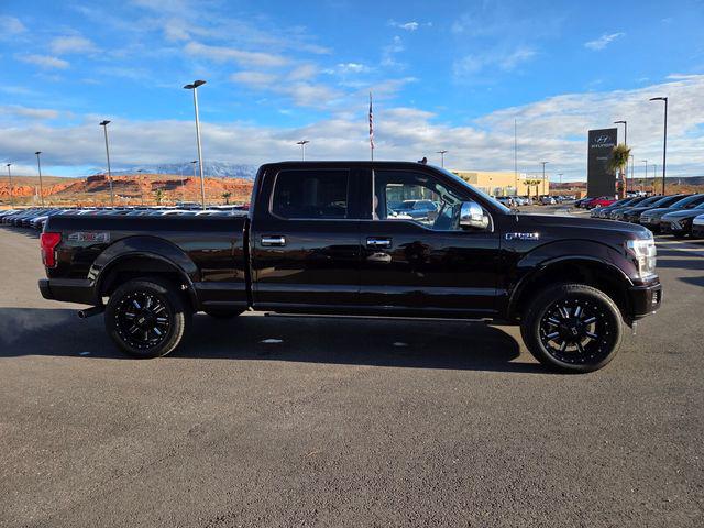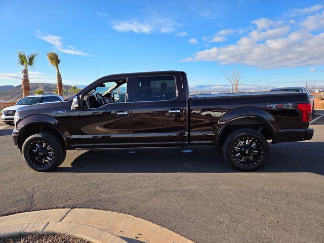WE DON'T NORMALLY KEEP PRE OWNED VEHICLES WITH THESE KIND OF MILES BUT WHEN YOU SEE A PLATINUM F-150 IN THIS CONDITION WITH THE SERVICE HISTORY THAT'S BEEN DONE... WE'LL MAKE AN EXCEPTION! EXTREMELY WELL CARED FOR F-150 PLATINUM WITH AN EQUALLY IMPRESSIVE PILE OF SERVICE HISTORY PAPERWORK AND A MATCHING CARFAX! BUY WITH CONFIDENCE! CALL, STOP BY, SCHEDULE AN APPOINTMENT... THIS TRUCK WON'T BE HERE LONG!2018 Ford F-150 Platinum 3.5L V6 EcoBoost 10-Speed Automatic 4WDFor more information about this vehicle or to schedule a test drive, please contact our Sales staff at # 435-688-7272 or stop by our brand new store located at 1145 E TWIN ROCKS COVE, WASHINGTON, UT 84780! **HABLAMOS ESPANOL*** This Ford F-150 Platinum is equipped with the following features: Equipment Group 700A Base, GVWR: 7,050 lbs Payload Package, Max Trailer Tow Package (Class IV Trailer Hitch Receiver, Extended Range 36 Gallon Fuel Tank, Higher-Capacity Radiator, Higher-Power Cooling Fans, Integrated Trailer Brake Controller, Pro Trailer Backup Assist, and Upgraded Front Stabilizer Bar), 4WD, 10 Speakers, 20"" Polished Aluminum Wheels, 4-Wheel Disc Brakes, ABS brakes, Adjustable pedals, Air Conditioning, Alloy wheels, AM/FM radio: SiriusXM, AppLink/Apple CarPlay and Android Auto, Auto High-beam Headlights, Auto tilt-away steering wheel, Auto-dimming door mirrors, Auto-dimming Rear-View mirror, Automatic temperature control, Black Unique Multi-Contour Leather Bucket Seats, Brake assist, Bumpers: body-color, CD player, Compass, Delay-off headlights, Driver door bin, Driver vanity mirror, Dual front impact airbags, Dual front side impact airbags, Electronic Stability Control, Emergency communication system: SYNC 3 911 Assist, Exterior Parking Camera Rear, Front anti-roll bar, Front Bucket Seats, Front Center Armrest, Front dual zone A/C, Front fog lights, Front License Plate Bracket, Front reading lights, Front wheel independent suspension, Fully automatic headlights, Garage door transmitter, Genuine wood door panel insert, Heated door mirrors, Heated front seats, Heated rear seats, Heated steering wheel, Illuminated entry, Low tire pressure warning, Memory seat, Navigation System, Occupant sensing airbag, Outside temperature display, Overhead airbag, Overhead console, Panic alarm, Passenger door bin, Passenger vanity mirror, Pedal memory, Power door mirrors, Power driver seat, Power passenger seat, Power steering, Power windows, Radio data system, Radio: B&O Play Premium Audio System, Rain sensing wipers, Rear Parking Sensors, Rear reading lights, Rear seat center armrest, Rear step bumper, Rear window defroster, Remote keyless entry, Security system, Speed control, Speed-sensing steering, Split folding rear seat, Spray-In Bedliner (Pre-Installed), Steering wheel memory, Steering wheel mounted audio controls, SYNC 3, Tachometer, Tailgate Step w/Tailgate Lift Assist, Telescoping steering wheel, Tilt steering wheel, Traction control, Trip computer, Turn signal indicator mirrors, Variably intermittent wipers, Ventilated front seats, Voice-Activated Touchscreen Navigation System, and Voltmeter. 4WD.Awards: * 2018 KBB.com 10 Most Awarded Brands * 2018 KBB.com Brand Image Awards