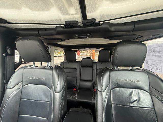 Bright White Clearcoat 2018 Jeep Wrangler Unlimited Sahara 4WD 8-Speed Automatic 3.6L V6 24V VVTOdometer is 3298 miles below market average!Awards: * 2018 KBB.com 10 Most Awarded BrandsAnd Our Jeep Wrangler is equipped with the following options: 1-Year SiriusXM Guardian Trial, 21.5 Gallon Fuel Tank (DISC), 4-Wheel Disc Brakes, 5-Year SiriusXM Traffic Service, 5-Year SiriusXM Travel Link Service, 8 Speakers, 8.4"" Touchscreen Display, ABS brakes, Alloy wheels, Alpine Premium Audio System, AM/FM radio: SiriusXM, Anti-Spin Differential Rear Axle, Apple CarPlay (DISC), Apple CarPlay/Android Auto, Auto-Dimming Rear-View Mirror, Blind Spot & Cross Path Detection, Body Color 3-Piece Hard Top, Cold Weather Group, Daytime Running Lamps LED Accents, Dual front impact airbags, Dual front side impact airbags, Electronic Infotainment System Group, Freedom Panel Storage Bag, Front anti-roll bar, Front dual zone A/C, Front LED Fog Lamps, Garage door transmitter, GPS Navigation, HD Radio, Heated door mirrors, Heated Front Seats, Heated Steering Wheel, Heavy Duty Suspension w/Gas Shocks, Illuminated entry, Integrated roll-over protection, Leather steering wheel, LED Lighting Group, LED Reflector Headlamps, LED Taillamps, Low tire pressure warning, Navigation System, Occupant sensing airbag, ParkSense Rear Park Assist System, Quick Order Package 24G, Radio: Uconnect 4C Nav w/8.4"" Display, Rear anti-roll bar, Rear Window Defroster, Rear Window Wiper/Washer, Remote keyless entry, Remote Start System, Roadside Assistance & 9-1-1 Call, Safety Group, SiriusXM Traffic Plus, SiriusXM Travel Link, Split folding rear seat, Steering wheel mounted audio controls, Telescoping steering wheel, Wheels: 18"" x 7.5"" Polished w/Gray Spokes.