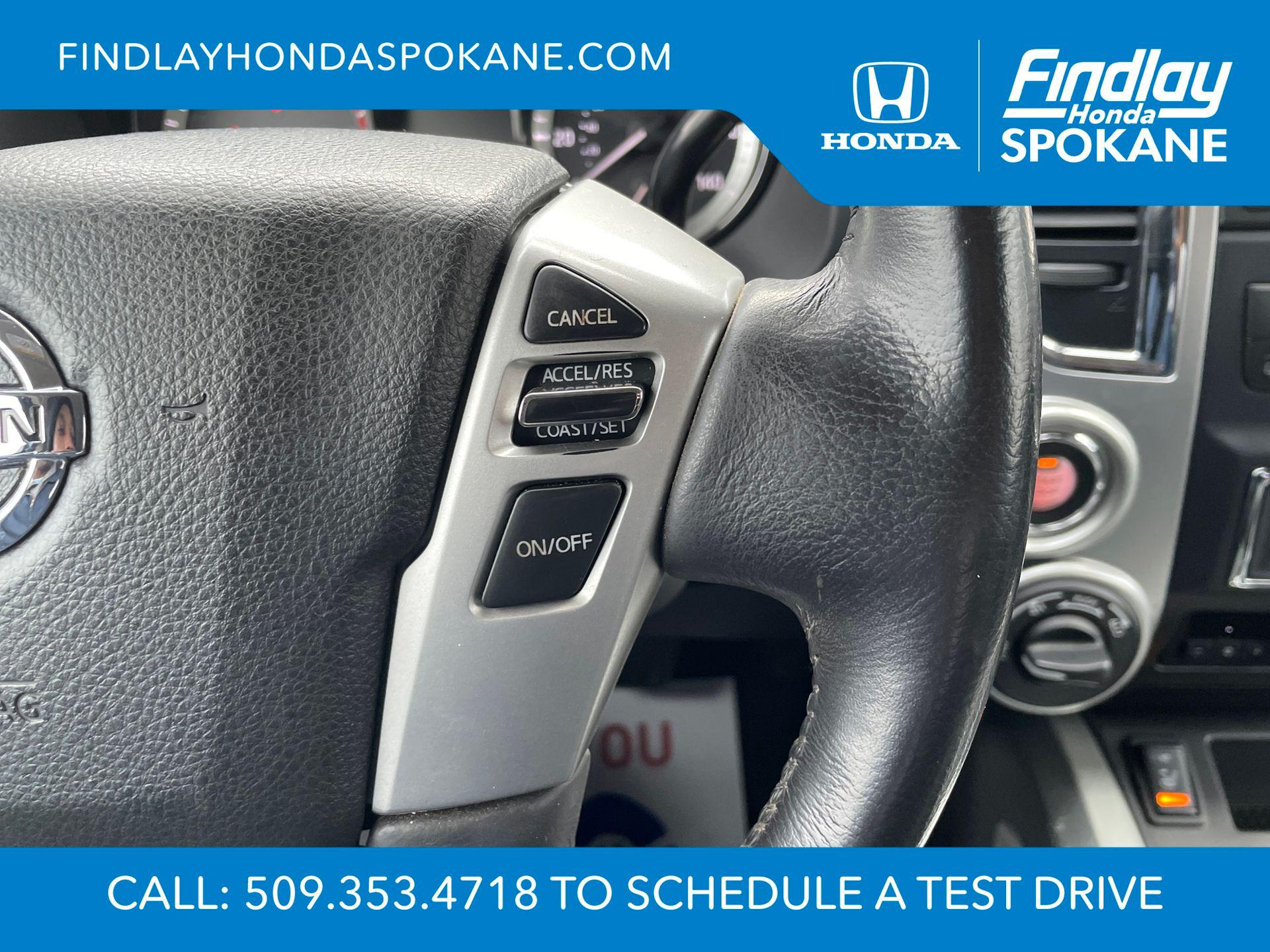 Java Metallic 2018 Nissan Titan XD SL 4WD 6-Speed Automatic 5.0L V8Friends, family, and neighbors have chosen us time and time again to be their dealer. Our simple and easy process, market aggressive pricing, and friendly knowledgeable staff are all reasons why. Come see for yourself why we are the top rated dealer in Spokane. Our process is designed to be easy, give you choices, and save you time. Our pressure free buying process allows you to see the quote you want. We give every customer multiple different monthly payments and down payments all on one sheet, so you can choose the one that best fits your budget. Come see how easy it is to purchase a car, truck, SUV from Findlay Honda Spokane. This Nissan Titan XD is equipped with these features: Chrome Package (Chrome Exhaust Finisher, Chrome Grille, Metallic Kick Plates, and Wheels: 20"" x 7.5"" Chrome), 12 Speakers, 3.916 Axle Ratio, 4-Wheel Disc Brakes, ABS brakes, Air Conditioning, Alloy wheels, AM/FM radio: SiriusXM, Auto tilt-away steering wheel, Auto-dimming door mirrors, Auto-dimming Rear-View mirror, Automatic temperature control, Block heater, Brake assist, Bumpers: chrome, Carpet Floor Mats, CD player, Compass, Delay-off headlights, Driver door bin, Driver vanity mirror, Dual front impact airbags, Dual front side impact airbags, Electronic Stability Control, Emergency communication system, Front anti-roll bar, Front Bucket Seats, Front Center Armrest, Front dual zone A/C, Front fog lights, Front reading lights, Front wheel independent suspension, Garage door transmitter: HomeLink, Heated Captain's Chairs, Heated door mirrors, Heated front seats, Illuminated entry, Leather Seat Trim, Leather steering wheel, LED Fog Lights w/Bright Chrome Bezel, Low tire pressure warning, Memory seat, Navigation System, Outside temperature display, Overhead airbag, Overhead console, Panic alarm, Passenger door bin, Passenger vanity mirror, Power door mirrors, Power driver seat, Power passenger seat, Power steering, Power windows, Radio data system, Radio: NissanConnect w/Navigation & Mobile Apps, Rain sensing wipers, Rear anti-roll bar, Rear seat center armrest, Rear step bumper, Rear window defroster, Remote keyless entry, Rockford Fosgate Premium Audio w/12 Speakers, Security system, Speed control, Speed-sensing steering, Speed-Sensitive Wipers, Splash Guards (B93), Split folding rear seat, Steering wheel memory, Steering wheel mounted audio controls, Tachometer, Telescoping steering wheel, Tilt steering wheel, Traction control, Turn signal indicator mirrors, Variably intermittent wipers, Voltmeter, and Wheels: 20"" x 7.5"" Painted Alloy.Odometer is 62155 miles below market average!When shopping with Larry H Miller Downtown Dealerships you get the vehicle, you want. We carry one of the largest inventories in Eastern Washington or Idaho because we know you want to have a selection. When shopping for a pre-owned vehicle we have over 5000 vehicles to choose from in stock at one of our 60+ stores, and we are happy to get them here for you. Even if you choose not to purchase with us you will be provide with a written trade appraisal form. This value is guaranteed. This is because we have an unique appraisal process that allows us to have Larry H Miller central appraisal team put a value that represents the best number from our 60+ dealers.