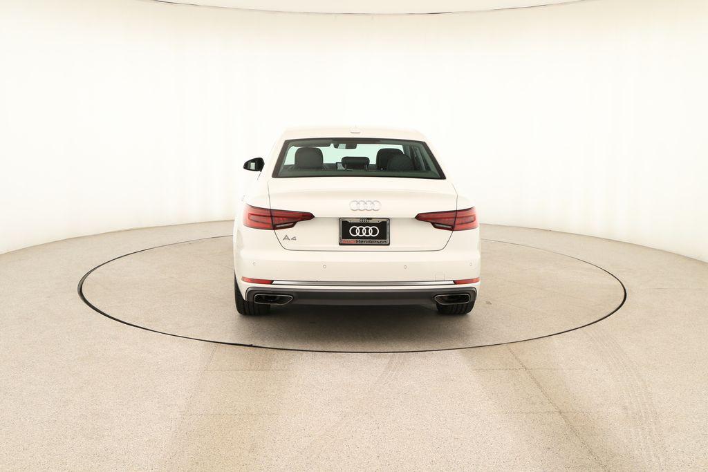 At Audi Henderson, our goal is to provide our customers with a Dealership experience that is unmatched in the Automotive Industry. Whether it's sales or service, parts or accessories, it is our goal to do our best for you on each and every visit. We believe Audi vehicles are some of the finest on the road today and our passion for what we do is obvious from the moment you set foot in our store. We've refined our processes, continually train our staff and take pride in what we do in effort to redefine the typical car-buying experience. Visit Audi Henderson today and experience the difference.CARFAX One-Owner. Priced below KBB Fair Purchase Price!Odometer is 7945 miles below market average!This Audi A4 is equipped with the following features: 18"" Wheel Package (Wheels: 18"" 10-Spoke-V Design), Convenience Package (Alarm System w/Motion Sensor, Audi Advanced Key, Audi Pre Sense Rear, Audi Side Assist w/Rear Cross Traffic Assist, Auto-Dimming Exterior Mirrors, Memory for Driver's Seat, and SiriusXM Satellite Radio), Premium Plus Package (Audi Connect PRIME & PLUS, Audi MMI Navigation Plus w/MMI Touch, Audi Virtual Cockpit, Leatherette Covered Center Console & Door Armrests, LED Headlights, Parking System Plus, and Power Folding Exterior Mirrors), 7-Speed Automatic S tronic, and Black w/Leather Seating Surfaces.2.0L I4 TFSI DOHC FrontTrak 7-Speed Automatic S tronic*Full Safety Inspection, *All Scheduled Service Up to Date, *Serviced Here New, *Purchased Here New, BACKUP CAMERA, BLUETOOTH, NAVIGATION SYSTEM, HOMELINK, HEAT PACKAGE, LEATHER SEATS, 7-Speed Automatic S tronic, Black w/Leather Seating Surfaces, 18"" Wheel Package, Alarm System w/Motion Sensor, Audi Advanced Key, Audi Connect PRIME & PLUS, Audi MMI Navigation Plus w/MMI Touch, Audi Pre Sense Rear, Audi Side Assist w/Rear Cross Traffic Assist, Audi Virtual Cockpit, Auto-Dimming Exterior Mirrors, Convenience Package, Leatherette Covered Center Console & Door Armrests, LED Headlights, Memory for Driver's Seat, Parking System Plus, Power Folding Exterior Mirrors, Premium Plus Package, SiriusXM Satellite Radio, Wheels: 18"" 10-Spoke-V Design.
