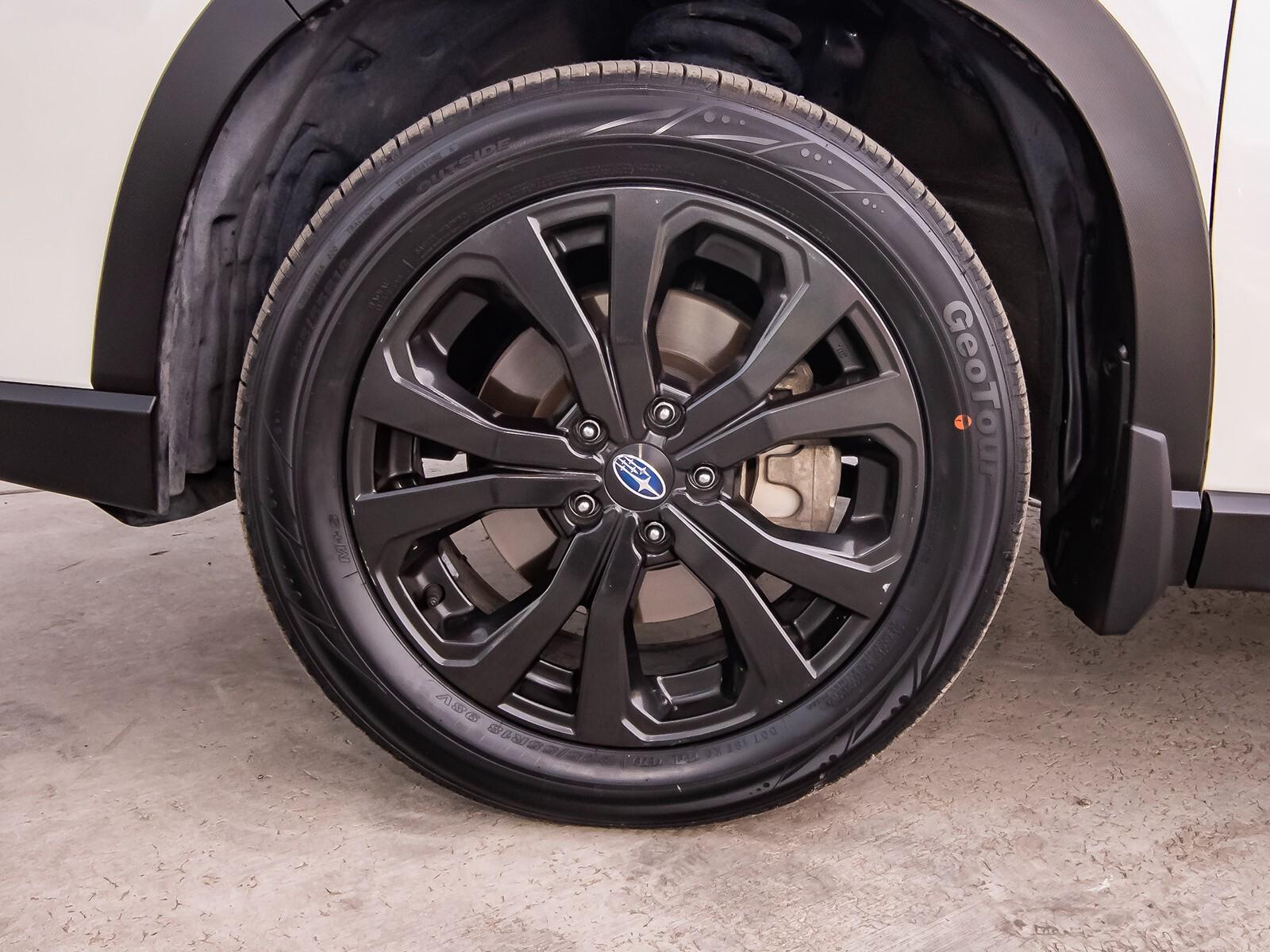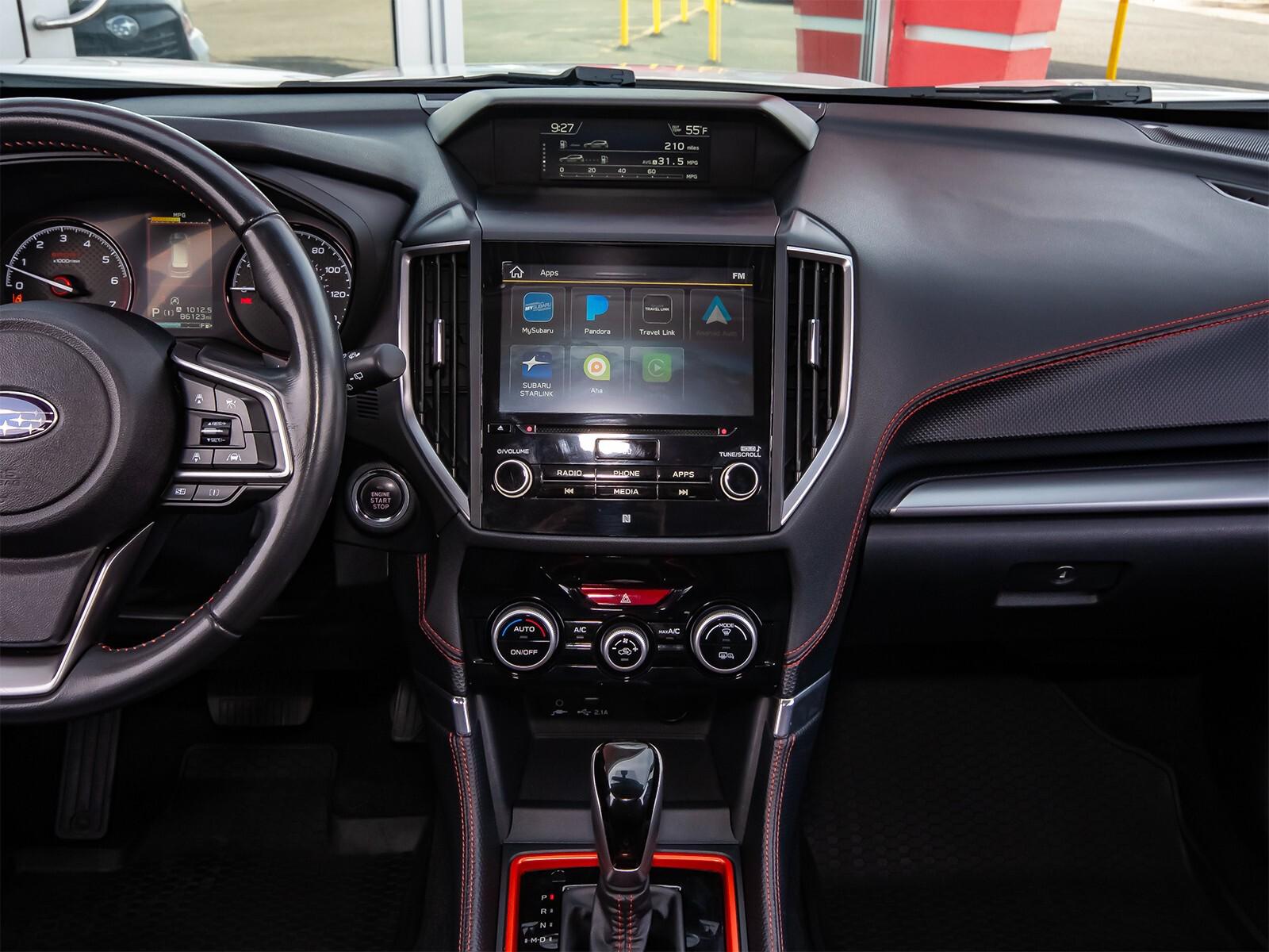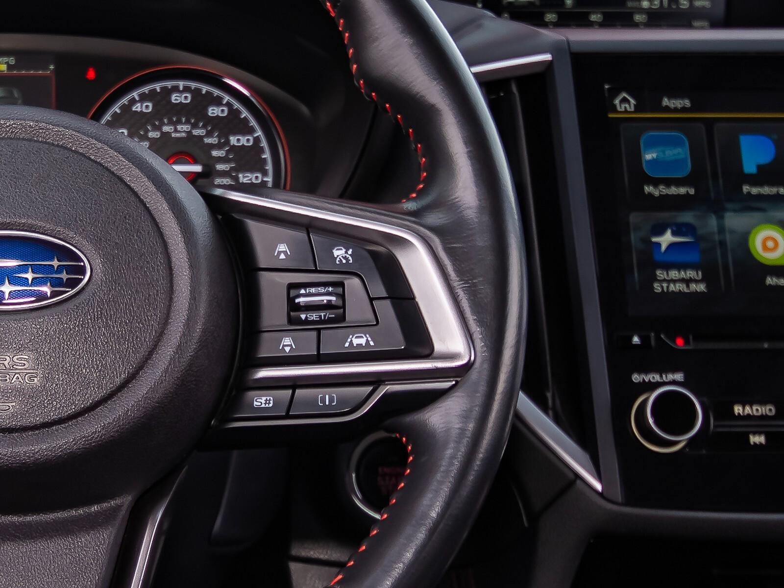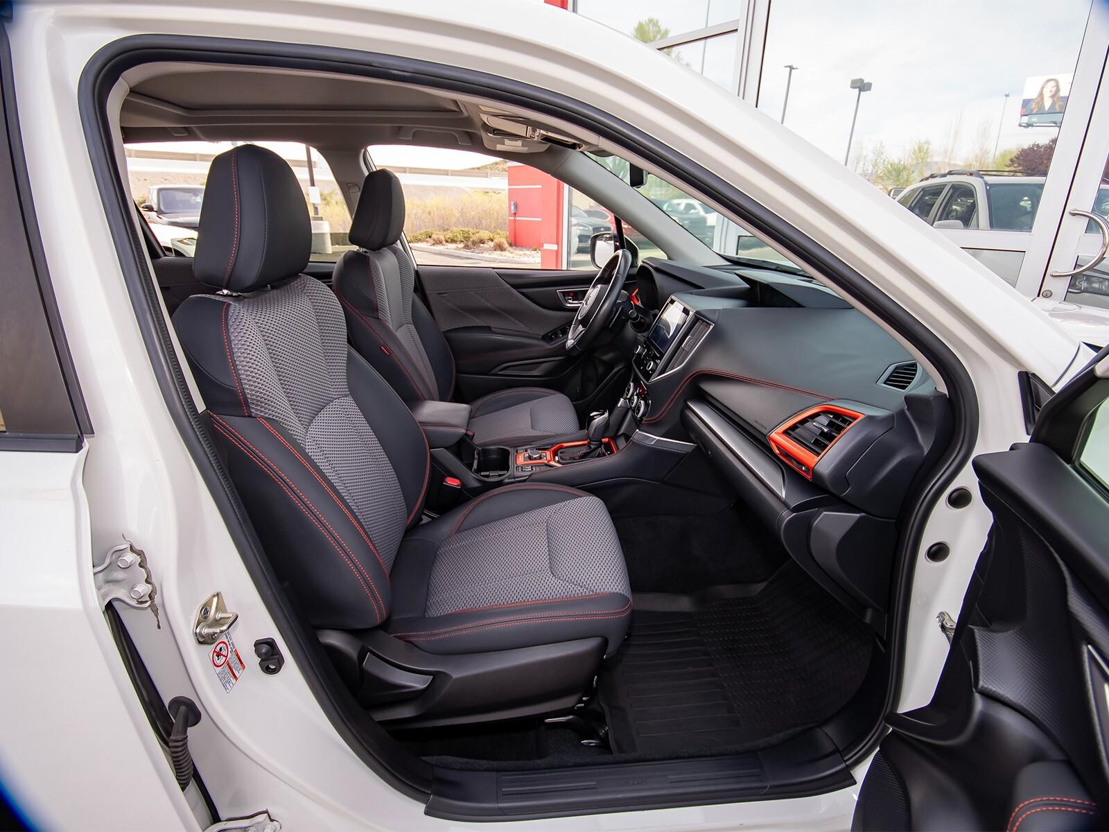 3.70 Axle Ratio, 4-Wheel Disc Brakes, 6 Speakers, ABS brakes, Aero Crossbar Set, Air Conditioning, All-Weather Floor Liners, Alloy wheels, AM/FM radio: SiriusXM, Auto High-beam Headlights, Auto-Dimming Exterior Mirror w/Approach Lighting, Auto-Dimming Mirror w/Compass & HomeLink, Automatic temperature control, Blind Spot Detection w/Rear Cross Traffic Alert, Brake assist, BSD & Reverse Auto Braking & Multimedia Plus Audio, Bumpers: body-color, Cargo Net, CD player, Driver door bin, Driver vanity mirror, Dual front impact airbags, Dual front side impact airbags, Electronic Stability Control, Emergency communication system: STARLINK Safety and Security, Exterior Parking Camera Rear, Four wheel independent suspension, Front anti-roll bar, Front Bucket Seats, Front Center Armrest, Front fog lights, Front reading lights, Fully automatic headlights, Heated door mirrors, Heated Front Bucket Seats, Heated front seats, Illuminated entry, Knee airbag, Leather Shift Knob, Low tire pressure warning, Occupant sensing airbag, Outside temperature display, Overhead airbag, Overhead console, Paddle-Shift Control Switches, Panic alarm, Passenger door bin, Passenger vanity mirror, Popular Package #2, Power door mirrors, Power driver seat, Power moonroof: Panoramic, Power steering, Power windows, Radio data system, Radio: Subaru Starlink 6.5'' Multimedia Plus System, Radio: Subaru Starlink 8.0'' Multimedia Plus System, Rear anti-roll bar, Rear Bumper Cover, Rear seat center armrest, Rear Seatback Protector, Rear window defroster, Rear window wiper, Remote keyless entry, Reverse Automatic Braking System (RAB), Roof rack: rails only, Security system, Speed control, Speed-sensing steering, Splash Guards, Split folding rear seat, Spoiler, Sport Cloth Upholstery, STARLINK/Apple CarPlay/Android Auto, Steering wheel mounted audio controls, Tachometer, Telescoping steering wheel, Tilt steering wheel, Traction control, Trip computer, Turn signal indicator mirrors, Variably intermittent wipers,