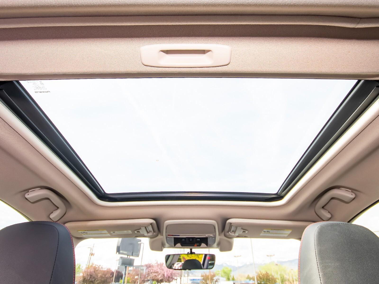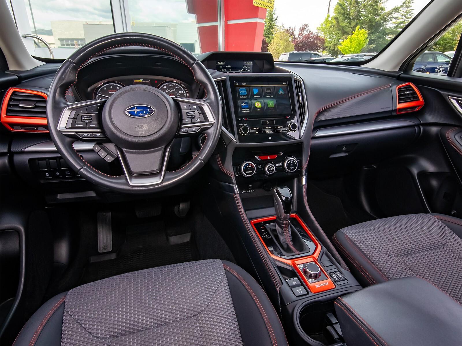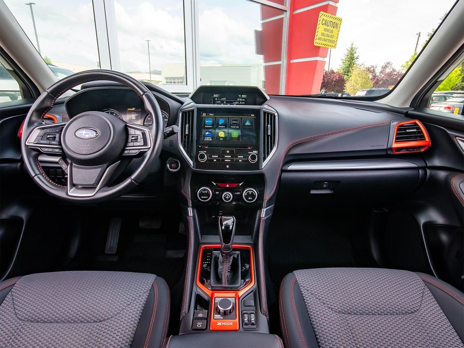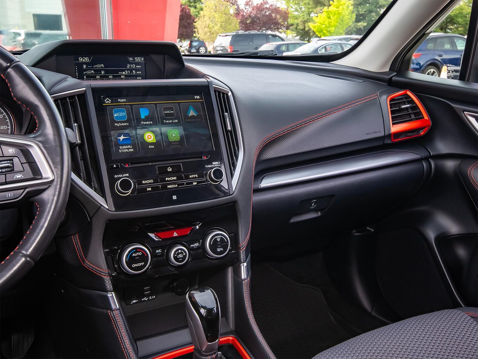 3.70 Axle Ratio, 4-Wheel Disc Brakes, 6 Speakers, ABS brakes, Aero Crossbar Set, Air Conditioning, All-Weather Floor Liners, Alloy wheels, AM/FM radio: SiriusXM, Auto High-beam Headlights, Auto-Dimming Exterior Mirror w/Approach Lighting, Auto-Dimming Mirror w/Compass & HomeLink, Automatic temperature control, Blind Spot Detection w/Rear Cross Traffic Alert, Brake assist, BSD & Reverse Auto Braking & Multimedia Plus Audio, Bumpers: body-color, Cargo Net, CD player, Driver door bin, Driver vanity mirror, Dual front impact airbags, Dual front side impact airbags, Electronic Stability Control, Emergency communication system: STARLINK Safety and Security, Exterior Parking Camera Rear, Four wheel independent suspension, Front anti-roll bar, Front Bucket Seats, Front Center Armrest, Front fog lights, Front reading lights, Fully automatic headlights, Heated door mirrors, Heated Front Bucket Seats, Heated front seats, Illuminated entry, Knee airbag, Leather Shift Knob, Low tire pressure warning, Occupant sensing airbag, Outside temperature display, Overhead airbag, Overhead console, Paddle-Shift Control Switches, Panic alarm, Passenger door bin, Passenger vanity mirror, Popular Package #2, Power door mirrors, Power driver seat, Power moonroof: Panoramic, Power steering, Power windows, Radio data system, Radio: Subaru Starlink 6.5'' Multimedia Plus System, Radio: Subaru Starlink 8.0'' Multimedia Plus System, Rear anti-roll bar, Rear Bumper Cover, Rear seat center armrest, Rear Seatback Protector, Rear window defroster, Rear window wiper, Remote keyless entry, Reverse Automatic Braking System (RAB), Roof rack: rails only, Security system, Speed control, Speed-sensing steering, Splash Guards, Split folding rear seat, Spoiler, Sport Cloth Upholstery, STARLINK/Apple CarPlay/Android Auto, Steering wheel mounted audio controls, Tachometer, Telescoping steering wheel, Tilt steering wheel, Traction control, Trip computer, Turn signal indicator mirrors, Variably intermittent wipers,