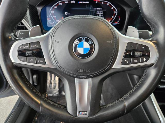 10 Speakers, 4-Wheel Disc Brakes, ABS brakes, Active Blind Spot Detection, Active Driving Assistant, Air Conditioning, Alloy wheels, Aluminum Trim w/Mesh Effect, AM/FM radio: SiriusXM with 360L, Apple CarPlay Compatibility, Auto High-beam Headlights, Auto-dimming door mirrors, Auto-dimming Rear-View mirror, Automatic temperature control, Black Mirror Caps, BMW Assist eCall, BMW TeleServices, Brake assist, Bumpers: body-color, Compass, Connected Package Pro, ConnectedDrive Services, Delay-off headlights, Driver door bin, Driver vanity mirror, Dual front impact airbags, Dual front side impact airbags, Electronic Stability Control, Emergency communication system: BMW Assist eCall, Enhanced Bluetooth, Extended Shadowline Trim, Exterior Parking Camera Rear, Four wheel independent suspension, Front anti-roll bar, Front Bucket Seats, Front Center Armrest, Front dual zone A/C, Front reading lights, Fully automatic headlights, Garage door transmitter, Hands-Free Bluetooth & USB Audio Connection, Heated door mirrors, Hi-Fi Sound System, Illuminated entry, Knee airbag, Lane Departure Warning System, Leather Shift Knob, Leather steering wheel, Live Cockpit Pro w/Navi, Low tire pressure warning, Lumbar Support, M Shadowline Lights, M Sport Brakes w/Red Calipers, Memory seat, Navigation System, Occupant sensing airbag, Outside temperature display, Overhead airbag, Panic alarm, Park Distance Control, Passenger door bin, Passenger vanity mirror, Perforated Sensa Tec Upholstery, Power door mirrors, Power driver seat, Power Front Seats, Power moonroof, Power passenger seat, Power steering, Power windows, Radio data system, Radio: AM/FM Audio System, Rain sensing wipers, Rear air conditioning, Rear anti-roll bar, Rear reading lights, Rear seat center armrest, Rear window defroster, Remote Engine Start, Remote keyless entry, Security system, SiriusXM w/360L, Speed control, Speed-sensing steering, Speed-Sensitive Wipers, Split folding rear seat, Spoiler, Sport Seats, Sport steering wheel, Steering wheel mounted audio controls, Tachometer, Telescoping steering wheel, Tilt steering wheel, Traction control, Trip computer, Turn signal indicator mirrors, Variably intermittent wipers, Wheels: 18"" x 7.5"" Fr & 18"" x 8.5"" Rr (Style 790M), Wheels: 18"" x 7.5"" M Double-Spoke (Style 790M).
