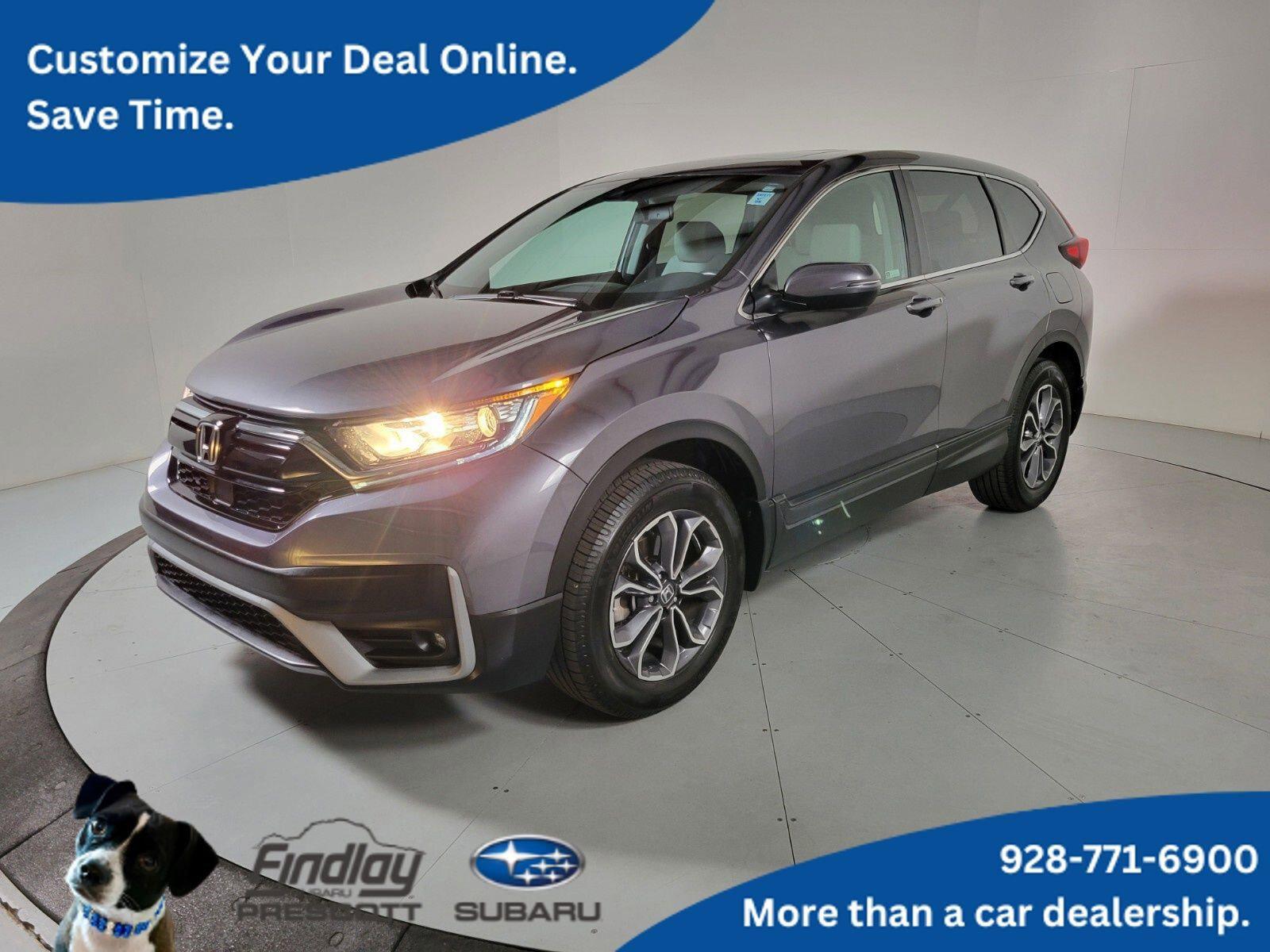 CR-V EX-L, 4D Sport Utility, 1.5L I4 DOHC 16V, CVT, AWD, Modern Steel Metallic, Black Leather.Visit with our NON-Commission team, for a hassle free experience! Save more with Findlay Subaru Prescott, with our competitive, market based pricing! This Honda CR-V is equipped with the following features: CR-V EX-L, 4D Sport Utility, 1.5L I4 DOHC 16V, CVT, AWD, Modern Steel Metallic, Black Leather, 18 Alloy Wheels, 4-Wheel Disc Brakes, 5.64 Axle Ratio, 8 Speakers, ABS brakes, Adaptive Cruise Control: Adaptive Cruise Control (ACC) with Low-Speed Follow, Air Conditioning, Alloy wheels, AM/FM radio: SiriusXM, Apple CarPlay/Android Auto, Auto High-beam Headlights, Auto-dimming Rear-View mirror, Automatic temperature control, Blind Spot Information (BSI) System warning, Brake assist, Bumpers: body-color, Compass, Delay-off headlights, Driver door bin, Driver vanity mirror, Dual front impact airbags, Dual front side impact airbags, Electronic Stability Control, Exterior Parking Camera Rear, Forward collision: Collision Mitigation Braking System (CMBS) + FCW mitigation, Four wheel independent suspension, Front anti-roll bar, Front Bucket Seats, Front Center Armrest, Front dual zone A/C, Front fog lights, Front reading lights, Garage door transmitter: HomeLink, Heated door mirrors, Heated Front Bucket Seats, Heated front seats, Illuminated entry, Leather Seat Trim, Leather Shift Knob, Low tire pressure warning, Memory seat, Occupant sensing airbag, Outside temperature display, Overhead airbag, Overhead console, Panic alarm, Passenger door bin, Passenger vanity mirror, Power door mirrors, Power driver seat, Power Liftgate, Power moonroof, Power passenger seat, Power steering, Power windows, Radio data system, Radio: 180-Watt AM/FM/HD/SiriusXM Audio System, Rear anti-roll bar, Rear seat center armrest, Rear window defroster, Rear window wiper, Remote keyless entry, Security system, Speed control, Speed-sensing steering, Speed-Sensitive Wipers, Split folding rear seat, Spoiler, Steering wheel mounted audio controls, Tachometer, Telescoping steering wheel, Tilt steering wheel, Traction control, Trip computer, Turn signal indicator mirrors, and Variably intermittent wipers.CARFAX One-Owner. Clean CARFAX.We use Market Based Pricing to give you the best price, upfront, without games. We do the shopping, so you get the deals!2022 Honda CR-V EX-L 27/32 City/Highway MPG Odometer is 3391 miles below market average!