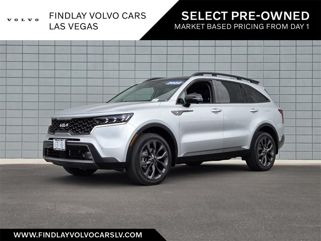 Findlay Volvo Cars Las Vegas proudly offers this Kia Sorento with 28008 miles. Sparkling Silver over Black, this Sorento was ordered with highly desirable factory features like: Active Cruise Control, 12 Speakers, 3.316 Axle Ratio, 3rd row seats: split-bench, 4-Wheel Disc Brakes, ABS brakes, Air Conditioning, Alloy wheels, AM/FM radio: SiriusXM, Apple CarPlay & Android Auto, Auto High-beam Headlights, Auto-dimming Rear-View mirror, Automatic temperature control, Brake assist, Bumpers: body-color, Cargo Net, Carpeted Floor Mats, Cross Bars X-Line, Delay-off headlights, Driver door bin, Driver vanity mirror, Dual front impact airbags, Dual front side impact airbags, Electronic Stability Control, Emergency communication system: UVO Link, Folding Cargo Tray, Four wheel independent suspension, Front anti-roll bar, Front Bucket Seats, Front Center Armrest, Front dual zone A/C, Front fog lights, Front reading lights, Fully automatic headlights, Heated & Ventilated Front Bucket Seats, Heated door mirrors, Heated front seats, Heated rear seats, Heated steering wheel, Illuminated entry, Knee airbag, Leather steering wheel, Low tire pressure warning, Memory seat, Mudguards, Navigation System, Occupant sensing airbag, Outside temperature display, Overhead airbag, Overhead console, Panic alarm, Passenger door bin, Passenger vanity mirror, Perforated Genuine Leather Seat Trim, Power door mirrors, Power driver seat, Power Liftgate, Power moonroof, Power passenger seat, Power steering, Power windows, Radio data system, Radio: AM/FM Bose Premium Audio System, Rear air conditioning, Rear anti-roll bar, Rear reading lights, Rear window defroster, Rear window wiper, Remote keyless entry, Roof rack: rails only, Security system, Smart Key w/ Push Button and Remote Start, Speed control, Speed-sensing steering, Split folding rear seat, Spoiler, Steering wheel mounted audio controls, Tachometer, Telescoping steering wheel, Tilt steering wheel, Traction control, Trip computer, Turn signal indicator mirrors, Variably intermittent wipers, Ventilated front seats, Wheel Locks, and Wheels: 8.5J x 20"" Matte Gray Alloy.The Findlay Volvo Difference At Findlay Volvo Cars Las Vegas, every pre-owned vehicle is held to uncompromising standards. Each model undergoes a rigorous multi-point mechanical and cosmetic inspection to ensure quality that rivals our Certified Pre-Owned Volvo program. We provide full transparency with a complimentary CARFAX report and a complete inspection summary. Whether you purchase new or pre-owned, you’ll enjoy the same luxury experience, personalized service, and long-term care that has made Findlay a trusted name in Las Vegas. Our Commitment When you choose Findlay Volvo Cars Las Vegas, you’re not just purchasing a vehicle—you’re joining a community built on trust, service excellence, and Scandinavian-inspired luxury.