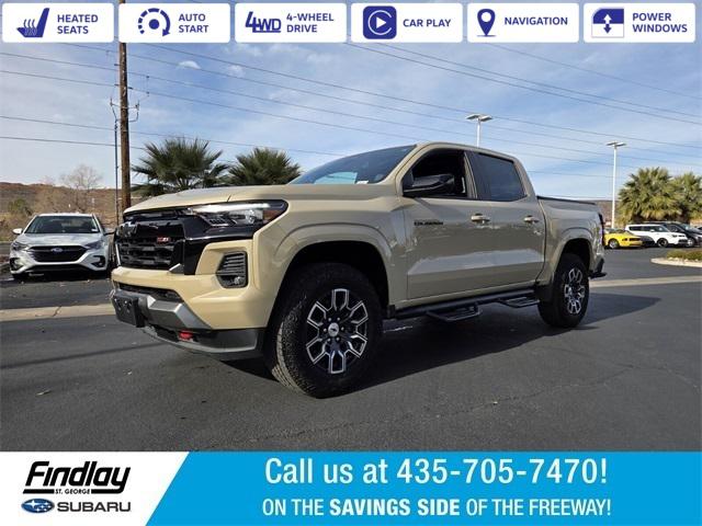Welcome to Findlay Subaru in St George on the Savings Side of the Freeway. Please contact us at the phone number listed above for any questions that you might have and to check the availability of this vehicle. This Chevrolet Colorado is equipped with the following options:Advanced Trailering Package (Trailering App), Heavy-Duty Trailering Package (Integrated Trailer Brake Controller), Preferred Equipment Group 4Z7 (Automatic Emergency Braking, Chevy Safety Assist, Electronic Automatic Cruise Control, Following Distance Indicator, Forward Collision Alert, Front Pedestrian & Bicyclist Braking, IntelliBeam Automatic High Beam On/Off, Lane Keep Assist w/Lane Departure Warning, and Rear-Window Electric Defogger), Z71 Convenience Package II (8-Way Power Driver Seat Adjuster, Dual-Zone Automatic Air Conditioning, EZ-Lift & Lower Tailgate, Heated Driver & Front Passenger Seats, Inside Rear-View Auto-Dimming Mirror, Power Driver Lumbar Control Seat Adjuster, Remote Vehicle Starter System, StowFlex Tailgate Storage Compartment, Tailgate Keyed Cylinder Lock, Tilt & Telescoping Steering Column, and Wireless Charging), 4WD, 2.7L Turbo High-Output Calibration (LPO), 220 Amp Generator, 3.42 Rear Axle Ratio, 4-Way Manual Passenger Seat Adjuster, 4-Wheel Disc Brakes, 6 Speakers, 6-Speaker Audio System Feature, 6-Way Manual Driver Seat Adjuster, ABS brakes, Air Conditioning, Alloy wheels, AM/FM radio: SiriusXM, Apple CarPlay/Android Auto, Auto High-beam Headlights, Black Nameplates (LPO), Brake assist, Bumpers: body-color, Cloth/Evotex Seat Trim, Compass, Delay-off headlights, Driver door bin, Driver vanity mirror, Dual front impact airbags, Dual front side impact airbags, Electronic Stability Control, Front anti-roll bar, Front Bucket Seats, Front Center Armrest, Front fog lights, Front License Plate Kit, Front reading lights, Front wheel independent suspension, Heated door mirrors, Illuminated entry, Low tire pressure warning, Navigation System, Occupant sensing airbag, Outside temperature display, Overhead airbag, Overhead console, Panic alarm, Passenger door bin, Passenger Seatback Map Pocket, Passenger vanity mirror, Power door mirrors, Power steering, Power windows, Radio data system, Radio: 11.3"" Diagonal Advanced Color LCD Display, Rear reading lights, Rear step bumper, Rear window defroster, Remote keyless entry, Security system, SiriusXM Radio, Speed control, Speed-sensing steering, Split folding rear seat, Steering Wheel Mounted Audio Controls, Steering wheel mounted audio controls, Tachometer, Tilt steering wheel, Traction control, Trip computer, Variably intermittent wipers, Wheels: 18"" x 8.5"" Android Dark Full Gloss Aluminum, and Wireless Phone Projection.
