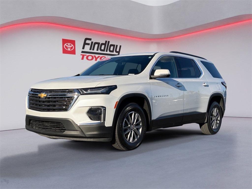 # 1 SELLING TOYOTA DEALERSHIP IN NEVADA. LARGEST INVENTORY OF NEW AND PRE-OWNED VEHICLES. JOHN BARR SAYS ""I WILL DO ANYTHING TO SELL YOU A CAR""2023 LT Chevrolet TraverseLooking for the best quality used cars near Las Vegas? Findlay Toyota of Henderson is your top destination. As the premier dealership in Nevada, we offer an extensive selection of top-notch pre-owned vehicles, ensuring you find the perfect car to fit your needs and budget. Conveniently located at 7733 Eastgate Rd in the Valley Automall, our dealership spans 12 1⁄2 acres and features a 145,000-square-foot facility, including Nevada’s only Master Certified Toyota Service Department. Our expert sales and financing teams are dedicated to providing a hassle-free buying experience, and our state-of-the-art service center is equipped to handle everything from routine maintenance to major repairs. Our multilingual staff speaks 14 languages, making us accessible to a diverse range of customers. Beyond exceptional service, we are committed to giving back to the Henderson community through initiatives like Toys for Tots and the Las Vegas Rescue Mission. Discover why Findlay Toyota of Henderson is the trusted choice for quality used cars and exceptional service. Visit us today and drive home in your dream car! This Chevrolet Traverse is equipped with the following equipment: Cargo Package (LPO) (Retractable Cargo Shade and Vertical Cargo Net (LPO)), Convenience & Driver Confidence Package (4.2"" Multi-Color Enhanced Driver Instrument Display, Heated Driver & Front Passenger Seats, Radio: Chevrolet Infotainment 3 Plus System, Rear Power Liftgate, Remote Start, SiriusXM w/360L, and Universal Home Remote), Front License Plate Bracket Mounting Package, Preferred Equipment Group 1LT, Rear Camera Mirror Package (HD Surround Vision, Rear Camera Mirror Washer, and Rear Pedestrian Alert), 2-Way Manual Front Passenger Seat Adjuster, 3.49 Axle Ratio, 3rd row seats: split-bench, 4-Wheel Disc Brakes, 6 Speakers, 6-Speaker Audio System Feature, 8-Way Power Driver Seat Adjuster, ABS brakes, Air Conditioning, Alloy wheels, AM/FM radio: SiriusXM, Apple CarPlay/Android Auto, Auto High-beam Headlights, Automatic temperature control, Black Roof Rails, Brake assist, Bumpers: body-color, Compass, Delay-off headlights, Driver door bin, Driver vanity mirror, Dual front impact airbags, Dual front side impact airbags, Electronic Stability Control, Emergency communication system, Exterior Parking Camera Rear, Four wheel independent suspension, Front anti-roll bar, Front Bucket Seats, Front Center Armrest, Front dual zone A/C, Front reading lights, Fully automatic headlights, Heated door mirrors, Illuminated entry, Leather steering wheel, Low tire pressure warning, Not Equipped w/Hood Insulator, Occupant sensing airbag, Outside temperature display, Overhead airbag, Overhead console, Panic alarm, Passenger door bin, Passenger vanity mirror, Power door mirrors, Power Driver Lumbar Control, Power driver seat, Power steering, Power windows, Premium Cloth Seat Trim, Radio data system, Radio: Chevrolet Infotainment System AM/FM Stereo, Rear air conditioning, Rear anti-roll bar, Rear reading lights, Rear window defroster, Rear window wiper, Remote keyless entry, Security system, SiriusXM Radio, Speed control, Speed-sensing steering, Spoiler, Steering wheel mounted audio controls, Tachometer, Telescoping steering wheel, Tilt steering wheel, Traction control, Trip computer, Turn signal indicator mirrors, Variably intermittent wipers, Voltmeter, and Wheels: 18"" Bright Silver-Painted Aluminum. ** This 2023 Chevrolet Traverse is equipped with 3.6L V6 SIDI VVT FWD**, ** and this Traverse is trimmed in Iridescent Pearl Tricoat with Jet Black interior**.