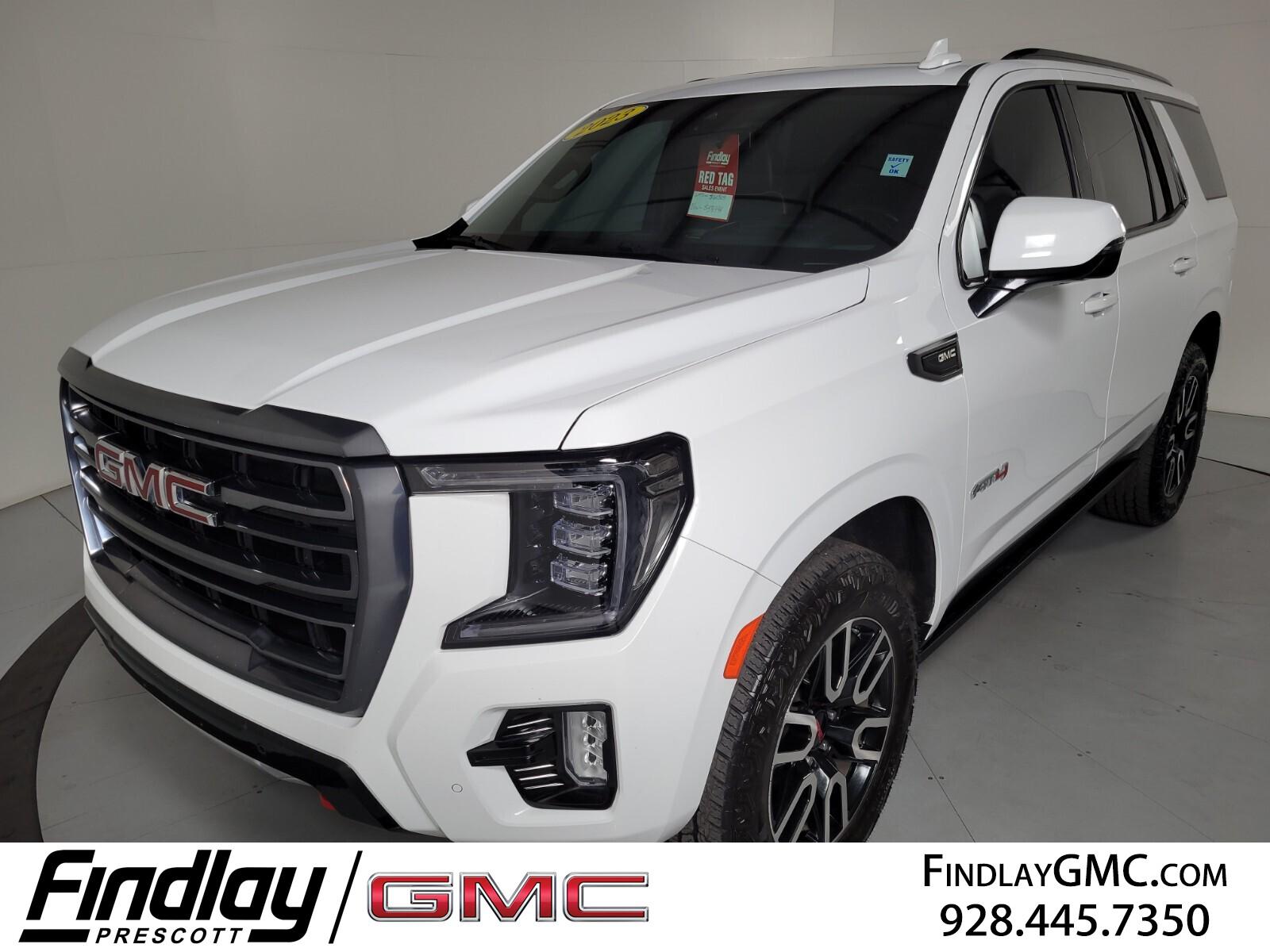 Welcome to Findlay GMC in Prescott, AZ. We have multiple locations with over 600 cars in stock. If you are looking for something specific that this Yukon doesn't have, please contact us directly. This GMC Yukon is equipped with the following options: AT4 Premium Plus Package (Dual-Pane Panoramic Power Sunroof and Power-Retractable Assist Steps), Max Trailering Package (Extra Capacity Cooling System), Premium Capability Package w/Active Response 4WD (Air Ride Adaptive Suspension and Electronic Limited Slip Differential (eLSD)), Technology Package (15'' Diagonal Multi-Color Head-Up Display, HD Surround Vision, and Rear Pedestrian Alert), License Plate Front Mounting Package, Preferred Equipment Group 4SB (2 Presets For Outside Rearview Mirrors, 3 Years of GMC Connected Services, 3 Years of OnStar Safety & Security, 3rd Row 60/40 Power-Folding Split-Bench Seat, Black Roof-Mounted Luggage Rack Side Rails, Bose 9-Speaker Stereo Audio System Feature, Bright Front & Rear Door Sill Plates, Front High-Approach Angle Fascia, Hands-Free Power Programmable Rear Liftgate, Heated & Ventilated Driver & Front Passenger Seats, Heated 2nd Row Outboard Position Seats, Heated Driver & Front Passenger Seats, Heated Steering Wheel, Heavy-Duty Air Filter, Hill Descent Control, Inside Rear-View Auto-Dimming Mirror, Outside Heated Power-Adjustable Mirrors, Power Release 2nd Row 60/40 Split-Folding Bench Seat, Power Tilt & Telescopic Steering Column, Red Horizontal-Mounted Recovery Hooks, Safety Alert Seat, Universal Home Remote, and Wireless Charging), GMC Certified Pre-Owned Certified, 4WD, 3 Years of OnStar Safety & Security (DISC), 3.23 Rear Axle Ratio, 3rd row seats: split-bench, 4-Wheel Disc Brakes, 9 Speakers, ABS brakes, Adaptive suspension, Air Conditioning, Alloy wheels, AM/FM radio: SiriusXM with 360L, AM/FM Stereo, Apple CarPlay/Android Auto, Auto High-beam Headlights, Auto-dimming door mirrors, Auto-dimming Rear-View mirror, Auto-leveling suspension, Automatic Emergency Braking,