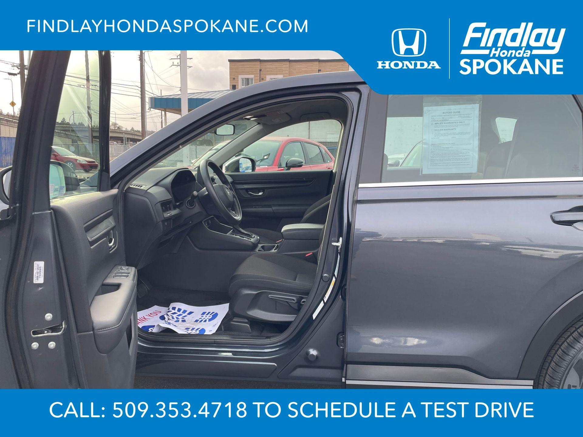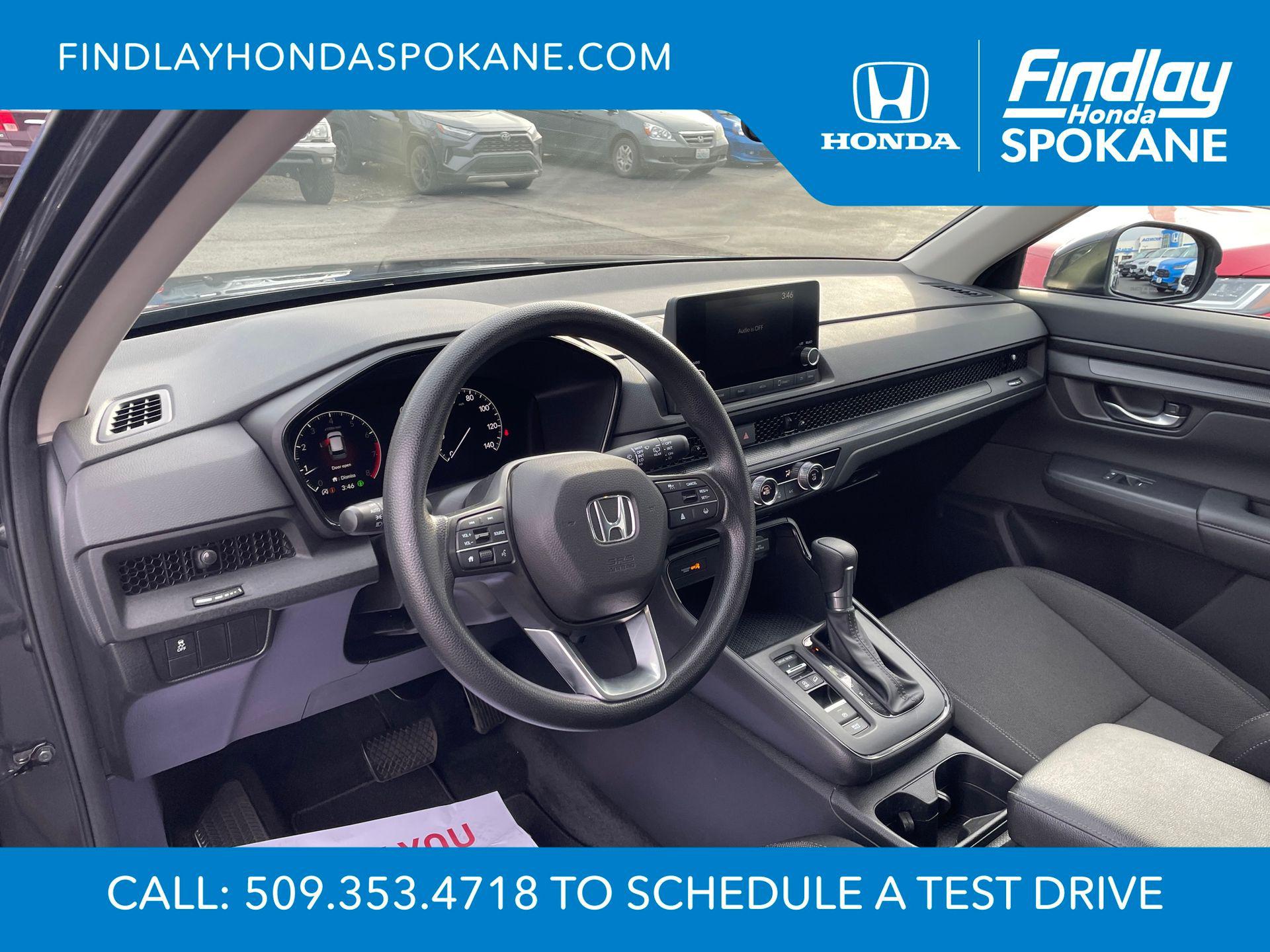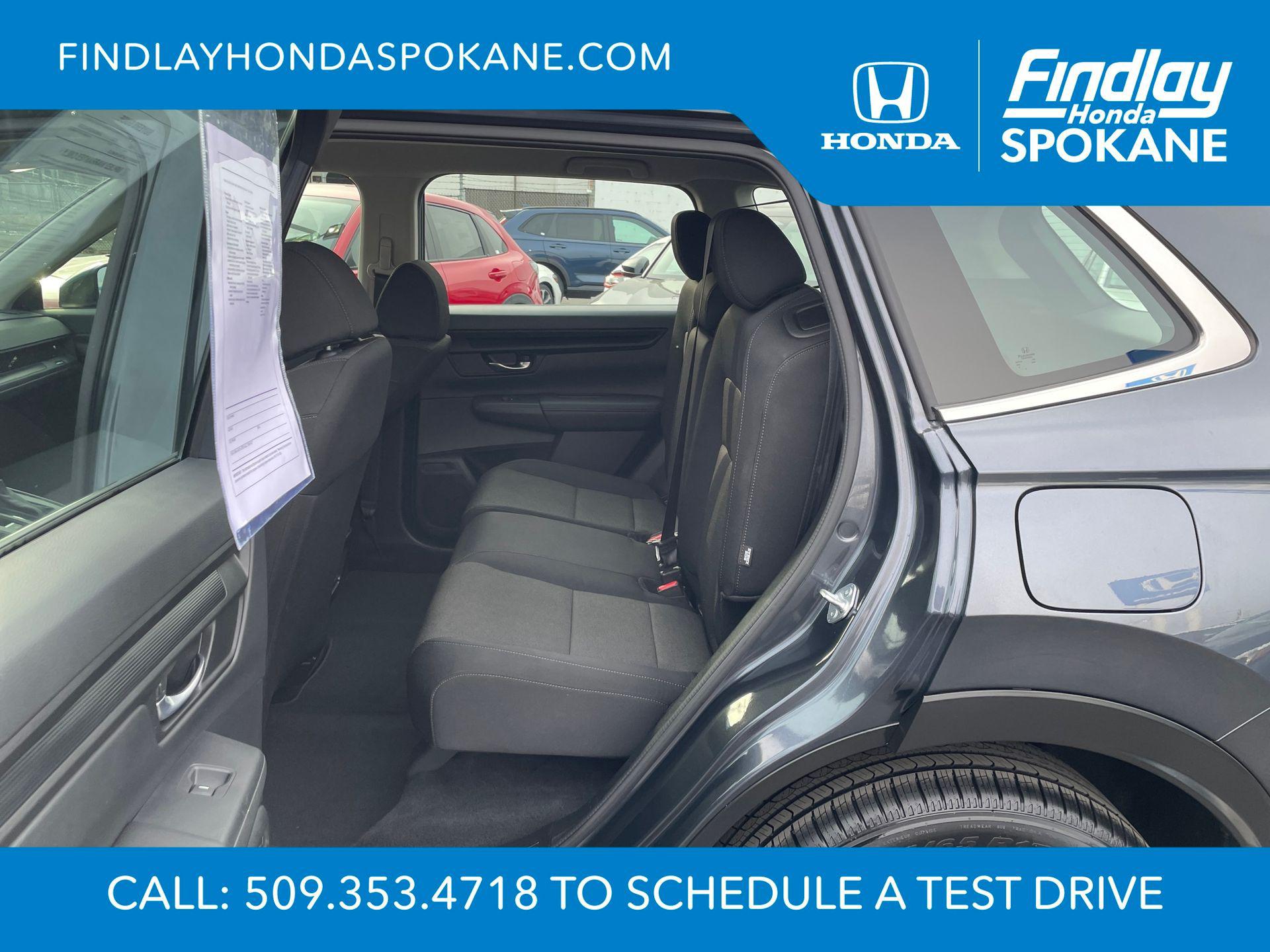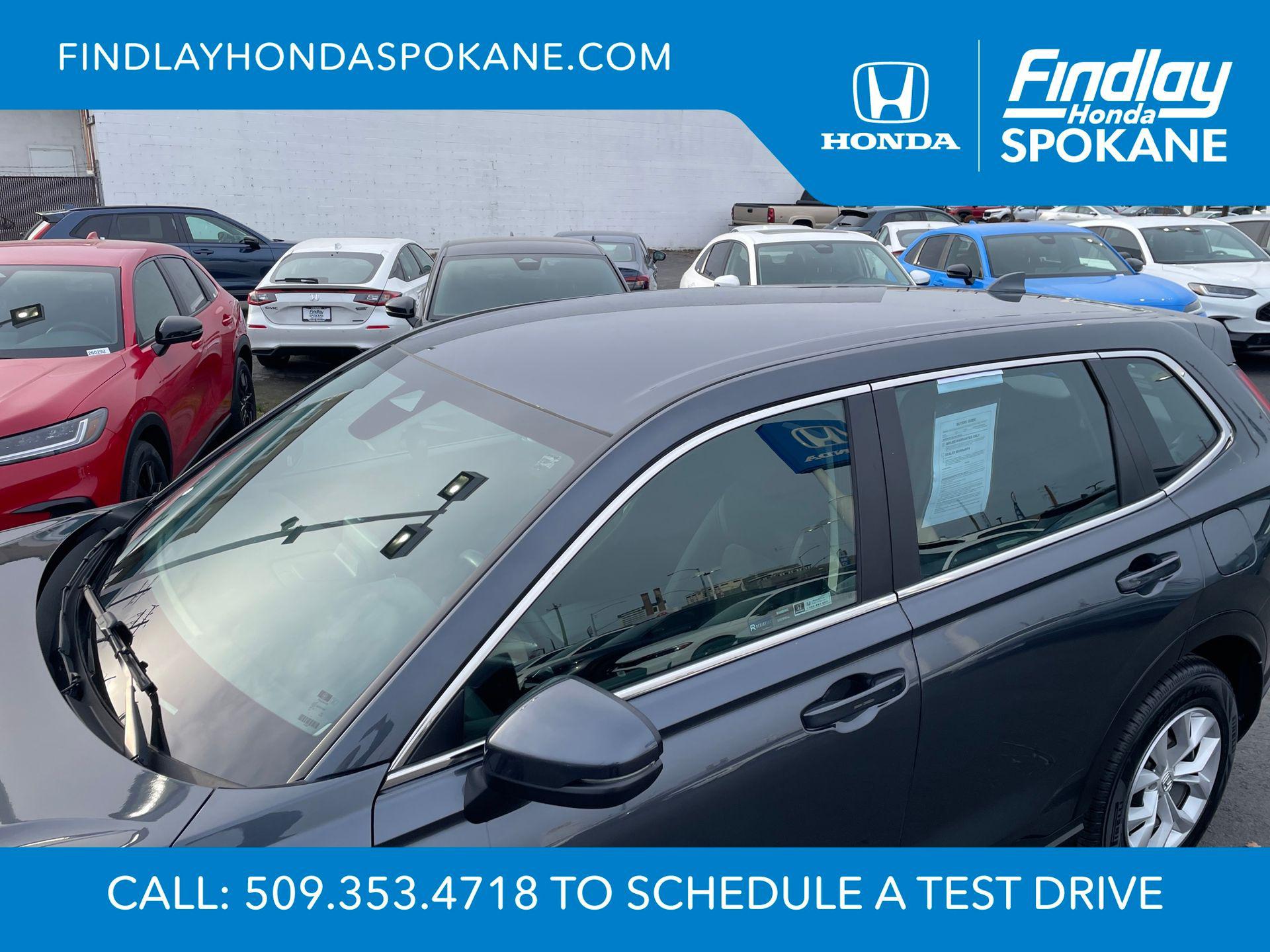 Meteorite Gray Metallic 2023 Honda CR-V LX AWD CVT 1.5L I4 DOHC 16VFriends, family, and neighbors have chosen us time and time again to be their dealer. Our simple and easy process, market aggressive pricing, and friendly knowledgeable staff are all reasons why. Come see for yourself why we are the top rated dealer in Spokane. Our process is designed to be easy, give you choices, and save you time. Our pressure free buying process allows you to see the quote you want. We give every customer multiple different monthly payments and down payments all on one sheet, so you can choose the one that best fits your budget. Come see how easy it is to purchase a car, truck, SUV from Findlay Honda Spokane. This Honda CR-V is equipped with these features: 4 Speakers, 4-Wheel Disc Brakes, 5.64 Axle Ratio, ABS brakes, Adaptive Cruise Control: Adaptive Cruise Control (ACC) with Low-Speed Follow, Air Conditioning, Apple CarPlay/Android Auto, Auto High-beam Headlights, Automatic temperature control, Brake assist, Bumpers: body-color, Cloth Seat Trim, Compass, Delay-off headlights, Driver door bin, Driver vanity mirror, Dual front impact airbags, Dual front side impact airbags, Electronic Stability Control, Exterior Parking Camera Rear, Four wheel independent suspension, Front anti-roll bar, Front Bucket Seats, Front Center Armrest, Front reading lights, Fully automatic headlights, Illuminated entry, Knee airbag, Low tire pressure warning, Occupant sensing airbag, Outside temperature display, Overhead airbag, Overhead console, Panic alarm, Passenger door bin, Passenger vanity mirror, Power door mirrors, Power steering, Power windows, Radio data system, Radio: 160-Watt AM/FM Audio System, Rear anti-roll bar, Rear reading lights, Rear seat center armrest, Rear side impact airbag, Rear window defroster, Rear window wiper, Remote keyless entry, Security system, Speed control, Speed-sensing steering, Speed-Sensitive Wipers, Split folding rear seat, Spoiler, Steering wheel mounted audio controls, Tachometer, Telescoping steering wheel, Tilt steering wheel, Traction control, Trip computer, Turn signal indicator mirrors, Variably intermittent wipers, and Wheels: 17"" Steel w/Covers.27/32 City/Highway MPGWhen shopping with Larry H Miller Downtown Dealerships you get the vehicle, you want. We carry one of the largest inventories in Eastern Washington or Idaho because we know you want to have a selection. When shopping for a pre-owned vehicle we have over 5000 vehicles to choose from in stock at one of our 60+ stores, and we are happy to get them here for you. Even if you choose not to purchase with us you will be provide with a written trade appraisal form. This value is guaranteed. This is because we have an unique appraisal process that allows us to have Larry H Miller central appraisal team put a value that represents the best number from our 60+ dealers.