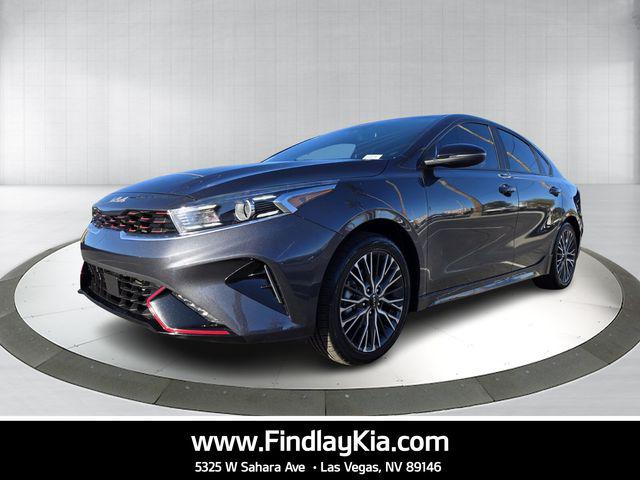 Welcome to Findlay Kia on Sahara Ave in Las Vegas. All of our vehicles are hand picked and inspected for your piece of mind. This Kia Forte is equipped with the following options: GT-Line Premium Package (Electronic Parking Brake (EPB), Forward Collision Avoidance-Assist - Cyclist, LED Interior Lighting, Navigation-Based Smart Cruise Control (NSCC), Power Sunroof, Radio: harman kardon Premium Audio, Smart Cruise Control w/Stop & Go, and Wireless Charging), GT-Line Sport Premium Package (10-Way Power Driver's Seat, Heated & Ventilated Front Seats, Rear AC Vent, Rear USB Charger, and SynTex Seat Trim), Kia Certified Pre-Owned Certified, 17"" x 7.0J Alloy Wheels, 4-Wheel Disc Brakes, 6 Speakers, ABS brakes, Air Conditioning, Alloy wheels, AM/FM radio: SiriusXM, Apple CarPlay & Android Auto, Auto High-beam Headlights, Automatic temperature control, Brake assist, Bumpers: body-color, Cloth & SynTex Seat Trim, Delay-off headlights, Driver door bin, Driver vanity mirror, Dual front impact airbags, Dual front side impact airbags, Electronic Stability Control, Emergency communication system, Exterior Parking Camera Rear, Front anti-roll bar, Front Bucket Seats, Front Center Armrest, Front dual zone A/C, Front fog lights, Front reading lights, Front wheel independent suspension, Fully automatic headlights, Heated door mirrors, Illuminated entry, Leather Shift Knob, Leather steering wheel, Low tire pressure warning, Navigation System, Occupant sensing airbag, Outside temperature display, Overhead airbag, Overhead console, Panic alarm, Passenger door bin, Passenger vanity mirror, Power door mirrors, Power steering, Power windows, Radio data system, Radio: 10.25"" Display Audio, Rear seat center armrest, Rear window defroster, Remote keyless entry, Security system, Speed control, Split folding rear seat, Spoiler, Sport steering wheel, Steering wheel mounted audio controls, Tachometer, Telescoping steering wheel, Tilt steering wheel, Traction control, Trip computer, Turn signal indicator mirrors, and Variably intermittent wipers.Certified. Gravity Gray 2023 Kia Forte GT-Line FWD CVT 2.0L I4 MPI28/39 City/Highway MPGKia Certified Pre-Owned Details: * Includes Rental Car and Trip Interruption Reimbursement. 3 month Sirius trial subscription * Transferable Warranty * Limited Warranty: 12 Month/12,000 Mile (whichever comes first) ""Platinum Coverage"" from certified purchase date * 165 Point Inspection * Powertrain Limited Warranty: 120 Month/100,000 Mile (whichever comes first) from original in-service date * Roadside Assistance * Vehicle History * Warranty Deductible: $50