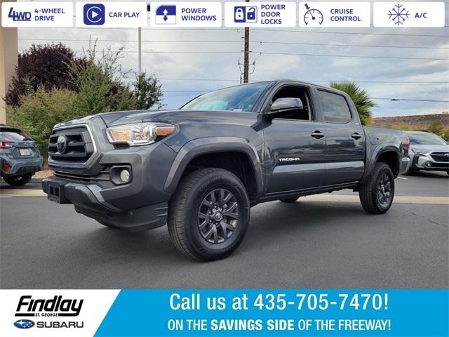 Welcome to Findlay Subaru in St George on the Savings Side of the Freeway. Please contact us at the phone number listed above for any questions that you might have and to check the availability of this vehicle. This Toyota Tacoma is equipped with the following options:4WD, 6 Speakers, ABS brakes, Air Conditioning, Alloy wheels, AM/FM radio: SiriusXM, Anti-whiplash front head restraints, Apple CarPlay/Android Auto, Auto High-beam Headlights, Auto-dimming Rear-View mirror, Automatic temperature control, Axle Ratio: 3.91, Black Headlamp Bezel, Body Color Overfenders, Brake assist, Bumpers: body-color, Charcoal Grille w/Chrome Surround, Color-Keyed Overfenders, Daytime Running Lamps, Driver door bin, Dual front impact airbags, Dual front side impact airbags, Electronic Stability Control, Emergency communication system: Safety Connect (1-year trial), Exterior Parking Camera Rear, Fabric Seat Trim, Front anti-roll bar, Front Bucket Seats, Front Center Armrest, Front Door Smart Key System w/Push Button Start, Front dual zone A/C, Front Fog & Driving Lamp, Front fog lights, Front reading lights, Front Seats, Front wheel independent suspension, Heated door mirrors, Illuminated entry, Knee airbag, Low tire pressure warning, Occupant sensing airbag, Outside temperature display, Overhead airbag, Overhead console, Panic alarm, Passenger door bin, Power door mirrors, Power driver seat, Power Sliding Rear Window w/Privacy Glass, Power steering, Power windows, Radio: Audio, Rear step bumper, Remote keyless entry, Speed control, Speed-sensing steering, Split folding rear seat, Steering wheel mounted audio controls, Tachometer, Telescoping steering wheel, Tilt steering wheel, Traction control, Trip computer, Variably intermittent wipers, and Wheels: 16"" Dark Gray Alloy.