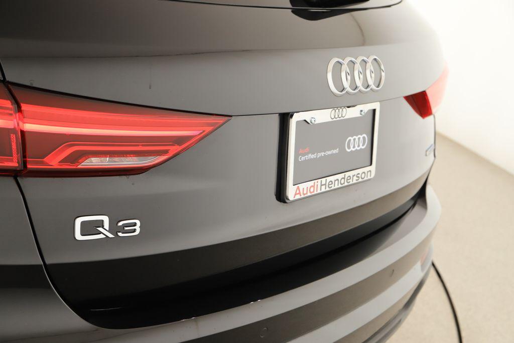 At Audi Henderson, our goal is to provide our customers with a Dealership experience that is unmatched in the Automotive Industry. Whether it's sales or service, parts or accessories, it is our goal to do our best for you on each and every visit. We believe Audi vehicles are some of the finest on the road today and our passion for what we do is obvious from the moment you set foot in our store. We've refined our processes, continually train our staff and take pride in what we do in effort to redefine the typical car-buying experience. Visit Audi Henderson today and experience the difference.CARFAX One-Owner.Certified. Audi Certified pre-owned Details: * 125+ Point Inspection * Warranty Deductible: $0 * Vehicle History * Certified pre-owned Limited Warranty: For all CPO sales on or after 8/1/23, if New Vehicle Limited Warranty (NVLW) coverage remains at time of CPO purchase, CPO Limited Warranty Coverage commences upon expiration of NVLW and continues for a period of 1 year or 20,000 miles, whichever occurs first. If NVLW coverage has expired at time of CPO purchase, CPO Limited Warranty coverage commences at time of purchase and continues for 1 year or 20,000 miles, whichever occurs first. Roadside Assistance for 1 year with unlimited miles, whichever occurs first. Effective 8/1/23 onward, private party transfers no longer accepted, eligible for previous CPO customers with sale dates prior to 8/1/23 to utilize if they so choose. * Roadside AssistanceThis Audi Q3 is equipped with the following features: Convenience Package (Alarm w/Motion Sensor, Audi Advanced Key, Auto-Dimming Power-Folding Exterior Mirrors, Auto-Dimming Rear-View Mirror, Driver Seat Memory, Garage Door Opener (HomeLink), SiriusXM, and Wireless Phone Charging Pad), LED Interior Lighting Package, Audi Certified pre-owned Certified, Automatic temperature control, Exterior Parking Camera Rear, Front Bucket Seats, Front Center Armrest, Front dual zone A/C, Heated front seats, Leather Seating Surfaces, Power Liftgate, Power moonroof: Panoramic, Radio data system, Remote keyless entry, Speed control, and Wheels: 18"" 5-V-Spoke-S Design.2.0L 4-Cylinder TFSI quattro 8-Speed Automatic with Tiptronic*Full Safety Inspection, *All Scheduled Service Up to Date, BACKUP CAMERA, BLUETOOTH, HOMELINK, SUNROOF/MOONROOF, HEAT PACKAGE, LEATHER SEATS, CLIMATE PACKAGE, PREMIUM AUDIO PACKAGE, Alarm w/Motion Sensor, Audi Advanced Key, Auto-Dimming Power-Folding Exterior Mirrors, Auto-Dimming Rear-View Mirror, Automatic temperature control, Convenience Package, Driver Seat Memory, Exterior Parking Camera Rear, Front Bucket Seats, Front Center Armrest, Front dual zone A/C, Garage Door Opener (HomeLink), Heated front seats, Leather Seating Surfaces, LED Interior Lighting Package, Power Liftgate, Power moonroof: Panoramic, Radio data system, Remote keyless entry, SiriusXM, Speed control, Wheels: 18"" 5-V-Spoke-S Design, Wireless Phone Charging Pad.