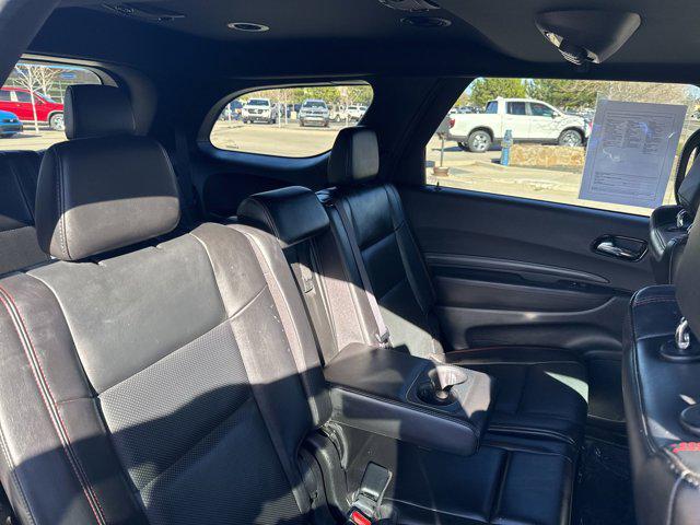 CARFAX One-Owner. Clean CARFAX. DB Black Clearcoat 2024 Dodge Durango GT Plus 4D Sport Utility AWD 8-Speed Automatic 3.6L V6 24V VVTAWD, 3.45 Rear Axle Ratio, 3rd row seats: split-bench, 4-Wheel Disc Brakes, 6 Speakers, ABS brakes, Air Conditioning, Alloy wheels, AM/FM radio: SiriusXM, Apple CarPlay, Apple CarPlay/Android Auto, Auto-dimming Rear-View mirror, Automatic temperature control, Brake assist, Bumpers: body-color, Cloth Bucket Seats w/Shift Insert, Compass, Delay-off headlights, Driver door bin, Driver vanity mirror, Dual front impact airbags, Dual front side impact airbags, Electronic Stability Control, Exterior Mirrors w/Heating Element, Four wheel independent suspension, Front anti-roll bar, Front Bucket Seats, Front Center Armrest w/Storage, Front dual zone A/C, Front reading lights, Fully automatic headlights, Garage door transmitter, Gloss Black Exterior Mirrors, Google Android Auto, GPS Antenna Input, Heated door mirrors, Heated front seats, Heated steering wheel, Illuminated entry, Integrated Center Stack Radio, Integrated Voice Command w/Bluetooth, Knee airbag, Leather steering wheel, Low tire pressure warning, Occupant sensing airbag, Outside temperature display, Overhead airbag, Overhead console, Panic alarm, ParkView Rear Back-Up Camera, Passenger door bin, Passenger vanity mirror, Power door mirrors, Power driver seat, Power Liftgate, Power steering, Power windows, Radio data system, Radio: Uconnect 4 w/8.4" Display, Rear air conditioning, Rear anti-roll bar, Rear reading lights, Rear seat center armrest, Rear window defroster, Rear window wiper, Red Accent Stitching, Remote keyless entry, Speed control, Speed-sensing steering, Speed-Sensitive Wipers, Split folding rear seat, Spoiler, Sport steering wheel, Steering wheel mounted audio controls, Tachometer, Telescoping steering wheel, Tilt steering wheel, Traction control, Trip computer, USB Host Flip, Variably intermittent wipers, Voltmeter, Wheels: 20" x 8.0" Fine Silver, AWD.
