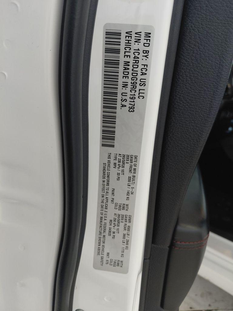 CARFAX One-Owner.Certified. White Knuckle Clearcoat 2024 Dodge Durango GT Plus 4D Sport Utility AWD 8-Speed Automatic 3.6L V6 24V VVTFCA US LLC Certified Pre-Owned Details: * Limited Warranty: 3 Month/3,000 Mile (whichever comes first) after new car warranty expires or from certified purchase date * Vehicle History * 125 Point Inspection * Roadside Assistance * Transferable Warranty * Warranty Deductible: $100 * Powertrain Limited Warranty: 84 Month/100,000 Mile (whichever comes first) from original in-service date * Vehicles Up to 75,000 Miles and/or 5 Model Years. 24-Hour Towing & Roadside Assistance, Car Rental Allowance, CARFAX® Vehicle History ReportTM and an Introductory 3-month Subscription to SiriusXM® Satellite Radio & Certified Warranty UpgradesThis Dodge Durango is equipped with the following features: Quick Order Package 2BG GT Plus (1-Year Trial (Registration Required), 10.1"" Touchscreen Display, 115V Auxiliary Power Outlet, 180 Amp Alternator, 4G LTE Wi-Fi Hot Spot, 7 & 4 Pin Wiring Harness, Adaptive Cruise Control w/Stop, Apple CarPlay, Auto-Dimming Exterior Driver Mirror, Black Roof Rails, Blind Spot w/Trailer Detection, Class IV Receiver Hitch, Connected Travel & Traffic Services, Disassociated Touchscreen Display, Dual Remote USB Port - Charge Only, Exterior Mirrors w/Heating Element, Exterior Mirrors w/Memory, Exterior Mirrors w/Supplemental Signals, Floor Console w/Leather Armrest, For Details Visit DriveUconnect.com, Full Speed Forward Collision Warning Plus, Global Telematics Box Module (TBM), Gloss Black Exterior Mirrors, Google Android Auto, GPS Antenna Input, GPS Navigation, HD Radio, Heated Second Row Seats, Heavy-Duty Engine Cooling, Integrated Center Stack Radio, Integrated Roof Rail Crossbars, Integrated Voice Command w/Bluetooth, Leather Trimmed Bucket Seats, Leather Wrapped Door Panels, LED Auxiliary Low Beam & Turn Signal, Power 6x9 Multi-Function Foldaway Mirrors, Power 8-Way Driver Memory 8-Way Passenger Seats, Power Driver/Passenger 4-Way Lumbar Adjust, Power Sunroof, Power Tilt & Telescopic Steering Column, Radio: Uconnect 5 Nav w/10.1"" Display, Radio/Driver Seat/Mirrors Memory, Rear Load Leveling Suspension, Red Accent Stitching, SiriusXM Guardian - Included Trial (B), SiriusXM w/360L, Trailer Brake Control, USB Host Flip, and Ventilated Front Seats), 3.45 Rear Axle Ratio, 3rd row seats: split-bench, 4-Wheel Disc Brakes, 6 Speakers, ABS brakes, Air Conditioning, Alloy wheels, AM/FM radio: SiriusXM, Apple CarPlay/Android Auto, Auto-dimming Rear-View mirror, Automatic temperature control, Brake assist, Bumpers: body-color, Cloth Bucket Seats w/Shift Insert, Compass, Delay-off headlights, Driver door bin, Driver vanity mirror, Dual front impact airbags, Dual front side impact airbags, Electronic Stability Control, Four wheel independent suspension, Front anti-roll bar, Front Bucket Seats, Front Center Armrest w/Storage, Front dual zone A/C, Front License Plate Bracket, Front reading lights, Fully automatic headlights, Garage door transmitter, Heated door mirrors, Heated front seats, Heated steering wheel, Illuminated entry, Knee airbag, Leather steering wheel, Low tire pressure warning, Occupant sensing airbag, Outside temperature display, Overhead airbag, Overhead console, Panic alarm, ParkView Rear Back-Up Camera, Passenger door bin, Passenger vanity mirror, Power door mirrors, Power driver seat, Power Liftgate, Power steering, Power windows, Radio data system, Radio: Uconnect 4 w/8.4"" Display, Rear air conditioning, Rear anti-roll bar, Rear reading lights, Rear seat center armrest, Rear window defroster, Rear window wiper, Remote keyless entry, Speed control, Speed-sensing steering, Speed-Sensitive Wipers, Split folding rear seat, Spoiler, Sport steering wheel, Steering wheel mounted audio controls, Tachometer, Telescoping steering wheel, Tilt steering wheel, Traction control, Trip computer, Variably intermittent wipers, Voltmeter, and Wheels: 20"" x 8.0"" Fine Silve