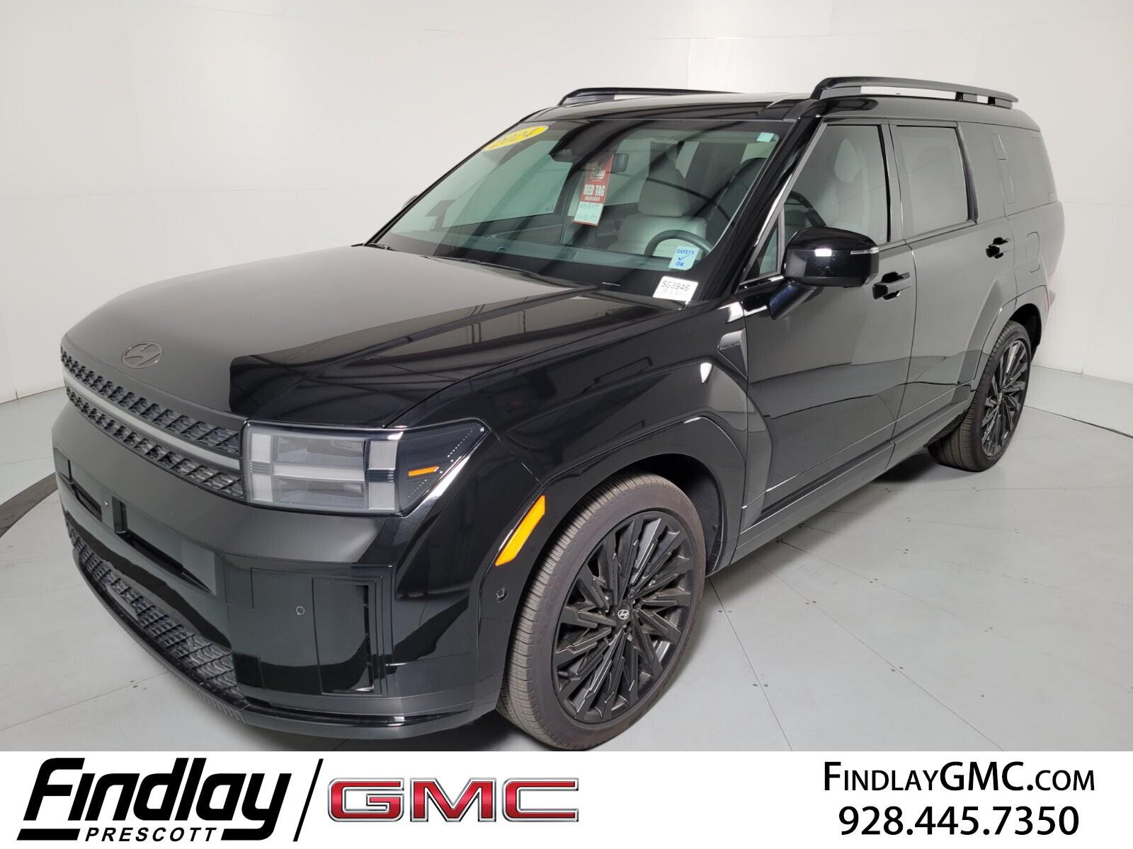 Welcome to Findlay GMC in Prescott, AZ. Findlay Prescott is once again moving forward with the Red Tag Event starting on the 1st thru 16th of November. We have multiple locations with over 600 cars in stock. If you are looking for something specific that this Santa Fe doesn't have, please contact us directly. This Hyundai Santa Fe is equipped with the following options: Option Group 01, Gray Leather, 12 Speakers, 3rd row seats: bench, 4-Wheel Disc Brakes, ABS brakes, Air Conditioning, All Season Fitted Liners, Alloy wheels, AM/FM radio: SiriusXM, Apple CarPlay & Android Auto, Auto High-beam Headlights, Auto-dimming Rear-View mirror, Automatic temperature control, Axle Ratio: 3.316, Brake assist, Bumpers: body-color, Carpeted Floor Mats, Delay-off headlights, Driver door bin, Driver vanity mirror, Dual front impact airbags, Dual front side impact airbags, Electronic Stability Control, Emergency communication system, Exterior Parking Camera Rear, First Aid Kit, Four wheel independent suspension, Front anti-roll bar, Front Bucket Seats, Front Center Armrest, Front dual zone A/C, Front reading lights, Fully automatic headlights, Garage door transmitter: HomeLink, Heads-Up Display, Heated & Ventilated Front Bucket Seats, Heated door mirrors, Heated front seats, Heated rear seats, Heated steering wheel, Illuminated entry, Knee airbag, Leather steering wheel, Low tire pressure warning, Memory seat, Navigation System, Occupant sensing airbag, Outside temperature display, Overhead airbag, Overhead console, Panic alarm, Passenger door bin, Passenger vanity mirror, Power door mirrors, Power driver seat, Power Liftgate, Power moonroof, Power passenger seat, Power steering, Power windows, Quilted Premium Nappa Leather Seat Trim, Radio: AM/FM/HD Bose Premium Audio System, Rain sensing wipers, Rear anti-roll bar, Rear side impact airbag, Rear window defroster, Rear window wiper, Remote keyless entry, Security system, Speed control, Speed-sensing steering, Split folding rear seat,