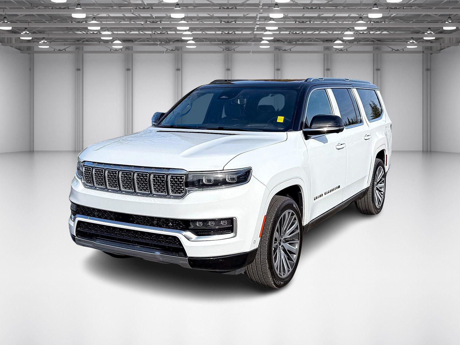 Welcome to Land Rover Reno. All of our preowned vehicles are hand picked and inspected for your peace of mind. Please contact us directly @ 775-332-4000 or email direct to jlrassistance@findlayauto.com This Jeep Grand Wagoneer L is equipped with the following options and extra equipment: Quick Order Package 28W, Two Tone Paint Group, 3rd row seats: bench, 4-Wheel Disc Brakes, ABS brakes, Adjustable pedals, Air Conditioning, Alloy wheels, AM/FM radio: SiriusXM with 360L, Anti-whiplash front head restraints, Apple CarPlay/Android Auto, Audio memory, Auto High-beam Headlights, Auto-dimming door mirrors, Auto-dimming Rear-View mirror, Auto-leveling suspension, Automatic temperature control, Brake assist, Bumpers: body-color, Compass, Delay-off headlights, Driver door bin, Driver vanity mirror, Driver's Seat Mounted Armrest, Dual front impact airbags, Dual front side impact airbags, Electronic Stability Control, Emergency communication system, Four wheel independent suspension, Front anti-roll bar, Front Bucket Seats, Front Center Armrest w/Storage, Front dual zone A/C, Front fog lights, Front reading lights, Fully automatic headlights, Garage door transmitter, Genuine wood console insert, Genuine wood dashboard insert, Genuine wood door panel insert, Heads-Up Display, Heated door mirrors, Heated front seats, Heated rear seats, Heated steering wheel, Illuminated entry, Knee airbag, Leather steering wheel, Low tire pressure warning, Memory seat, Navigation System, Night vision lights, Normal Duty Suspension, Occupant sensing airbag, Outside temperature display, Overhead airbag, Overhead console, Panic alarm, Passenger door bin, Passenger seat mounted armrest, Passenger vanity mirror, Pedal memory, Power adjustable front head restraints, Power door mirrors, Power driver seat, Power Liftgate, Power moonroof, Power passenger seat, Power steering, Power windows, Premium Leather Trimmed Bucket Seats, Radio data system, Radio: Uconnect 5 Nav w/12.0"" Display, Rain sensing wipers, Rear air conditioning, Rear anti-roll bar, Rear dual zone A/C, Rear reading lights, Rear seat center armrest, Rear window defroster, Rear window wiper, Reclining 3rd row seat, Remote keyless entry, Roof rack, Security system, Speed control, Speed-sensing steering, Speed-Sensitive Wipers, Split folding rear seat, Steering wheel memory, Steering wheel mounted audio controls, Tachometer, Telescoping steering wheel, Tilt steering wheel, Traction control, Trip computer, Turn signal indicator mirrors, Variably intermittent wipers, Ventilated front seats, Ventilated rear seats, Voltmeter, and Wheels: 22"" x 9.0"" Premium 4 AluminuM.Clean CARFAX. CARFAX One-Owner.4WD 8-Speed Automatic 3.0L I6