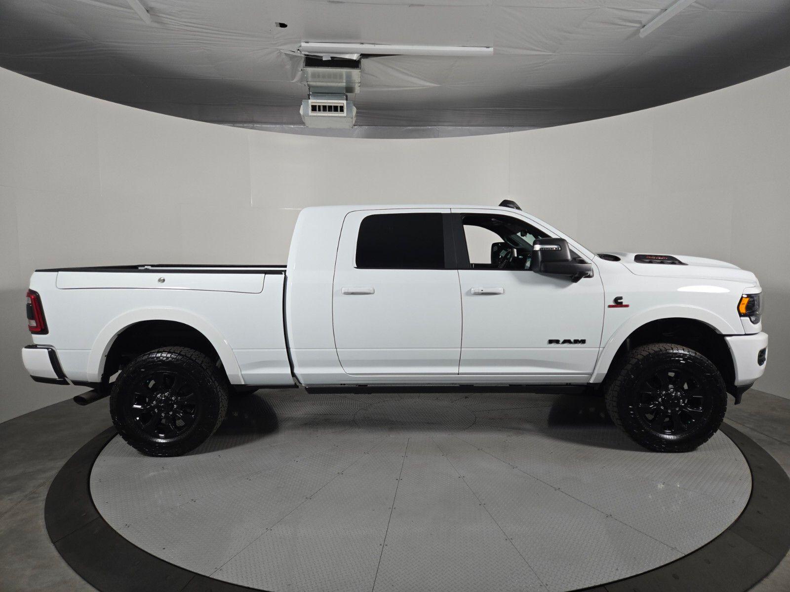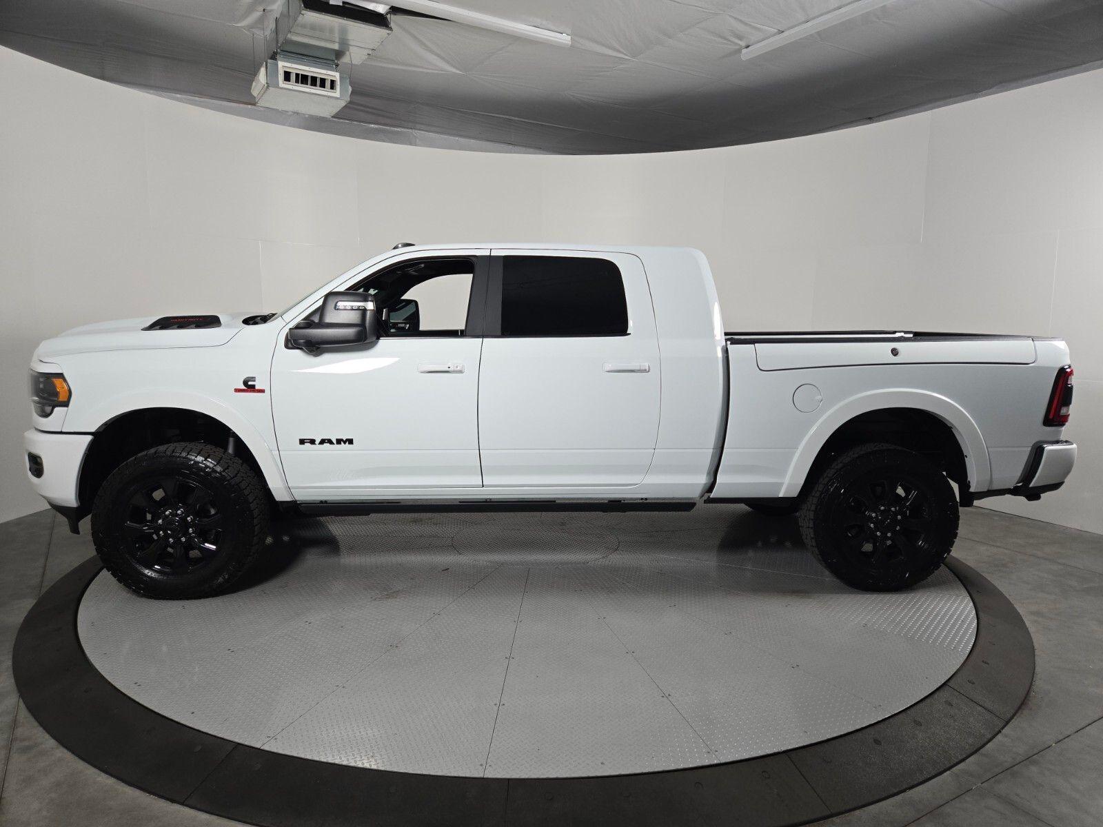 Elevate your driving experience with the 2024 Ram 3500 Limited Night Mega Cab. This powerhouse of a truck is designed to conquer the road and exceed your expectations.- Cummins 6.7L I6 Turbodiesel engine with 6-speed automatic transmission and 4WD- Impressive 17-speaker harman/kardon premium sound system- Uconnect 5 navigation system with 12"" touchscreen display- Adaptive cruise control with stop-and-go functionality- Surround view camera system for enhanced visibility- Trailer reverse guidance and trailer tire pressure monitoring system- RamBox cargo management system for secure storageThe Limited Night Edition adds a touch of sophistication with its bold, blacked-out exterior accents, including the grille, headlamp bezels, and tailgate badge. The sport performance hood and 20-inch black aluminum wheels further enhance the aggressive, yet refined, styling.Inside, the cabin is a haven of luxury and technology. Sink into the comfortable, heated and ventilated leather seats, and let the dual-zone automatic climate control keep you and your passengers cozy. The digital rearview mirror and 12-inch touchscreen display put essential information and controls at your fingertips.Towing and hauling capabilities are equally impressive, with features like the 220-amp alternator, dual 440-amp alternators, and MOPAR spray-in bedliner. The Tow-Mode Digital Rearview Mirror Package and Trailer Reverse Guidance system make maneuvering your trailer a breeze.Whether you're tackling tough terrain, hauling heavy loads, or simply enjoying the open road, the 2024 Ram 3500 Limited Night Mega Cab is the ultimate companion. Experience the power, technology, and sophistication that set this truck apart. Visit our showroom today and let us demonstrate why this is the perfect vehicle to elevate your driving experience.