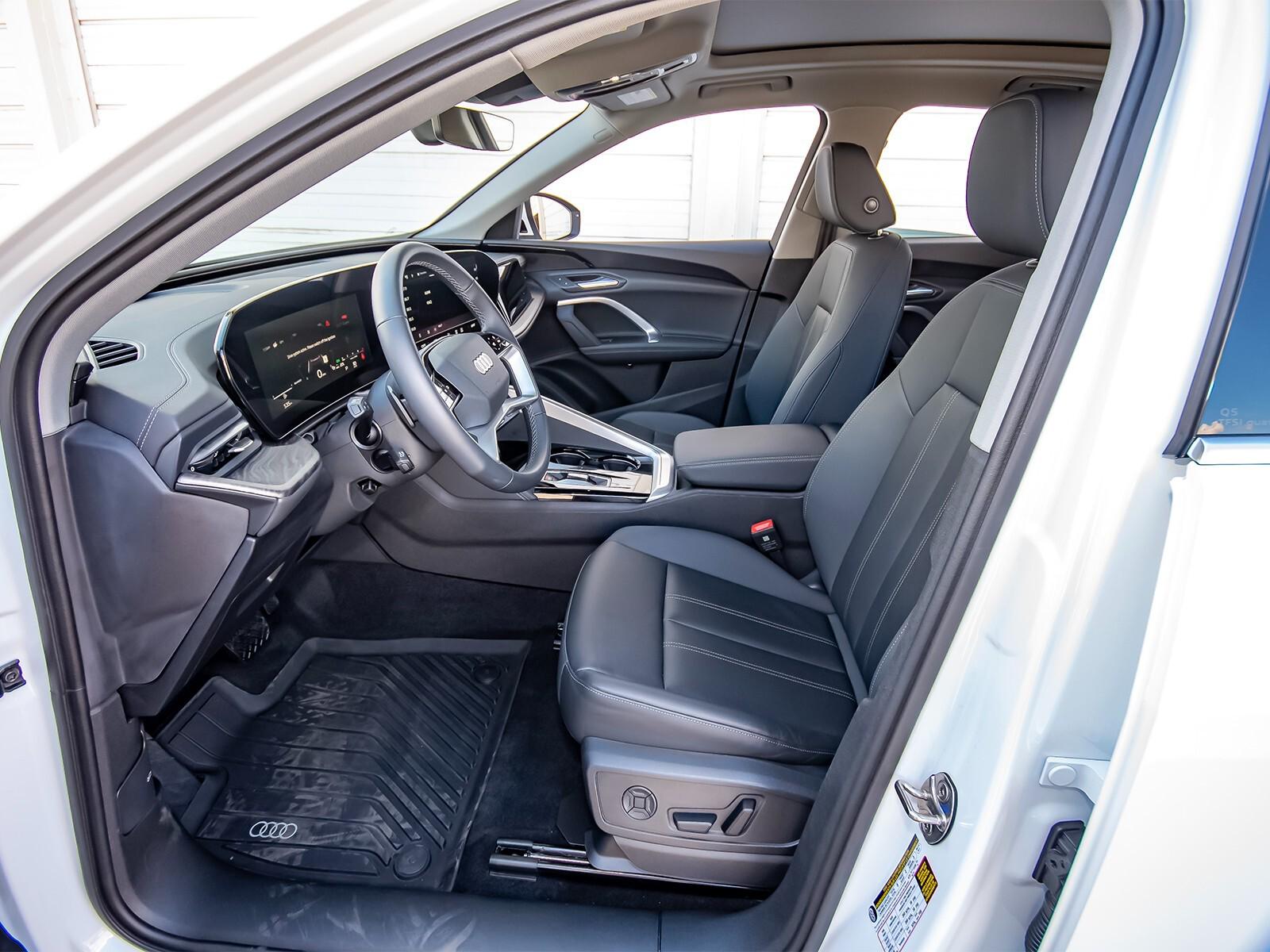 Black Leather, ABS brakes, Alloy wheels, Compass, Electronic Stability Control, Front dual zone A/C, Heated door mirrors, Heated Front Bucket Seats, Heated front seats, Illuminated entry, Low tire pressure warning, Navigation System, Power Liftgate, Remote keyless entry, Traction control. 2025 Audi Q5 2.0T Premium Plus quattro Clean CARFAX. White 2.0T Premium Plus quattro quattro 7-Speed Automatic S tronic 2.0L 4-Cylinder TFSI CARFAX One-Owner.