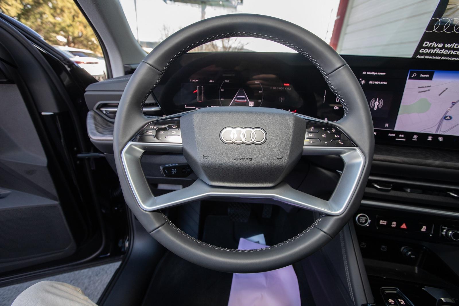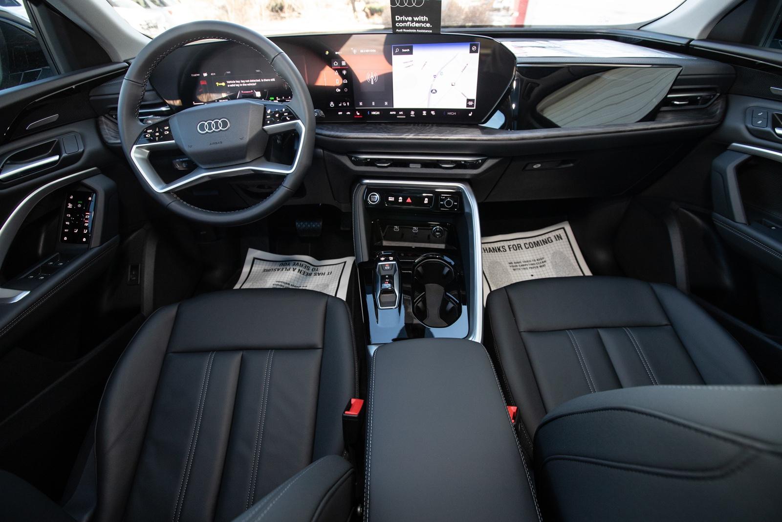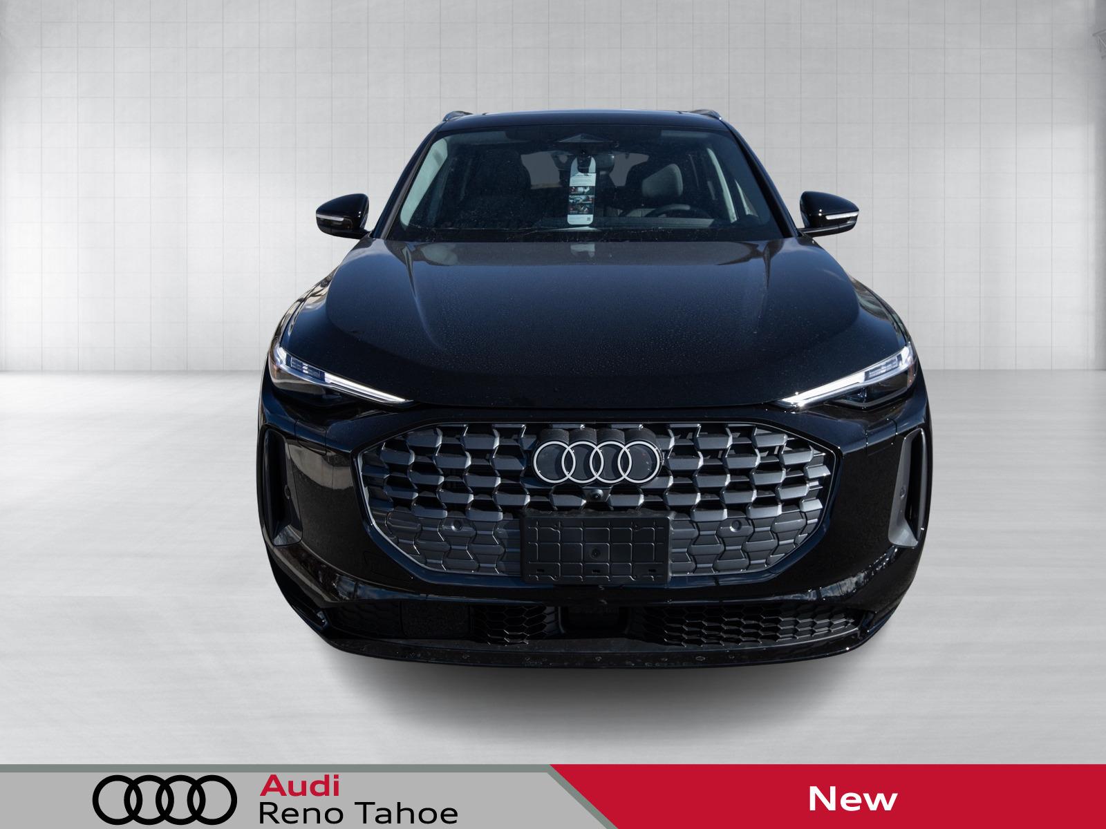 Mythos Black Metallic 2025 Audi All-new Q5 2.0T Premium Plus quattro quattro 7-Speed Automatic S tronic 2.0L 4-Cylinder TFSI 10 Speakers, 20'' Wheel Package with 5-Arm Design, 4-Wheel Disc Brakes, ABS brakes, Adaptive Cruise Assist, Air Conditioning, Alloy wheels, AM/FM radio: SiriusXM w/360L, Animation For Headlights and Taillights, Audi Beam-Rings, Audi Cargo Box, Audi Guard Wheel Lock Kit, Auto High-beam Headlights, Auto tilt-away steering wheel, Auto-dimming door mirrors, Auto-dimming Rear-View mirror, Automatic temperature control, Bang & Olufsen Sound System with 3D Sound, Brake assist, Bumpers: body-color, Compass, Delay-off headlights, Driver door bin, Driver vanity mirror, Dual front impact airbags, Dual front side impact airbags, Dynamic Interaction Light, Electronic Stability Control, Emergency communication system: Audi connect CARE, Exterior Parking Camera Rear, Four wheel independent suspension, Front anti-roll bar, Front Bucket Seats, Front Center Armrest, Front dual zone A/C, Front fog lights, Front reading lights, Garage door transmitter: HomeLink, Genuine wood console insert, Genuine wood dashboard insert, Genuine wood door panel insert, Head-Up Display, Headlight Washers, Heated door mirrors, Heated Front Bucket Seats, Heated front seats, Heated Steering Wheel with Hands-on Detection, Illuminated entry, Leather Seating Surfaces, Leather steering wheel, LED Headlights Plus with Digital DRL, LED Interior Lighting Pro Package, Low tire pressure warning, Memory seat, Navigation system: Audi Navigation Plus, Occupant sensing airbag, Outside temperature display, Overhead airbag, Overhead console, Panic alarm, Panoramic Sunroof, Passenger door bin, Passenger vanity mirror, Power door mirrors, Power driver seat, Power Liftgate, Power passenger seat, Power steering, Power windows, Premium Plus, Privacy Trunk Cover, Radio data system, Radio: MMI Navigation Plus, Rain sensing wipers, Rear air conditioning, Rear anti-roll bar, Rear fog lights, Rear reading li