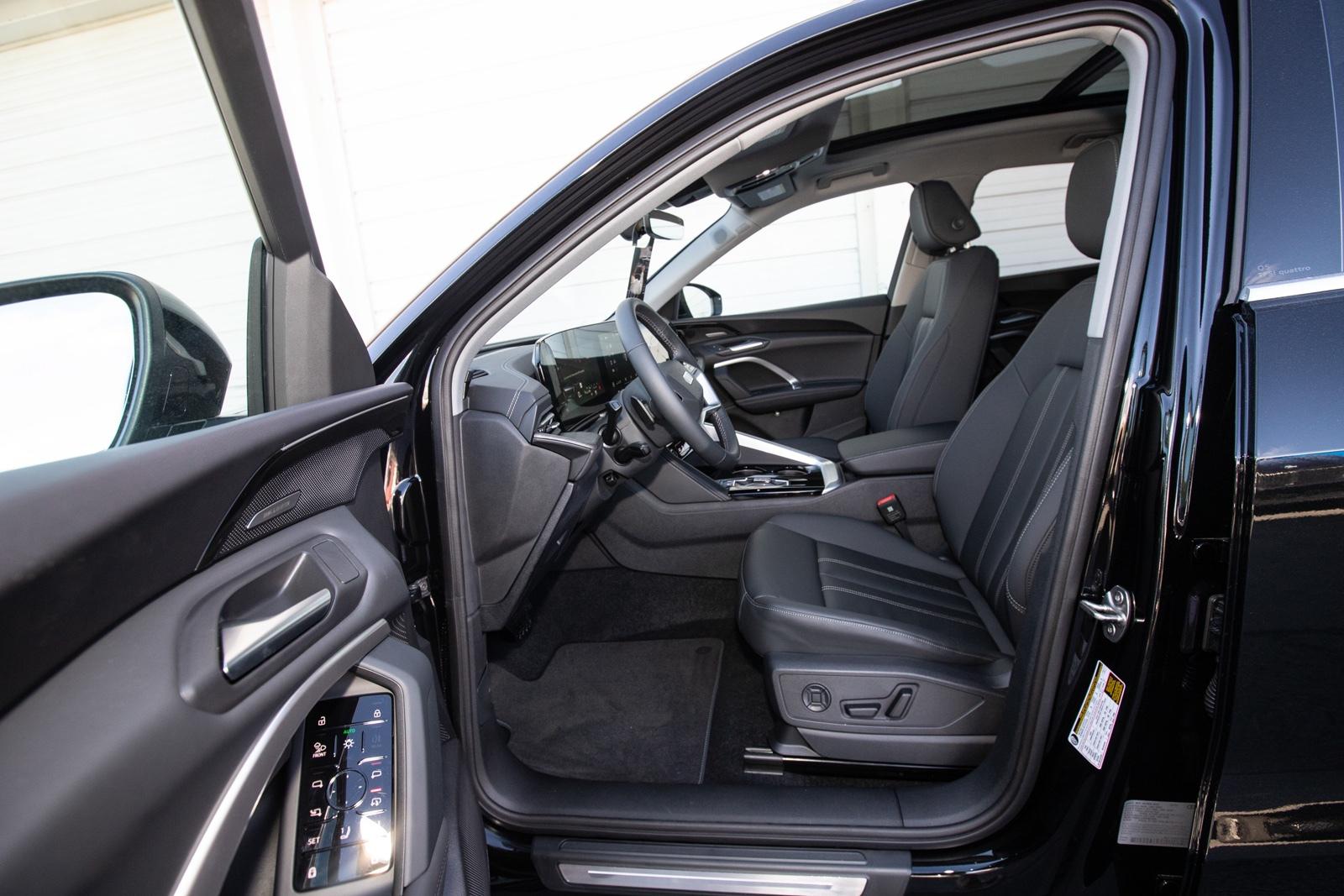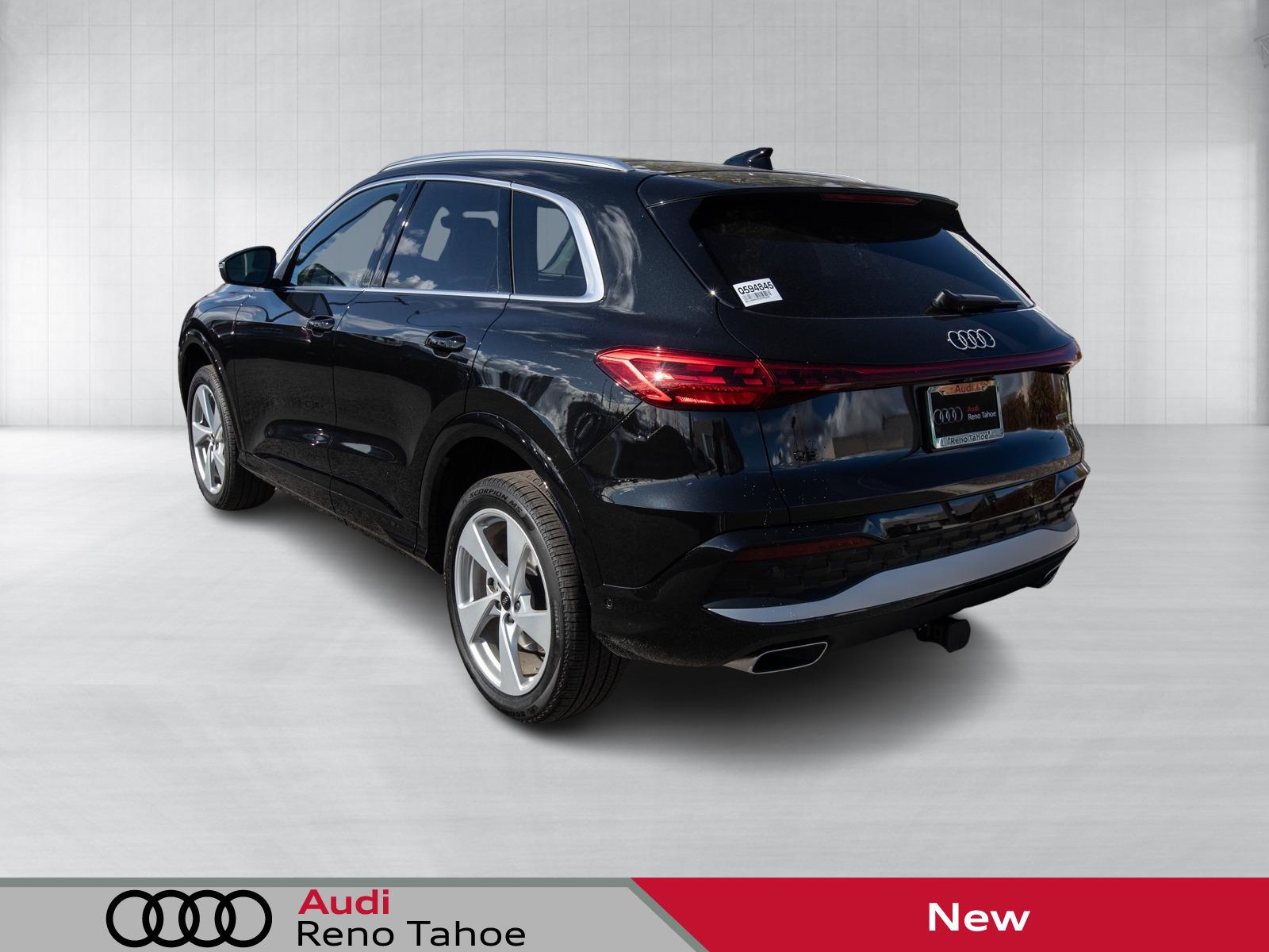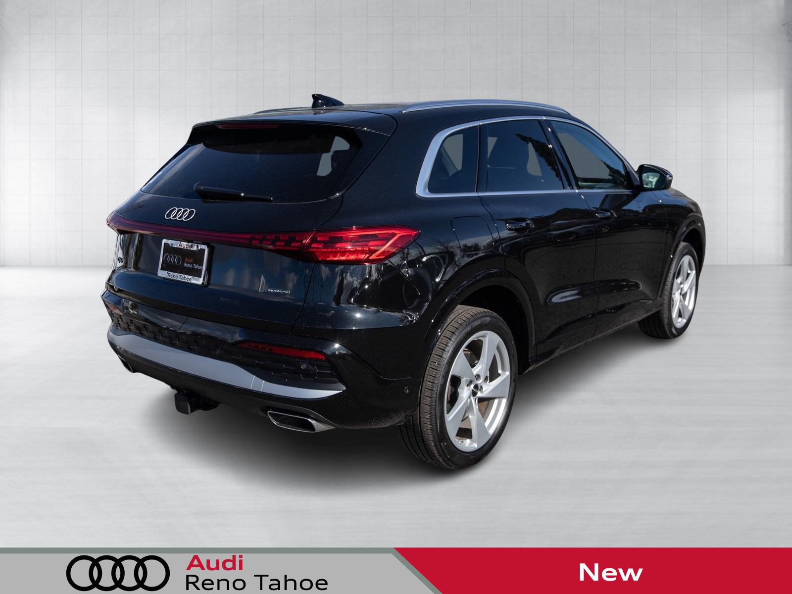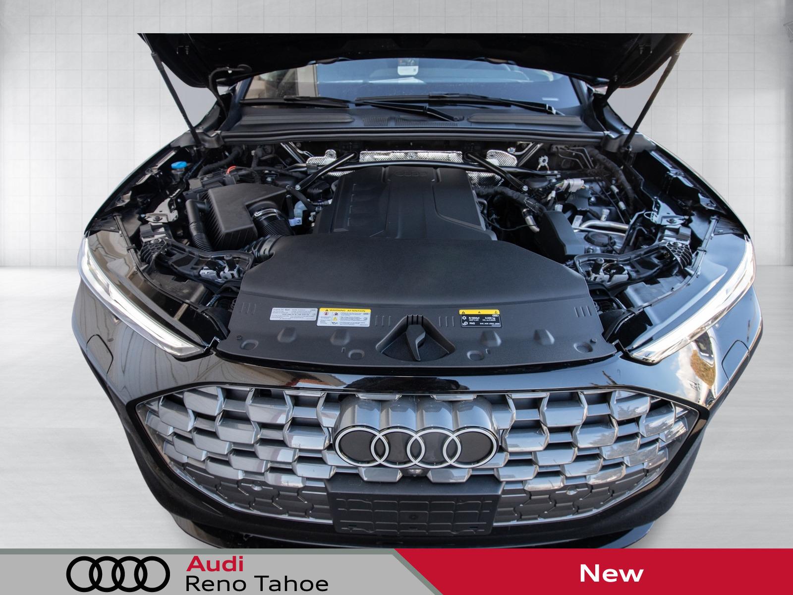 Mythos Black Metallic 2025 Audi All-new Q5 2.0T Premium Plus quattro quattro 7-Speed Automatic S tronic 2.0L 4-Cylinder TFSI 10 Speakers, 20'' Wheel Package with 5-Arm Design, 4-Wheel Disc Brakes, ABS brakes, Adaptive Cruise Assist, Air Conditioning, Alloy wheels, AM/FM radio: SiriusXM w/360L, Animation For Headlights and Taillights, Audi Beam-Rings, Audi Cargo Box, Audi Guard Wheel Lock Kit, Auto High-beam Headlights, Auto tilt-away steering wheel, Auto-dimming door mirrors, Auto-dimming Rear-View mirror, Automatic temperature control, Bang & Olufsen Sound System with 3D Sound, Brake assist, Bumpers: body-color, Compass, Delay-off headlights, Driver door bin, Driver vanity mirror, Dual front impact airbags, Dual front side impact airbags, Dynamic Interaction Light, Electronic Stability Control, Emergency communication system: Audi connect CARE, Exterior Parking Camera Rear, Four wheel independent suspension, Front anti-roll bar, Front Bucket Seats, Front Center Armrest, Front dual zone A/C, Front fog lights, Front reading lights, Garage door transmitter: HomeLink, Genuine wood console insert, Genuine wood dashboard insert, Genuine wood door panel insert, Head-Up Display, Headlight Washers, Heated door mirrors, Heated Front Bucket Seats, Heated front seats, Heated Steering Wheel with Hands-on Detection, Illuminated entry, Leather Seating Surfaces, Leather steering wheel, LED Headlights Plus with Digital DRL, LED Interior Lighting Pro Package, Low tire pressure warning, Memory seat, Navigation system: Audi Navigation Plus, Occupant sensing airbag, Outside temperature display, Overhead airbag, Overhead console, Panic alarm, Panoramic Sunroof, Passenger door bin, Passenger vanity mirror, Power door mirrors, Power driver seat, Power Liftgate, Power passenger seat, Power steering, Power windows, Premium Plus, Privacy Trunk Cover, Radio data system, Radio: MMI Navigation Plus, Rain sensing wipers, Rear air conditioning, Rear anti-roll bar, Rear fog lights, Rear reading li