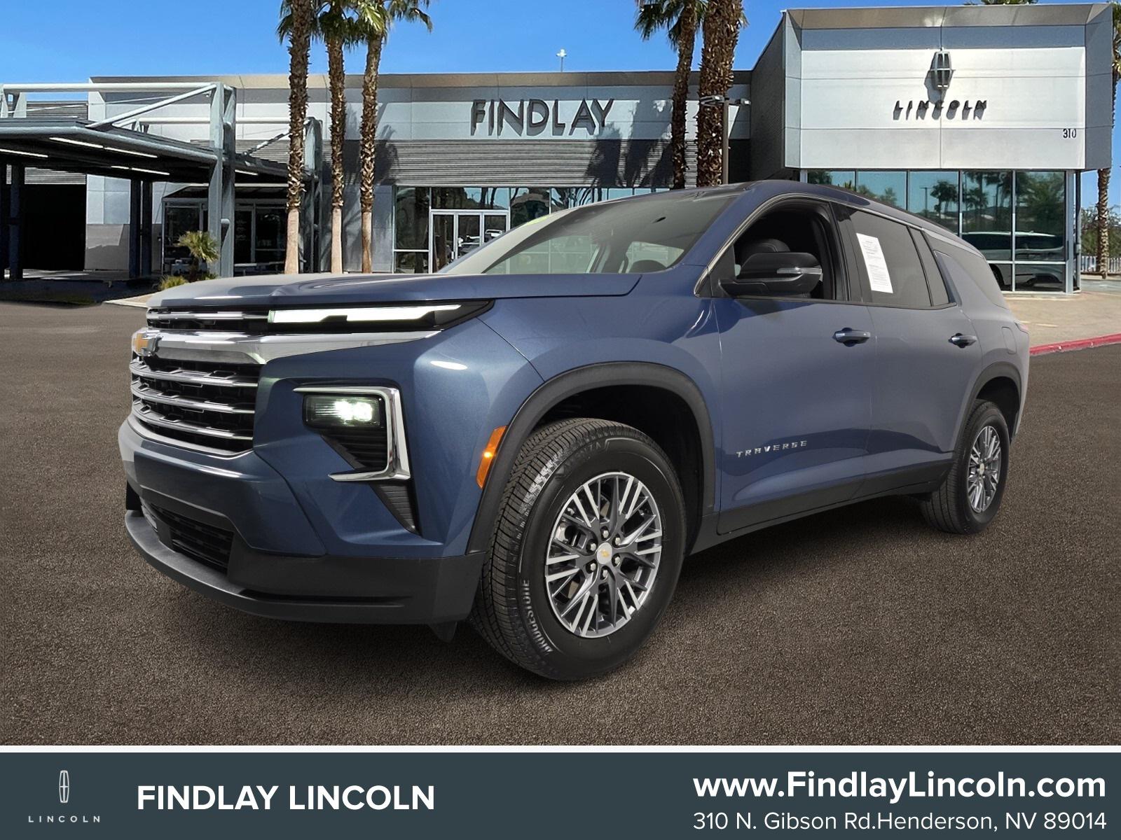 Welcome to Findlay Lincoln. All of our vehicles are hand picked and inspected for your peace of mind. This vehicle is equipped with the following options: Preferred Equipment Group 1LT, 3rd row seats: split-bench, 4-Way Manual Front Passenger Seat Adjuster, 4-Wheel Disc Brakes, 6 Speakers, 6-Speaker Audio System Feature, 8-Way Power Driver Seat Adjuster, ABS brakes, Air Conditioning, Alloy wheels, AM/FM radio: SiriusXM with 360L, Apple CarPlay/Android Auto, Auto High-beam Headlights, Automatic temperature control, Brake assist, Bumpers: body-color, Child-Seat-Sensing Airbag, Compass, Delay-off headlights, Driver door bin, Driver vanity mirror, Dual front impact airbags, Dual front side impact airbags, Electronic Stability Control, Emergency communication system: OnStar, Four wheel independent suspension, Front anti-roll bar, Front Bucket Seats, Front Center Armrest, Front dual zone A/C, Front reading lights, Fully automatic headlights, Heated door mirrors, Heated front seats, Heated steering wheel, Illuminated entry, Low tire pressure warning, Navigation System, Occupant sensing airbag, Outside temperature display, Overhead airbag, Overhead console, Panic alarm, Passenger door bin, Passenger vanity mirror, Power door mirrors, Power driver seat, Power Liftgate, Power steering, Power windows, Premium Cloth Seat Trim, Radio data system, Radio: : Audio System w/17.7"" Diagonal Display, Rear air conditioning, Rear anti-roll bar, Rear reading lights, Rear window defroster, Rear window wiper, Remote keyless entry, Security system, SiriusXM with 360L Trial Subscription, Speed control, Speed-sensing steering, Spoiler, Steering wheel mounted audio controls, Tachometer, Telescoping steering wheel, Tilt steering wheel, Traction control, Trip computer, Turn signal indicator mirrors, Variably intermittent wipers, Voltmeter, and Wheels: 18"" Grazen Metallic Machined-Face Aluminum. 2025 Chevrolet Traverse LT 1LTPreferred Equipment Group 1LT.CARFAX One-Owner. Clean CARFAX.8-Speed Automatic 2.5L DOHCRecent Arrival! Odometer is 2470 miles below market average! 20/27 City/Highway MPG