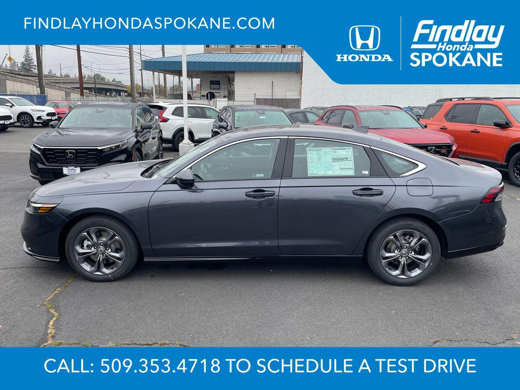 2025 Honda Accord Hybrid EX-L FWDFriends, family, and neighbors have chosen us time and time again to be their dealer. Our simple and easy process, market aggressive pricing, and friendly knowledgeable staff are all reasons why. Come see for yourself why we are the top rated dealer in Spokane. Our process is designed to be easy, give you choices, and save you time. Our pressure free buying process allows you to see the quote you want. We give every customer multiple different monthly payments and down payments all on one sheet, so you can choose the one that best fits your budget. Come see how easy it is to purchase a car, truck, SUV from Findlay Honda Spokane. This Honda Accord Hybrid is equipped with these features: 4-Wheel Disc Brakes, 8 Speakers, ABS brakes, Adaptive Cruise Control: Adaptive Cruise Control (ACC) with Low-Speed Follow, Air Conditioning, Alloy wheels, AM/FM radio, Apple CarPlay/Android Auto, Auto High-beam Headlights, Auto-dimming Rear-View mirror, Automatic temperature control, Blind Spot Information (BSI) System warning, Brake assist, Bumpers: body-color, Compass, Delay-off headlights, Driver door bin, Driver vanity mirror, Dual front impact airbags, Dual front side impact airbags, Electronic Stability Control, Emergency communication system: HondaLink, Exterior Parking Camera Rear, Four wheel independent suspension, Front anti-roll bar, Front Bucket Seats, Front Center Armrest, Front dual zone A/C, Front reading lights, Fully automatic headlights, Heated door mirrors, Heated Front Bucket Seats, Heated front seats, Illuminated entry, Knee airbag, Lane departure: Lane Keeping Assist System (LKAS) active, Leather Shift Knob, Leather steering wheel, Leather-Trimmed Seat Trim, Low tire pressure warning, Memory seat, Occupant sensing airbag, Outside temperature display, Overhead airbag, Overhead console, Panic alarm, Passenger door bin, Passenger vanity mirror, Power door mirrors, Power driver seat, Power moonroof, Power passenger seat, Power steering, Power windows, Radio data system, Radio: 180-Watt Audio System, Rear anti-roll bar, Rear reading lights, Rear seat center armrest, Rear side impact airbag, Rear window defroster, Remote keyless entry, Security system, Speed control, Speed-sensing steering, Speed-Sensitive Wipers, Split folding rear seat, Steering wheel mounted audio controls, Telescoping steering wheel, Tilt steering wheel, Traction control, Trip computer, Turn signal indicator mirrors, Variably intermittent wipers, and Wheels: 17"" x 7.5J Pewter Gray.Meteorite Gray MetallicRecent Arrival! 51/44 City/Highway MPG