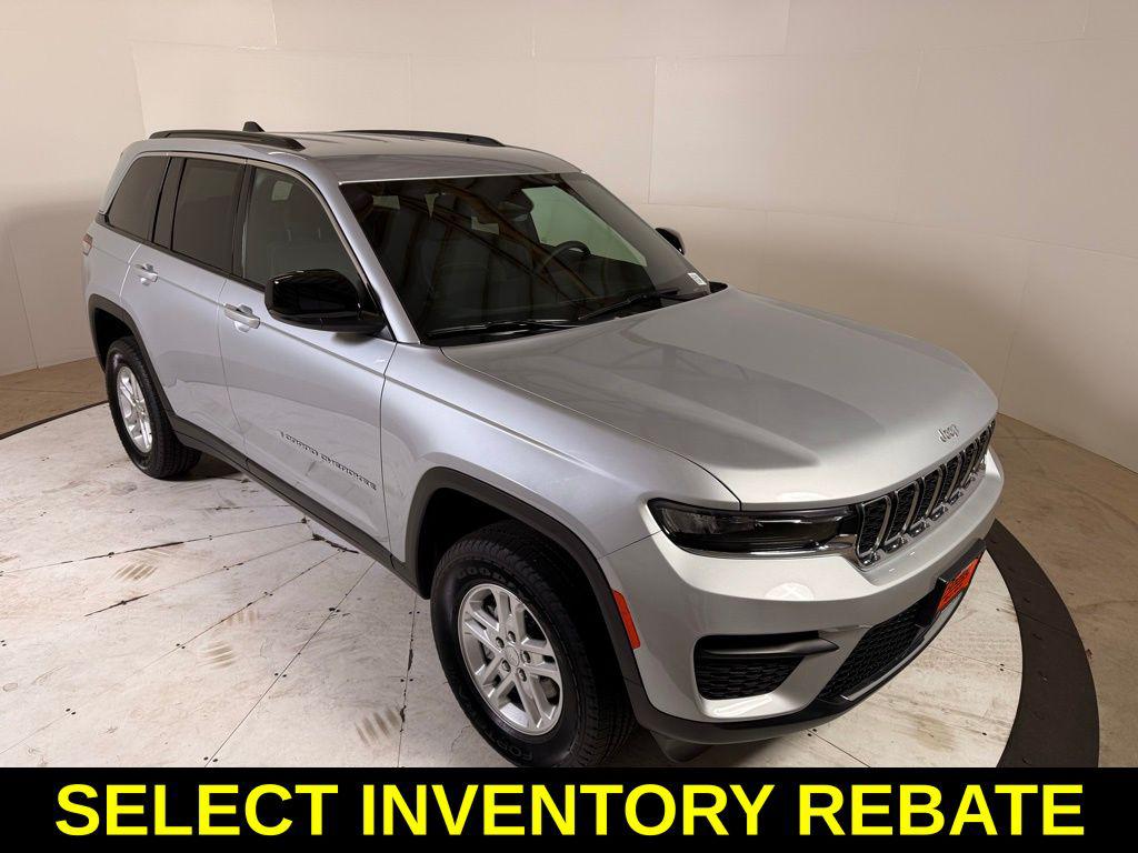 Silver Zynith 2025 Jeep Grand Cherokee Laredo 4WD 8-Speed Automatic 3.6L V6 24V VVT 115V Auxiliary Power Outlet, Heated Front Seats, Heated Steering Wheel, Luxury Tech Group I, Power Liftgate, Quick Order Package 23A Laredo, Rain Sensitive Windshield Wipers, Remote Start System, Satellite Radio, Secondary Active Grille Shutters, Selectable Tire Fill Alert, Wireless Charging Pad.19/26 City/Highway MPGThis Jeep Grand Cherokee is equipped with the following features: Luxury Tech Group I (115V Auxiliary Power Outlet, Heated Front Seats, Heated Steering Wheel, Power Liftgate, Rain Sensitive Windshield Wipers, Remote Start System, Satellite Radio, Secondary Active Grille Shutters, Selectable Tire Fill Alert, and Wireless Charging Pad), Quick Order Package 23A Laredo, 4-Wheel Disc Brakes, 6 Speakers, ABS brakes, Air Conditioning, Alloy wheels, AM/FM radio: SiriusXM, Anti-whiplash front head restraints, Automatic temperature control, Brake assist, Bumpers: body-color, Cloth Seats, Compass, Delay-off headlights, Driver door bin, Driver vanity mirror, Dual front impact airbags, Dual front side impact airbags, Electronic Stability Control, Emergency communication system, Four wheel independent suspension, Front anti-roll bar, Front Bucket Seats, Front Center Armrest w/Storage, Front dual zone A/C, Front License Plate Bracket, Front reading lights, Fully automatic headlights, Heated door mirrors, Illuminated entry, Knee airbag, Low tire pressure warning, Model Year Tracking, Normal Duty Suspension, Occupant sensing airbag, Outside temperature display, Overhead airbag, Overhead console, Panic alarm, ParkView Rear Back-Up Camera, Passenger door bin, Passenger vanity mirror, Power door mirrors, Power driver seat, Power steering, Power windows, Radio data system, Radio: Uconnect 5 w/8.4"" Display, Rear anti-roll bar, Rear reading lights, Rear window defroster, Rear window wiper, Remote keyless entry, Security system, Speed control, Speed-Sensitive Wipers, Split folding rear seat, Spoiler, Steering wheel mounted audio controls, Tachometer, Telescoping steering wheel, Tilt steering wheel, Traction control, Trip computer, Variably intermittent wipers, Voltmeter, and Wheels: 17"" x 6.5"" Fully Painted Aluminum. Price includes: $1000 - 2025 West BC SFS Bonus Cash . Exp. 12/01/2025 $2000 - 2025 National Holiday Select Inventory Bonus Cash. Exp. 12/01/2025 $2250 - 2025 National Retail Bonus Cash . Exp. 12/01/2025