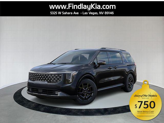 Welcome to Findlay Kia on Sahara Ave in Las Vegas. This Carnival Hybrid is equipped with the following options: Rear Seat Entertainment Package (Dual Screen Rear Seat Entertainment System), 1.6L I4 DGI Hybrid Turbocharged DOHC 16V LEV3-SULEV30, 12 Speakers, 3rd row seats: split-bench, 4-Wheel Disc Brakes, ABS brakes, Air Conditioning, Alloy wheels, AM/FM radio: SiriusXM, Apple CarPlay & Android Auto, Auto High-beam Headlights, Auto-dimming Rear-View mirror, Automatic temperature control, Brake assist, Bumpers: body-color, Cargo Tray, Compass, Delay-off headlights, Driver door bin, Driver vanity mirror, Dual front impact airbags, Dual front side impact airbags, Electronic Stability Control, Emergency communication system, Exterior Parking Camera Rear, Four wheel independent suspension, Front anti-roll bar, Front Bucket Seats, Front Center Armrest, Front dual zone A/C, Front fog lights, Front reading lights, Fully automatic headlights, Garage door transmitter: HomeLink, Heads-Up Display, Heated & Ventilated Front Bucket Seats, Heated door mirrors, Heated front seats, Heated steering wheel, Illuminated entry, Knee airbag, Leather Seat Trim, Leather Shift Knob, Leather steering wheel, Low tire pressure warning, Memory seat, Navigation system: AVN 5.0 Navigation System, Occupant sensing airbag, Outside temperature display, Overhead airbag, Overhead console, Panic alarm, Passenger door bin, Passenger vanity mirror, Power 2nd-Row Moonroof, Power door mirrors, Power driver seat, Power Liftgate, Power moonroof, Power passenger seat, Power steering, Power windows, Radio: AVN 5.0 Navigation System w/SiriusXM, Rain sensing wipers, Rear air conditioning, Rear anti-roll bar, Rear reading lights, Rear window defroster, Rear window wiper, Reclining 3rd row seat, Remote keyless entry, Security system, Speed control, Speed-sensing steering, Split folding rear seat, Spoiler, Steering wheel mounted audio controls, Tachometer, Telescoping steering wheel, Tilt steering wheel, Traction control, Trailer Prewire Harness, Trip computer, Turn signal indicator mirrors, Variably intermittent wipers, Ventilated front seats, and Wheels: 7.5J x 19"" Alloy Dark Edition.1.6L I4 DGI Hybrid Turbocharged DOHC 16V LEV3-SULEV30, 12 Speakers, 3rd row seats: split-bench, 4-Wheel Disc Brakes, ABS brakes, Air Conditioning, Alloy wheels, AM/FM radio: SiriusXM, Apple CarPlay & Android Auto, Auto High-beam Headlights, Auto-dimming Rear-View mirror, Automatic temperature control, Brake assist, Bumpers: body-color, Cargo Tray, Compass, Delay-off headlights, Driver door bin, Driver vanity mirror, Dual front impact airbags, Dual front side impact airbags, Dual Screen Rear Seat Entertainment System, Electronic Stability Control, Emergency communication system, Exterior Parking Camera Rear, Four wheel independent suspension, Front anti-roll bar, Front Bucket Seats, Front Center Armrest, Front dual zone A/C, Front fog lights, Front reading lights, Fully automatic headlights, Garage door transmitter: HomeLink, Heads-Up Display, Heated & Ventilated Front Bucket Seats, Heated door mirrors, Heated front seats, Heated steering wheel, Illuminated entry, Knee airbag, Leather Seat Trim, Leather Shift Knob, Leather steering wheel, Low tire pressure warning, Memory seat, Navigation system: AVN 5.0 Navigation System, Occupant sensing airbag, Outside temperature display, Overhead airbag, Overhead console, Panic alarm, Passenger door bin, Passenger vanity mirror, Power 2nd-Row Moonroof, Power door mirrors, Power driver seat, Power Liftgate, Power moonroof, Power passenger seat, Power steering, Power windows, Radio: AVN 5.0 Navigation System w/SiriusXM, Rain sensing wipers, Rear air conditioning, Rear anti-roll bar, Rear reading lights, Rear Seat Entertainment Package, Rear window defroster, Rear window wiper, Reclining 3rd row seat, Remote keyless entry, Security system, Speed control, Speed-sensing steering, S Price includes: $750 - Sticker Sales Event Retail Bonus Cash. Exp. 01/02/2026