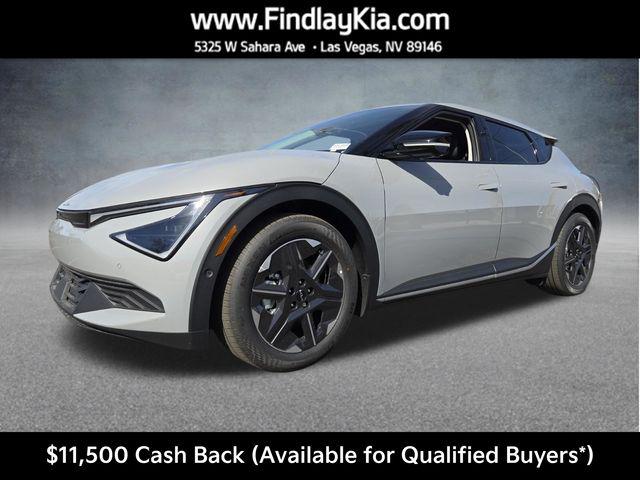 Welcome to Findlay Kia on Sahara Ave in Las Vegas. This EV6 is equipped with the following options: Light LR Technology Package (Blind-Spot View Monitor, Forward Collision Avoidance-Assist, Highway Driving Assist 2, Reverse Parking Collision Avoidance-Assist, Side Parking Distance Warning, and Surround View Monitor), 4-Wheel Disc Brakes, 6 Speakers, ABS brakes, Air Conditioning, Alloy wheels, AM/FM radio: SiriusXM, Apple CarPlay & Android Auto, Auto High-beam Headlights, Auto-Dimming Mirror w/HomeLink, Auto-dimming Rear-View mirror, Automatic temperature control, Brake assist, Bumpers: body-color, Cargo Net, Delay-off headlights, Driver door bin, Driver vanity mirror, Dual front impact airbags, Dual front side impact airbags, Electronic Stability Control, Emergency communication system, Four wheel independent suspension, Front anti-roll bar, Front Bucket Seats, Front Center Armrest, Front dual zone A/C, Front reading lights, Fully automatic headlights, Heated door mirrors, Heated front seats, Heated Front Seats (3-Stage), Heated rear seats, Heated steering wheel, Illuminated entry, Knee airbag, Low tire pressure warning, Navigation system: AVN 5.0 Navigation System, Occupant sensing airbag, Outside temperature display, Overhead airbag, Overhead console, Panic alarm, Passenger door bin, Passenger vanity mirror, Power door mirrors, Power driver seat, Power steering, Power windows, Radio: AM/FM/HD Radio/SiriusXM w/Navigation, Rain sensing wipers, Rear anti-roll bar, Rear seat center armrest, Rear side impact airbag, Rear window defroster, Recycled Fabric & Vegan Leather Seat Trim, Remote keyless entry, Security system, Speed control, Speed-sensing steering, Split folding rear seat, Spoiler, Steering wheel mounted audio controls, Telescoping steering wheel, Tilt steering wheel, Traction control, Trip computer, Turn signal indicator mirrors, Variably intermittent wipers, Wheel Locks, and Wheels: 7.5J x 19"" Dark Gray Painted Alloy.117/95 City/Highway MPGThis EV6 is equipped with Bluetooth, Backup Camera, along with the following options: Price includes: $10000 - Kia Customer Cash. Exp. 03/31/2026 $1500 - Bonus Cash. Exp. 03/31/2026