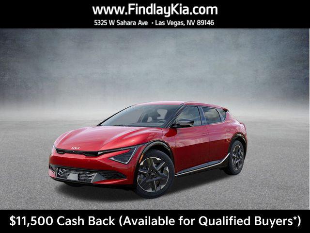 Welcome to Findlay Kia on Sahara Ave in Las Vegas. This EV6 is equipped with the following options: 4-Wheel Disc Brakes, 6 Speakers, ABS brakes, Air Conditioning, Alloy wheels, AM/FM radio: SiriusXM, Apple CarPlay & Android Auto, Auto High-beam Headlights, Auto-dimming Rear-View mirror, Automatic temperature control, Brake assist, Bumpers: body-color, Cargo Mat w/Luggage Board, Carpeted Floor Mats, Delay-off headlights, Driver door bin, Driver vanity mirror, Dual front impact airbags, Dual front side impact airbags, Electronic Stability Control, Emergency communication system, Four wheel independent suspension, Front anti-roll bar, Front Bucket Seats, Front Center Armrest, Front dual zone A/C, Front reading lights, Fully automatic headlights, Heated door mirrors, Heated front seats, Heated Front Seats (3-Stage), Heated rear seats, Heated steering wheel, Illuminated entry, Knee airbag, Low tire pressure warning, Navigation system: AVN 5.0 Navigation System, Occupant sensing airbag, Outside temperature display, Overhead airbag, Overhead console, Panic alarm, Passenger door bin, Passenger vanity mirror, Power door mirrors, Power driver seat, Power steering, Power windows, Radio: AM/FM/HD Radio/SiriusXM w/Navigation, Rain sensing wipers, Rear anti-roll bar, Rear seat center armrest, Rear side impact airbag, Rear window defroster, Recycled Fabric & Vegan Leather Seat Trim, Remote keyless entry, Security system, Speed control, Speed-sensing steering, Split folding rear seat, Spoiler, Steering wheel mounted audio controls, Telescoping steering wheel, Tilt steering wheel, Traction control, Trip computer, Turn signal indicator mirrors, Variably intermittent wipers, and Wheels: 7.5J x 19"" Dark Gray Painted Alloy.117/95 City/Highway MPGThis EV6 is equipped with Bluetooth, Backup Camera, along with the following options: Price includes: $10000 - Kia Customer Cash. Exp. 03/31/2026 $1500 - Bonus Cash. Exp. 03/31/2026