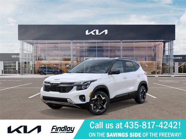 Clear White/Black Roof 2025 Kia Seltos S AWD CVT 2.0L I4 MPIWelcome To Findlay Kia in St. George. Come see us (On the SAVINGS SIDE of the FREEWAY). This Kia Seltos is equipped with the following options: Glossy Black Door Garnish Package (Glossy Black Door Garnish), 4-Wheel Disc Brakes, 6 Speakers, ABS brakes, Air Conditioning, Alloy wheels, AM/FM radio: SiriusXM, Apple CarPlay & Android Auto, Auto High-beam Headlights, Automatic temperature control, Brake assist, Bumpers: body-color, Carpet Floor Mats, Cloth & Artificial Leather Seat Trim, Delay-off headlights, Driver door bin, Driver vanity mirror, Dual front impact airbags, Dual front side impact airbags, EC Mirror w/Homelink, Electronic Stability Control, Emergency communication system: 911 Connect, Exterior Parking Camera Rear, Four wheel independent suspension, Front anti-roll bar, Front Bucket Seats, Front Center Armrest, Front fog lights, Front reading lights, Fully automatic headlights, Heated door mirrors, Heated Front Bucket Seats (3-Steps), Heated front seats, Illuminated entry, Leather Shift Knob, Leather steering wheel, Low tire pressure warning, Navigation System, Occupant sensing airbag, Outside temperature display, Overhead airbag, Overhead console, Panic alarm, Passenger door bin, Passenger vanity mirror, Power door mirrors, Power steering, Power windows, Radio: AM/FM/HD/Satellite Display System w/Navigation, Rear seat center armrest, Rear window defroster, Rear window wiper, Remote keyless entry, Security system, Speed control, Speed-sensing steering, Split folding rear seat, Spoiler, Steering wheel mounted audio controls, Tachometer, Telescoping steering wheel, Tilt steering wheel, Traction control, Trip computer, Turn signal indicator mirrors, Variably intermittent wipers, and Wheels: 17"" Alloy w/Machined Finished. 27/31 City/Highway MPGThank you again for your consideration. We have this Kia Seltos and dozens more available at www.findlaykiastgeorge.com or call us at 435-817-4242.