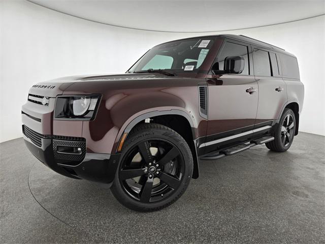 Sedona Red Metallic 2025 Land Rover Defender 130 X-Dynamic SE AWD 8-Speed Automatic 3.0L I6 12-Way Heated & Cooled Electric Memory Front Seats, 14-Way Heated & Cooled Electric Memory Front Seats, 15 Speakers, 3rd row seats: split-bench, 4-Wheel Disc Brakes, 4-Zone Climate Control, ABS brakes, Adaptive suspension, Air Conditioning, Alloy wheels, AM/FM radio: SiriusXM, Apple CarPlay & Android Auto, Auto High-beam Headlights, Auto tilt-away steering wheel, Auto-dimming door mirrors, Auto-dimming Rear-View mirror, Automatic temperature control, Black Fixed Side Steps, Brake assist, Bumpers: body-color, Cold Climate Package, Compass, Dark Grey Powder Coat Cross Car Beam, Delay-off headlights, Driver door bin, Driver vanity mirror, Dual front impact airbags, Dual front side impact airbags, Electronic Stability Control, Emergency Pack, Extended Black Exterior Pack, Extended Leather Upgrade, Exterior Parking Camera Rear, Exterior Protection Pack, Four wheel independent suspension, Front anti-roll bar, Front Bucket Seats, Front Center Armrest, Front Center Console Refrigerator Compartment, Front dual zone A/C, Front fog lights, Front reading lights, Fully automatic headlights, Garage door transmitter: HomeLink, Handover Pack, Head-Up Display, Headlight Power Wash, Heated 3rd Row Seats, Heated door mirrors, Heated front seats, Heated steering wheel, Heated Washer Jets, Heated Windscreen, Illuminated entry, Leather Gearshift, Leather Wrapped Steering Wheel w/PU Driver Airbag, Low tire pressure warning, Memory seat, Navigation system: Connected Navigation PIVI Pro, Occupant sensing airbag, Outside temperature display, Overhead airbag, Overhead console, Panic alarm, Passenger door bin, Passenger vanity mirror, Power door mirrors, Power driver seat, Power moonroof, Power passenger seat, Power steering, Power windows, Premium Upgrade Interior Pack, Radio data system, Radio: Meridian Surround Sound System, Rain sensing wipers, Rear air conditioning, Rear anti-roll bar, Rear fog lights, Rear reading lights, Rear seat center armrest, Rear window defroster, Rear window wiper, Remote keyless entry, Resist Seat Trim, Second Row Heated & Cooled Captain Chairs, Security system, Speed control, Speed-sensing steering, Speed-Sensitive Wipers, Split folding rear seat, Steering wheel memory, Steering wheel mounted audio controls, Tachometer, Telescoping steering wheel, Tilt steering wheel, Traction control, Trip computer, Variably intermittent wipers, Ventilated front seats, Weather band radio, Wheel Protection Pack, Wheels: 20"" Satin Dark Grey Style 5094, Wheels: 22"" Gloss Black Style 5098.