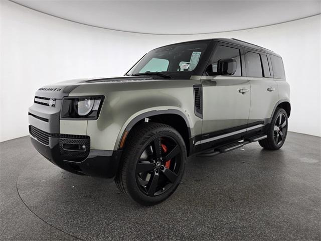 Pangea Green Metallic 2025 Land Rover Defender 110 X AWD 8-Speed Automatic 3.0L I6 14-Way Heated & Cooled Electric Memory Front Seats, 15 Speakers, 3-Zone Climate Control, 4-Wheel Disc Brakes, ABS brakes, Adaptive suspension, Advanced Tow Assist, Air Conditioning, Air Quality Sensor, Alloy wheels, AM/FM radio: SiriusXM, Apple CarPlay & Android Auto, Auto High-beam Headlights, Auto tilt-away steering wheel, Auto-dimming door mirrors, Auto-dimming Rear-View mirror, Automatic temperature control, Black Contrast Signature Graphic w/Interior Storage, Black Exposed Rear Recovery Eyes, Black Fixed Side Steps, Black Wheel Protection Pack, Brake assist, Bumpers: body-color, Cabin Air Purification Plus, Compass, Delay-off headlights, Driver door bin, Driver vanity mirror, Dual front impact airbags, Dual front side impact airbags, Electronic Stability Control, Emergency Pack, Exterior Parking Camera Rear, Four wheel independent suspension, Front anti-roll bar, Front Bucket Seats, Front Center Armrest, Front Center Console Refrigerator Compartment, Front dual zone A/C, Front fog lights, Front reading lights, Fully automatic headlights, Garage door transmitter: HomeLink, Handover Pack, Heads-Up Display, Heated door mirrors, Heated front seats, Heated rear seats, Heated steering wheel, Illuminated entry, Leather Shift Knob, Leather steering wheel, Low tire pressure warning, Memory seat, Navigation system: Connected Navigation PIVI Pro, Occupant sensing airbag, Outside temperature display, Overhead airbag, Overhead console, Panic alarm, Passenger door bin, Passenger vanity mirror, Power door mirrors, Power driver seat, Power moonroof, Power passenger seat, Power steering, Power windows, Radio data system, Radio: Meridian Surround Sound System, Rain sensing wipers, Rear anti-roll bar, Rear fog lights, Rear reading lights, Rear seat center armrest, Rear Seat Convenience Pack, Rear window defroster, Rear window wiper, Remote keyless entry, Security system, Speed control, Speed-sensing steering, Speed-Sensitive Wipers, Split folding rear seat, Steering wheel memory, Steering wheel mounted audio controls, Tachometer, Telescoping steering wheel, Tilt steering wheel, Tow Hitch Receiver, Towing Pack, Traction control, Trip computer, Variably intermittent wipers, Ventilated front seats, Weather band radio, Wheels: 22"" Gloss Black Style 5098, Wheels: 22"" Gloss Sparkle Silver Style 5098, Wi-Fi Enabled w/Data Plan, Windsor Leather & Kvadrat Seat Trim.