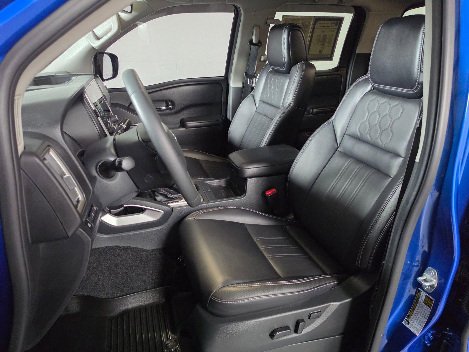 Inside, the Frontier SL offers a spacious and well-appointed cabin. The leather-appointed seating, leather-wrapped steering wheel, and center console armrest create a premium, comfortable environment. Thoughtful storage solutions, including the overhead console and driver's door bin, help keep your belongings organized.