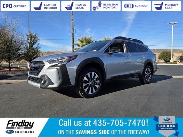 Welcome to Findlay Subaru in St George on the Savings Side of the Freeway. Please contact us at the phone number listed above for any questions that you might have and to check the availability of this vehicle. This Subaru Outback is equipped with the following options:Popular Package #2 (All-Weather Floor Liners, Auto-Dimming Exterior Mirror w/Approach Light, LED Upgrade, Rear Bumper Cover, Rear Seat Back Protector, and Splash Guards), Subaru Certified Pre-Owned Certified, 12 Speakers, 4-Wheel Disc Brakes, ABS brakes, Air Conditioning, Alloy wheels, AM/FM radio: SiriusXM with 360L, Apple CarPlay & Android Auto, Auto High-beam Headlights, Auto-dimming Rear-View mirror, Automatic temperature control, Brake assist, Bumpers: body-color, Compass, Driver door bin, Driver vanity mirror, Dual front impact airbags, Dual front side impact airbags, Electronic Stability Control, Emergency communication system: MySubaru Safety (3-year free trial), Exterior Parking Camera Rear, Four wheel independent suspension, Front anti-roll bar, Front Bucket Seats, Front Center Armrest w/Storage, Front dual zone A/C, Front fog lights, Front reading lights, Fully automatic headlights, Garage door transmitter: HomeLink, harman/kardon® Speakers, Heated door mirrors, Heated Front Bucket Seats, Heated front seats, Heated rear seats, Heated steering wheel, HVAC memory, Illuminated entry, Knee airbag, Leather Shift Knob, Leather steering wheel, Low tire pressure warning, Memory seat, Navigation system: TomTom Navigation w/what3words, Occupant sensing airbag, Outside temperature display, Overhead airbag, Overhead console, Panic alarm, Passenger door bin, Passenger vanity mirror, Perforated Leather-Trimmed Upholstery, Power door mirrors, Power driver seat, Power Liftgate, Power moonroof, Power passenger seat, Power steering, Power windows, Radio: Subaru 11.6"" Multimedia System w/Navigation, Rear anti-roll bar, Rear seat center armrest, Rear window defroster, Rear window wiper, Remote keyless entry, Roof rack, Security system, Speed control, Speed-sensing steering, Split folding rear seat, Spoiler, Steering wheel mounted audio controls, Tachometer, Telescoping steering wheel, Tilt steering wheel, Traction control, Trip computer, Turn signal indicator mirrors, Variably intermittent wipers, and Wheels: 18"" x 7J Black Aluminum-Alloy.
