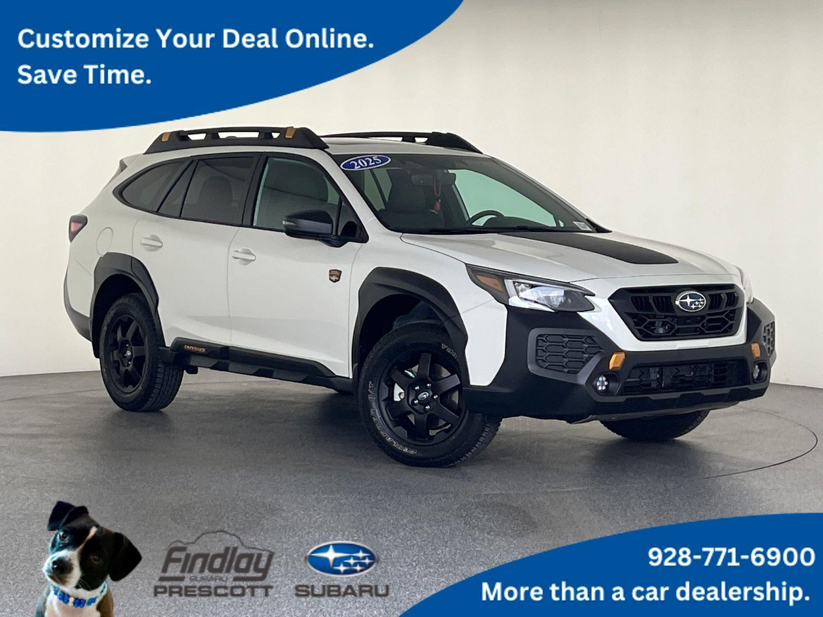 Visit with our NON-Commission team, for a hassle free experience! Save more with Findlay Subaru Prescott, with our competitive, market based pricing! This Subaru Outback is equipped with the following features: Power Moonroof & Navigation & RAB (Power Moonroof, Radio: Subaru 11.6 Multimedia System w/Navigation, and Reverse Automatic Braking (RAB) System), 12 Speakers, 4-Wheel Disc Brakes, ABS brakes, Air Conditioning, Alloy wheels, AM/FM radio: SiriusXM with 360L, Apple CarPlay & Android Auto, Auto High-beam Headlights, Auto-dimming Rear-View mirror, Automatic temperature control, Brake assist, Compass, Driver door bin, Driver vanity mirror, Dual front impact airbags, Dual front side impact airbags, Electronic Stability Control, Emergency communication system: MySubaru Safety (3-year free trial), Exterior Parking Camera Rear, Four wheel independent suspension, Front anti-roll bar, Front Bucket Seats, Front Center Armrest w/Storage, Front dual zone A/C, Front fog lights, Front reading lights, Fully automatic headlights, Garage door transmitter: HomeLink, harman/kardon® Speakers, Heated door mirrors, Heated Front Bucket Seats, Heated front seats, Heated rear seats, Heated steering wheel, Illuminated entry, Knee airbag, Leather steering wheel, LED Upgrade, Low tire pressure warning, Occupant sensing airbag, Outside temperature display, Overhead airbag, Overhead console, Panic alarm, Passenger door bin, Passenger vanity mirror, Power door mirrors, Power driver seat, Power Liftgate, Power passenger seat, Power steering, Power windows, Radio: Subaru 11.6 Multimedia Plus System, Rear anti-roll bar, Rear Seat Back Protector, Rear seat center armrest, Rear window defroster, Rear window wiper, Remote keyless entry, Roof rack, Security system, Speed control, Speed-sensing steering, Splash Guards, Split folding rear seat, Spoiler, StarTex-Trimmed Upholstery, Steering wheel mounted audio controls, Tachometer, Telescoping steering wheel, Tilt steering wheel, Traction control, Trailer Hitch & Trailer Hitch Fascia Panel, Trip computer, Turn signal indicator mirrors, Variably intermittent wipers, and Wheels: 17 x 7J Matte Black Aluminum-Alloy.Clean CARFAX.We use Market Based Pricing to give you the best price, upfront, without games. We do the shopping, so you get the deals!2025 Subaru Outback Wilderness 21/26 City/Highway MPG