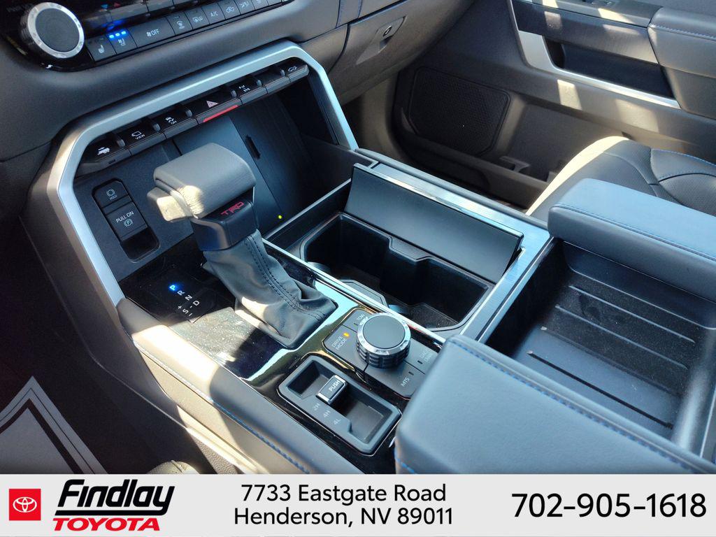 # 1 SELLING TOYOTA DEALERSHIP IN NEVADA. LARGEST INVENTORY OF NEW AND PRE-OWNED VEHICLES. JOHN BARR SAYS ""I WILL DO ANYTHING TO SELL YOU A CAR"" 2025 Toyota Tundra Hybrid Platinum 4WD PearlThis Toyota Tundra Hybrid is equipped with the following features: TRD Off-Road Package (Front & Rear Mud Guards, Multi-Terrain Back Monitor, and Wheels: 20"" x 8.5"" Black Alloy), 3.4L V6, 10"" Color Head-Up Display (HUD), 12 Speakers, 3.31 Axle Ratio, 4-Wheel Disc Brakes, ABS brakes, Air Conditioning, All Weather Floor Liners (TMS), Alloy wheels, AM/FM radio: SiriusXM, Apple CarPlay/Android Auto, Auto High-beam Headlights, Auto-dimming door mirrors, Auto-dimming Rear-View mirror, Automatic temperature control, Brake assist, Bumpers: body-color, Delay-off headlights, Driver door bin, Driver vanity mirror, Dual front impact airbags, Dual front side impact airbags, Electronic Stability Control, Emergency communication system: Safety Connect (10-year trial), Exterior Parking Camera Rear, Front anti-roll bar, Front Bucket Seats, Front Center Armrest, Front dual zone A/C, Front fog lights, Front reading lights, Front wheel independent suspension, Fully automatic headlights, Garage door transmitter: HomeLink, Heated & Ventilated Front Bucket Seats, Heated door mirrors, Heated front seats, Heated rear seats, Heated steering wheel, Illuminated entry, Knee airbag, Leather Shift Knob, Leather steering wheel, Low tire pressure warning, Memory seat, Navigation System, Occupant sensing airbag, Outside temperature display, Overhead airbag, Overhead console, Paint Protection Film (TMS), Panic alarm, Passenger door bin, Passenger vanity mirror, Power door mirrors, Power driver seat, Power moonroof, Power passenger seat, Power steering, Power windows, Premium Leather Seat Trim, Radio data system, Radio: Premium Audio w/JBL, Rain sensing wipers, Rear reading lights, Rear seat center armrest, Rear step bumper, Rear window defroster, Remote keyless entry, Security system, Speed control, Speed-sensing steering, Split folding rear seat, Steering wheel memory, Steering wheel mounted audio controls, Tachometer, Telescoping steering wheel, Tilt steering wheel, Traction control, Trip computer, Turn signal indicator mirrors, Variably intermittent wipers, Ventilated front seats, Ventilated rear seats, Voltmeter, and Wheels: 20"" x 8"" Dark-Painted Alloy. ** This 2025 Toyota Tundra Hybrid is equipped with 3.4L V6 4WD**, ** and this Tundra Hybrid is trimmed in Pearl with Black interior**, 3.4L V6.