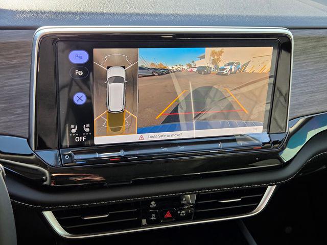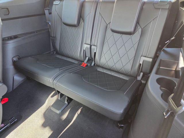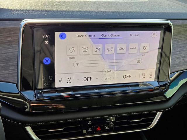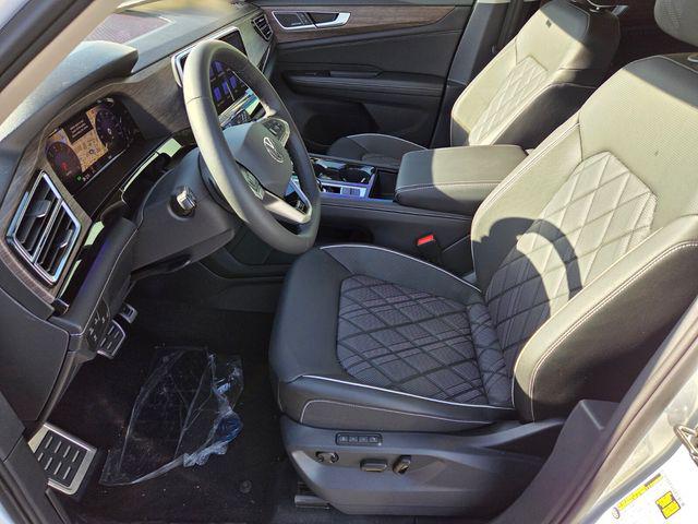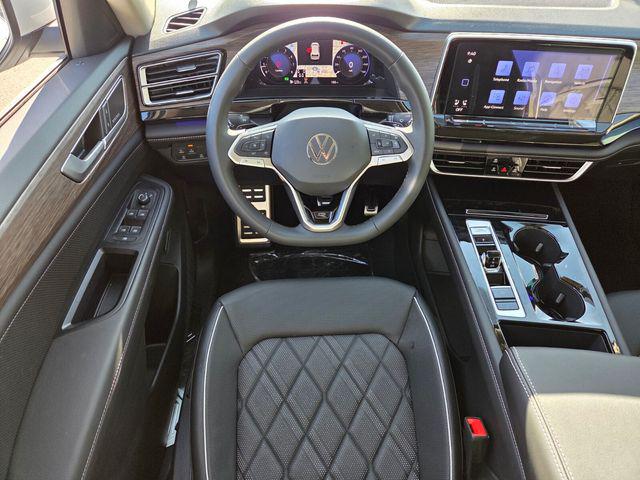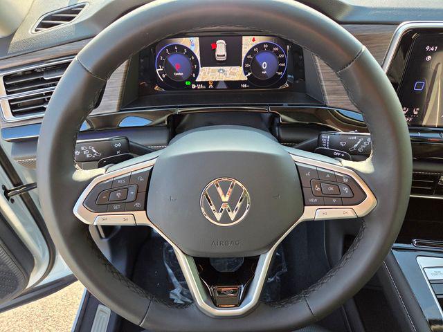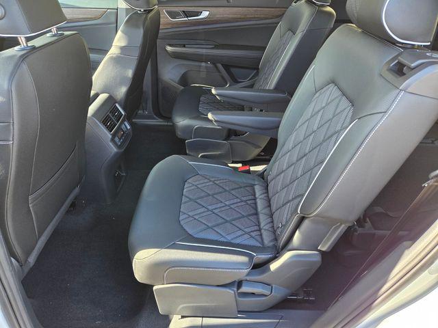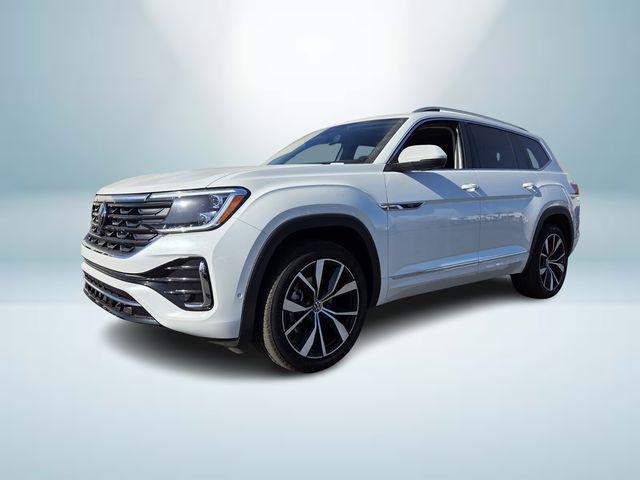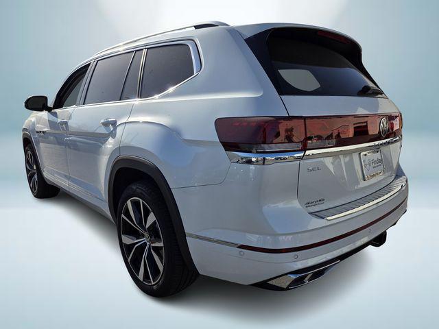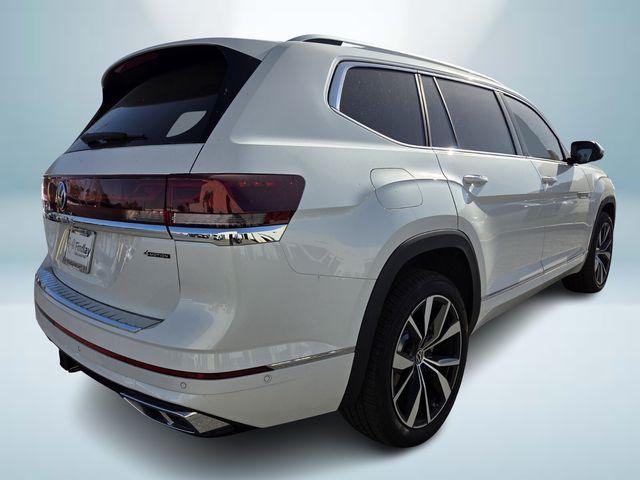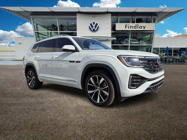Opal White Pearl 2025 Volkswagen Atlas 2.0T SEL Premium R-Line AWD 8-Speed Automatic 2.0L TSI 10 Speakers, 21"" 2-tone machined alloy wheels, 2nd-row dual captain's chairs, 3rd row seats: split-bench, 4-Wheel Disc Brakes, ABS brakes, Air Conditioning, AM/FM radio: SiriusXM with 360L, Auto High-beam Headlights, Auto-dimming Rear-View mirror, auto-dimming rearview mirror with HomeLink Connect, Automatic temperature control, Brake assist, Bumpers: body-color, chrome Bumperdillo rear bumper protection plate, Compass, Custom 20"" Black Wheels, Delay-off headlights, Driver door bin, Driver vanity mirror, Dual front impact airbags, Dual front side impact airbags, Electronic Stability Control, Emergency communication system: VW Car-Net Safe & Secure 5-year, Exterior Parking Camera Rear, first aid kit, Four wheel independent suspension, four-wheel independent suspension, Front anti-roll bar, Front Bucket Seats, Front Center Armrest, Front dual zone A/C, Front fog lights, Front reading lights, Fully automatic headlights, harman/kardon® Speakers, Heads-Up Display, heated and Actively ventilated front bucket seats, Heated door mirrors, Heated front seats, Heated rear seats, Heated steering wheel, heavy duty trunk liner with VW CarGo blocks, Illuminated entry, Leather steering wheel, Low tire pressure warning, Memory seat, MIB3 discover media with navigation, Navigation System, Occupant sensing airbag, Outside temperature display, Overhead airbag, Overhead console, Panic alarm, Passenger door bin, Passenger vanity mirror, perforated vienna leather seating surfaces, Power door mirrors, Power driver seat, Power Liftgate, Power moonroof: Panoramic, Power passenger seat, Power steering, Power windows, Radio data system, Rain sensing wipers, Rear air conditioning, Rear anti-roll bar, Rear audio controls, Rear reading lights, Rear seat center armrest, Rear window defroster, Rear window wiper, Remote keyless entry, retractable privacy cover for cargo area, roadside assistance kit, rubber mats kit (2-row), Security system, Speed control, Speed-sensing steering, Split folding rear seat, Spoiler, Sport steering wheel, Steering wheel mounted audio controls, Tachometer, Telescoping steering wheel, Tilt steering wheel, towing essentials and protection package, Traction control, trailer hitch extras, Trip computer, Turn signal indicator mirrors, Variably intermittent wipers, Ventilated front seats, Volkswagen logo puddle lights.