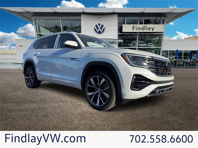 Opal White Pearl 2025 Volkswagen Atlas 2.0T SEL Premium R-Line AWD 8-Speed Automatic 2.0L TSI 10 Speakers, 21"" 2-tone machined alloy wheels, 3rd row seats: split-bench, 4-Wheel Disc Brakes, ABS brakes, Air Conditioning, AM/FM radio: SiriusXM with 360L, Auto High-beam Headlights, Auto-dimming Rear-View mirror, auto-dimming rearview mirror with HomeLink Connect, Automatic temperature control, Brake assist, Bumpers: body-color, chrome Bumperdillo rear bumper protection plate, Compass, Custom 20"" Black Wheels, Delay-off headlights, Driver door bin, Driver vanity mirror, Dual front impact airbags, Dual front side impact airbags, Electronic Stability Control, Emergency communication system: VW Car-Net Safe & Secure 5-year, Exterior Parking Camera Rear, Four wheel independent suspension, four-wheel independent suspension, Front anti-roll bar, Front Bucket Seats, Front Center Armrest, Front dual zone A/C, Front fog lights, Front reading lights, Fully automatic headlights, harman/kardon® Speakers, Heads-Up Display, heated and Actively ventilated front bucket seats, Heated door mirrors, Heated front seats, Heated rear seats, Heated steering wheel, heavy duty trunk liner with VW CarGo blocks, Illuminated entry, Leather steering wheel, Low tire pressure warning, Memory seat, MIB3 discover media with navigation, Navigation System, Occupant sensing airbag, Outside temperature display, Overhead airbag, Overhead console, Panic alarm, Passenger door bin, Passenger vanity mirror, perforated vienna leather seating surfaces, Power door mirrors, Power driver seat, Power Liftgate, Power moonroof: Panoramic, Power passenger seat, Power steering, Power windows, Radio data system, Rain sensing wipers, Rear air conditioning, Rear anti-roll bar, Rear audio controls, Rear reading lights, Rear seat center armrest, Rear window defroster, Rear window wiper, Remote keyless entry, retractable privacy cover for cargo area, rubber mats kit (2-row), Security system, Speed control, Speed-sensing steering, Split folding rear seat, Spoiler, Sport steering wheel, Steering wheel mounted audio controls, Tachometer, Telescoping steering wheel, Tilt steering wheel, Traction control, Trip computer, Turn signal indicator mirrors, Variably intermittent wipers, Ventilated front seats, VW care.