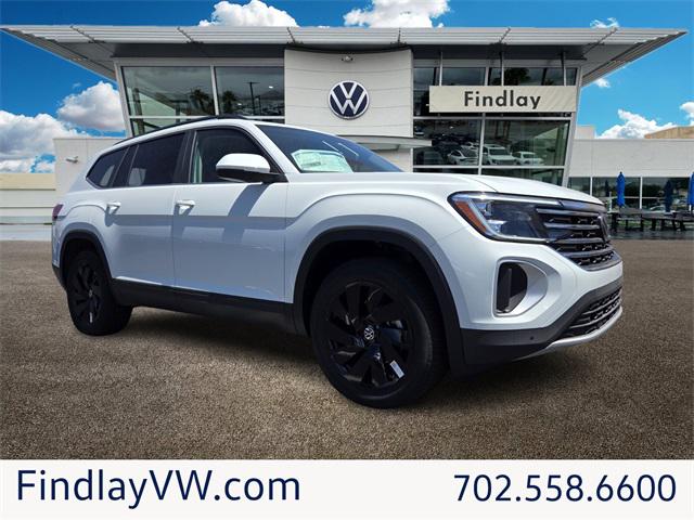 Pure White 2025 Volkswagen Atlas 2.0T SE w/Technology AWD 8-Speed Automatic 2.0L TSI 20"" 2-tone machined alloy wheels, 3rd row seats: split-bench, 4-Wheel Disc Brakes, 6 Speakers, ABS brakes, Air Conditioning, AM/FM radio: SiriusXM with 360L, Auto High-beam Headlights, Auto-dimming Rear-View mirror, Automatic temperature control, Brake assist, Bumpers: body-color, Compass, Custom 20"" Black Wheels, Delay-off headlights, Driver door bin, Driver vanity mirror, Dual front impact airbags, Dual front side impact airbags, Electronic Stability Control, Emergency communication system: VW Car-Net Safe & Secure 5-year, Exterior Parking Camera Rear, Four wheel independent suspension, four-wheel independent suspension, Front anti-roll bar, Front Bucket Seats, Front Center Armrest, Front dual zone A/C, Front fog lights, Front reading lights, Fully automatic headlights, heated and Actively ventilated front bucket seats, Heated door mirrors, Heated front seats, Heated steering wheel, Illuminated entry, Low tire pressure warning, MIB3 composition media radio, Occupant sensing airbag, Outside temperature display, Overhead airbag, Overhead console, Panic alarm, Passenger door bin, Passenger vanity mirror, perforated V-Tex leatherette seating surfaces, Power door mirrors, Power driver seat, Power Liftgate, Power steering, Power windows, Radio data system, Rain sensing wipers, Rear air conditioning, Rear anti-roll bar, Rear reading lights, Rear seat center armrest, Rear window defroster, Rear window wiper, Remote keyless entry, Security system, Speed control, Speed-sensing steering, Split folding rear seat, Spoiler, Steering wheel mounted audio controls, Tachometer, Telescoping steering wheel, Tilt steering wheel, Traction control, Trip computer, Turn signal indicator mirrors, Variably intermittent wipers, Ventilated front seats.19/26 City/Highway MPG