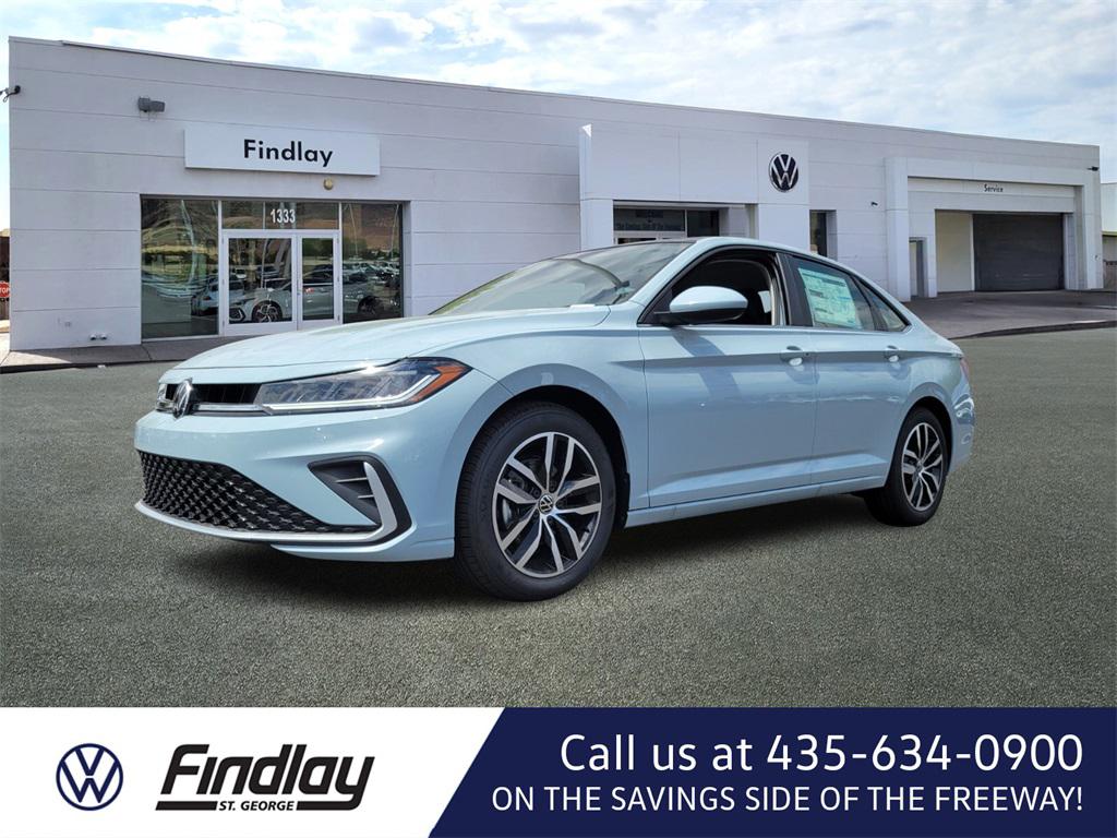 Gray 2025 Volkswagen Jetta 1.5T SE FWD 8-Speed Automatic with Tiptronic 1.5L I-4 DI DOHC TurbochargedWelcome to Findlay Volkswagen in St. George. We include complimentary, the 1st 3 oil changes with your new car purchase. This Volkswagen Jetta is equipped with the following options: 4-Wheel Disc Brakes, 6 Speakers, ABS brakes, Active Blind Spot Monitor, Air Conditioning, Alloy wheels, AM/FM radio: SiriusXM with 360L, Auto-dimming Rear-View mirror, Automatic temperature control, Brake assist, Bumpers: body-color, CloudTex & V-Tex Leatherette Seat Trim, Delay-off headlights, Driver door bin, Driver vanity mirror, Dual front impact airbags, Dual front side impact airbags, Electronic Stability Control, Emergency communication system: VW Car-Net Safe & Secure 5-year, Exterior Parking Camera Rear, Front anti-roll bar, Front Bucket Seats, Front Center Armrest, Front dual zone A/C, Front wheel independent suspension, Fully automatic headlights, Heated door mirrors, Heated Front Seats, Heated front seats, Illuminated entry, Leather Shift Knob, Leather steering wheel, Low tire pressure warning, Occupant sensing airbag, Outside temperature display, Overhead airbag, Overhead console, Panic alarm, Passenger door bin, Passenger vanity mirror, Power door mirrors, Power driver seat, Power steering, Power windows, Radio data system, Radio: MIB3 Composition Media w/8"" Touchscreen, Rain sensing wipers, Rear anti-roll bar, Rear reading lights, Rear seat center armrest, Rear window defroster, Remote keyless entry, Speed control, Speed-sensing steering, Split folding rear seat, Steering wheel mounted audio controls, Tachometer, Telescoping steering wheel, Tilt steering wheel, Traction control, Trip computer, Variably intermittent wipers, Wheels: 17"" Twin 5-Spoke 2-Tone Machined Alloy.29/40 City/Highway MPG