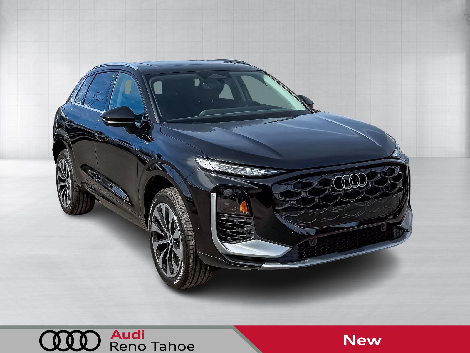 Mythos Black Metallic 2026 Audi Q3 S Line quattro quattro 7-Speed Automatic S tronic 2.0L 4-Cylinder 10 Speakers, 19'' Wheel Package, 4-Wheel Disc Brakes, ABS brakes, Adaptive Cruise Assist, Air Conditioning, Alloy wheels, AM/FM radio, Audi Beam-Rings, Audi Guard All-Weather Mats, Auto High-beam Headlights, Auto-dimming door mirrors, Auto-dimming Rear-View mirror, Automatic temperature control, Brake assist, Bumpers: body-color, Compass, Delay-off headlights, Driver Assistance Package, Driver door bin, Driver vanity mirror, Dual front impact airbags, Dual front side impact airbags, Electronic Stability Control, Emergency communication system: Audi connect CARE, Exterior Parking Camera Rear, Four wheel independent suspension, Front anti-roll bar, Front Bucket Seats, Front Center Armrest, Front dual zone A/C, Front reading lights, Fully automatic headlights, Garage door transmitter: HomeLink, Genuine wood dashboard insert, Heated door mirrors, Heated Front Bucket Seats, Heated front seats, Heated Steering Wheel, Illuminated entry, Leather Seating Surfaces, Leather steering wheel, Low tire pressure warning, Memory seat, Navigation system: MMI Navigation plus, Occupant sensing airbag, Outside temperature display, Overhead airbag, Overhead console, Panic alarm, Park Assist Plus, Passenger door bin, Passenger vanity mirror, Power door mirrors, Power driver seat, Power Liftgate, Power moonroof: Panoramic, Power passenger seat, Power steering, Power windows, Radio data system, Radio: Audi Sound System, Rain sensing wipers, Rear air conditioning, Rear anti-roll bar, Rear fog lights, Rear reading lights, Rear seat center armrest, Rear window defroster, Rear window wiper, Remote keyless entry, Speed control, Speed-sensing steering, Split folding rear seat, Spoiler, Steering wheel mounted audio controls, Tachometer, Telescoping steering wheel, Tilt steering wheel, Top View Camera, Traction control, Trained Parking, Trip computer, Turn signal indicator mirrors, Variably intermit