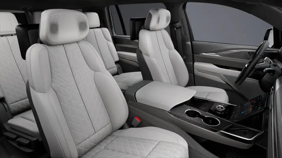 **This 2026 Cadillac Escalade IQL Luxury is powered by a Electric Motor AWD**, ** and this Escalade IQL is trimmed in Vibrant White Tricoat with Sheer Gray With Dark Medium Cinder Accents interior**, 21 Speakers, 3rd row seats: split-bench, 4-Way Power Driver Lumbar Seat Adjuster, 4-Way Power Front Passenger Lumbar Seat Adjuster, 4-Wheel Disc Brakes, 8-Way Power Driver Seat Adjuster, 8-Way Power Front Passenger Seat Adjuster, ABS brakes, Adaptive suspension, Air Conditioning, AKG Studio 21-Speaker Audio System, Alloy wheels, AM/FM radio: SiriusXM with 360L, Audio memory, Auto High-beam Headlights, Auto-dimming door mirrors, Auto-dimming Rear-View mirror, Auto-leveling suspension, Automatic temperature control, Bluetooth Headphones by AKG, Brake assist, Bumpers: body-color, Compass, Delay-off headlights, Driver door bin, Driver Memory, Driver vanity mirror, Dual front impact airbags, Dual front side impact airbags, Electronic Stability Control, Emergency communication system, ETrunk Foldable Organizer, ETrunk Organizer Package, ETrunk Sliding Tray, Four wheel independent suspension, Front anti-roll bar, Front Bucket Seats, Front Center Armrest, Front dual zone A/C, Front License Plate Bracket, Front reading lights, Fully automatic headlights, Garage door transmitter, Google Built-in, Heads-Up Display, Heated door mirrors, Heated Driver and Front Passenger Seats, Heated front seats, Heated rear seats, Heated steering wheel, HVAC memory, Illuminated entry, Inteluxe Seat Trim, Knee airbag, Leather steering wheel, Low tire pressure warning, Magnetic Ride Control Suspension, Memory seat, NACS DC Adapter, Navigation system: Google Automotive Services Capable, Occupant sensing airbag, Outside temperature display, Overhead airbag, Overhead console, Panic alarm, Passenger door bin, Passenger vanity mirror, Power door mirrors, Power driver seat, Power Liftgate, Power passenger seat, Power steering, Power windows, Preferred Equipment Group 1SC, Radio data system, Radio: Infotainment Experience, Rain sensing wipers, Rear air conditioning, Rear anti-roll bar, Rear dual zone A/C, Rear reading lights, Rear Seat Entertainment System, Rear window defroster, Rear window wiper, Reconfigurable Full-Color Head-Up Display, Remote keyless entry, Security system, SiriusXM with 360L Trial Subscription, Speed control, Speed-sensing steering, Split folding rear seat, Spoiler, Steering wheel mounted audio controls, Telescoping steering wheel, Tilt steering wheel, Traction control, Trip computer, Turn signal indicator mirrors, Variably intermittent wipers, Ventilated front seats, Wheels: 22 10-Spoke Alloy with Mask and Polish, Wheels: 24 7-Spoke Machine Face Alloy.
