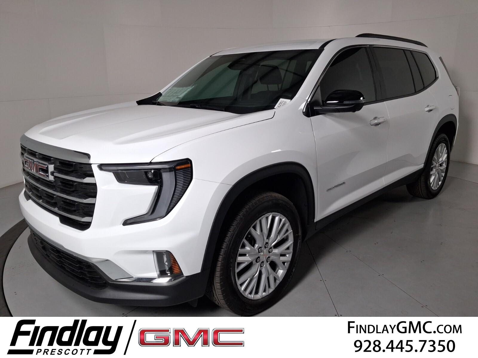 Welcome to Findlay GMC in Prescott, AZ. We have multiple locations with over 600 cars in stock. If you are looking for something specific that this Acadia doesn't have, please contact us directly. This GMC Acadia is equipped with the following options: Elevation Premium Package (3-Channel Programmable Universal Home Remote, 6-Way Power Front Passenger Seat Adjuster, 7-Passenger Seating (2-2-3 Seating Configuration), CoreTec Seat Trim, and Front Passenger Power Lumbar Seat Adjuster), Floor Liner Package (1st and 2nd Row All-Weather Floor Liner, 3rd Row All-Weather Floor Liner, and Integrated Cargo Liner), Luxury Package (8'' Diagonal Head-Up Display, Heated Rear Outboard Seating Positions, Heated Wiper Park, and Laminated Acoustic Glass), Preferred Equipment Group 4SC, FWD, After Dark Cloth, 12 Speakers, 18'' x 7.5'' Aluminum Wheels, 3.49 Final Drive Axle Ratio, 3rd row seats: split-bench, 4-Way Manual Front Passenger Seat Adjuster, 4-Wheel Disc Brakes, 8-Passenger Seating (2-3-3 Seating Configuration), 8-Way Power Driver Seat Adjuster, ABS brakes, Air Conditioning, Alloy wheels, AM/FM radio: SiriusXM with 360L, Apple CarPlay/Android Auto, Auto High-beam Headlights, Automatic temperature control, Bodyside moldings, Bose Premium 12-Speaker System with Sub-Woofer, Brake assist, Bumpers: body-color, Cloth Seat Trim, Compass, Delay-off headlights, Driver 2-Way Power Lumbar Seat Adjuster, Driver door bin, Driver vanity mirror, Dual front impact airbags, Dual front side impact airbags, Electronic Stability Control, Emergency communication system: OnStar Services capable, Exterior Parking Camera Rear, Four wheel independent suspension, Front anti-roll bar, Front Bucket Seats, Front Center Armrest, Front dual zone A/C, Front fog lights, Front reading lights, Fully automatic headlights, Heated door mirrors, Heated Driver and Front Passenger Seats, Heated front seats, Heated steering wheel, Illuminated entry, Leather steering wheel, Low tire pressure warning, Navigation System