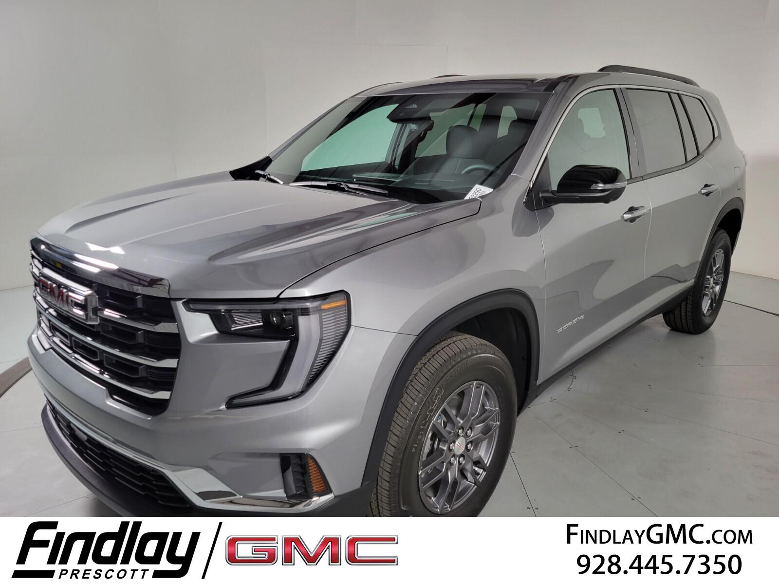 Welcome to Findlay GMC in Prescott, AZ. Findlay Prescott is once again moving forward with the Red Tag Event starting on the 1st thru 16th of November. We have multiple locations with over 600 cars in stock. If you are looking for something specific that this Acadia doesn't have, please contact us directly. This GMC Acadia is equipped with the following options: FWD, Cloth, 12 Speakers, 18'' x 7.5'' Aluminum Wheels, 2-Way Driver Power Lumbar Seat Adjuster, 3.49 Final Drive Axle Ratio, 3rd row seats: split-bench, 4-Way Manual Front Passenger Seat Adjuster, 4-Wheel Disc Brakes, 8-Passenger Seating (2-3-3 Seating Configuration), 8-Way Power Driver Seat Adjuster, ABS brakes, Air Conditioning, Alloy wheels, AM/FM radio: SiriusXM with 360L, Apple CarPlay/Android Auto, Auto High-beam Headlights, Automatic temperature control, Bodyside moldings, Bose Premium 12-Speaker System w/Sub-Woofer, Brake assist, Bumpers: body-color, Cloth Seat Trim, Compass, Delay-off headlights, Driver door bin, Driver vanity mirror, Dual front impact airbags, Dual front side impact airbags, Electronic Stability Control, Emergency communication system: OnStar Services capable, Exterior Parking Camera Rear, Four wheel independent suspension, Front anti-roll bar, Front Bucket Seats, Front Center Armrest, Front dual zone A/C, Front fog lights, Front reading lights, Fully automatic headlights, Heated door mirrors, Heated Driver & Front Passenger Seats, Heated front seats, Heated steering wheel, Illuminated entry, Leather steering wheel, Low tire pressure warning, Navigation System, Occupant sensing airbag, Outside temperature display, Overhead airbag, Overhead console, Panic alarm, Passenger door bin, Passenger vanity mirror, Power door mirrors, Power driver seat, Power Liftgate, Power steering, Power windows, Radio data system, Radio: 15'' Premium GMC Infotainment System, Rear air conditioning, Rear anti-roll bar, Rear reading lights, Rear seat center armrest, Rear side impact airbag, Rear window defr