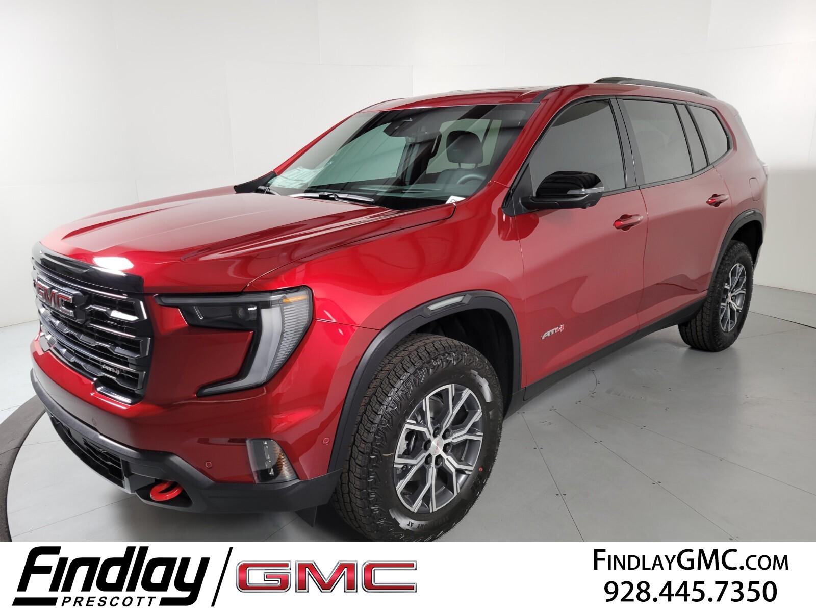 Welcome to Findlay GMC in Prescott, AZ. Findlay Prescott is once again moving forward with the Red Tag Event starting on the 1st thru 16th of November. We have multiple locations with over 600 cars in stock. If you are looking for something specific that this Acadia doesn't have, please contact us directly. This GMC Acadia is equipped with the following options: Luxury Package (8'' Diagonal Head-Up Display, Heated & Ventilated Driver & Front Passenger Seats, Heated Rear Outboard Seating Positions, and Heated Wiper Park), Preferred Equipment Group 4SB, Super Cruise Package (3 Years of OnStar One, Driver Attention Assist, Enhanced Automatic Parking Assist, and Super Cruise), AWD, Forest Storm W/Mahogany Accents Cloth, 12 Speakers, 2-Way Driver Power Lumbar Seat Adjuster, 3.49 Final Drive Axle Ratio, 3rd row seats: split-bench, 4-Wheel Disc Brakes, 6-Way Power Front Passenger Seat Adjuster, 7-Passenger Seating (2-2-3 Seating Configuration), 8-Way Power Driver Seat Adjuster, ABS brakes, Air Conditioning, Alloy wheels, AM/FM radio: SiriusXM with 360L, Apple CarPlay/Android Auto, Auto High-beam Headlights, Auto-dimming Rear-View mirror, Automatic temperature control, Black Lug Nut & Wheel Lock Kit (LPO), Bodyside moldings, Bose Premium 12-Speaker System w/Sub-Woofer, Brake assist, Bumpers: body-color, Cloth/CoreTec Seat Trim, Compass, Delay-off headlights, Driver door bin, Driver vanity mirror, Dual front impact airbags, Dual front side impact airbags, Electronic Stability Control, Emergency communication system: OnStar Services capable, Exterior Parking Camera Rear, Four wheel independent suspension, Front anti-roll bar, Front Bucket Seats, Front Center Armrest, Front dual zone A/C, Front fog lights, Front Passenger Power Lumbar Seat Adjuster, Front reading lights, Fully automatic headlights, Garage door transmitter, Heated door mirrors, Heated Driver & Front Passenger Seats, Heated front seats, Heated steering wheel, Illuminated entry, Leather steering wheel, Low tire p
